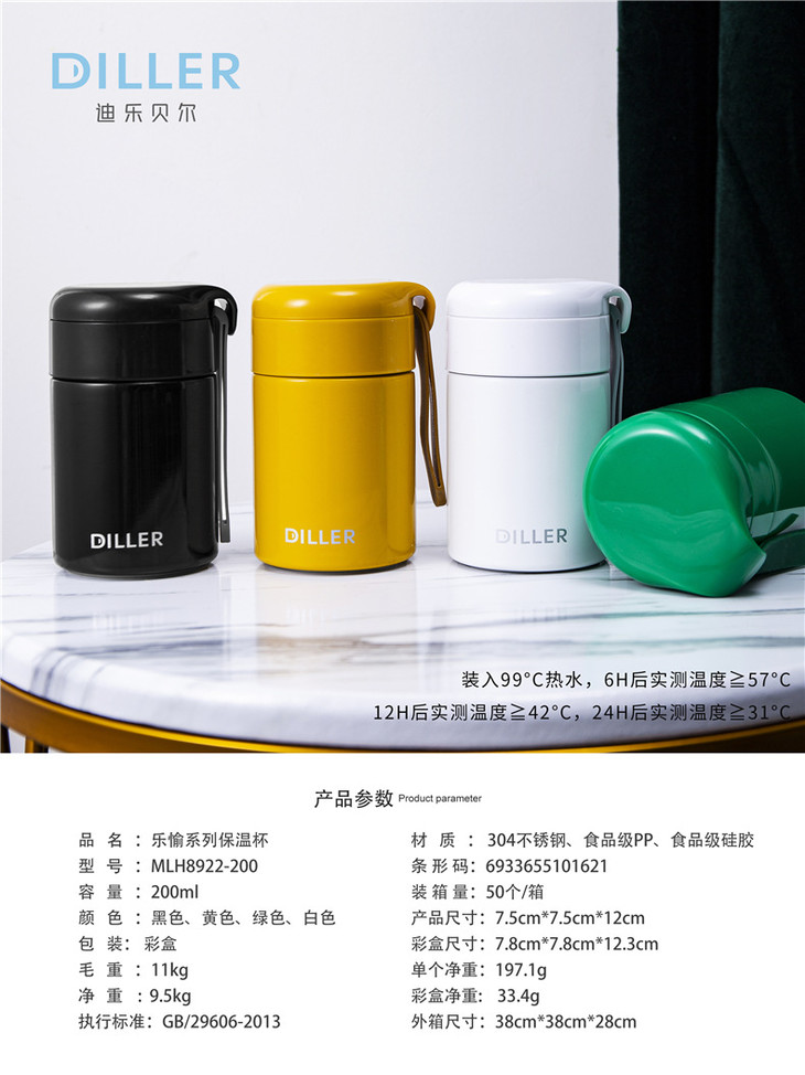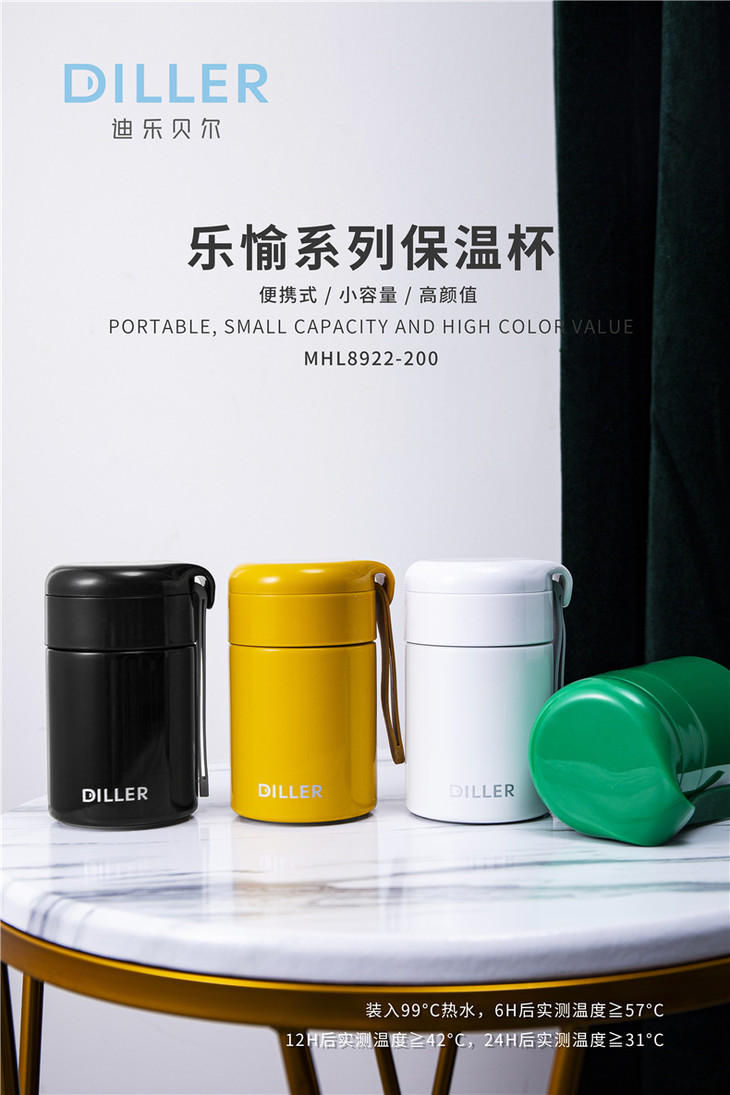 【迪乐贝尔】保温杯大宽杯口可爱简约304不锈钢便携时尚口袋杯