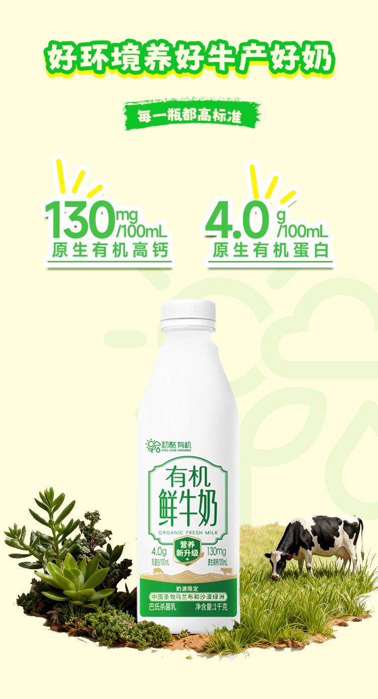 圣牧|有机鲜牛奶 1KG*2瓶 | 全程有机孩子儿童早餐14天保鲜纯奶