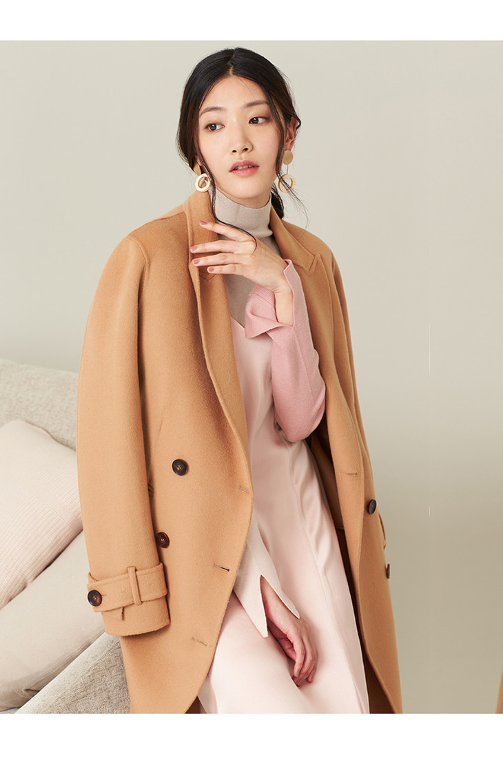 美丽诺羊毛 修身双排扣 双面羊毛大衣