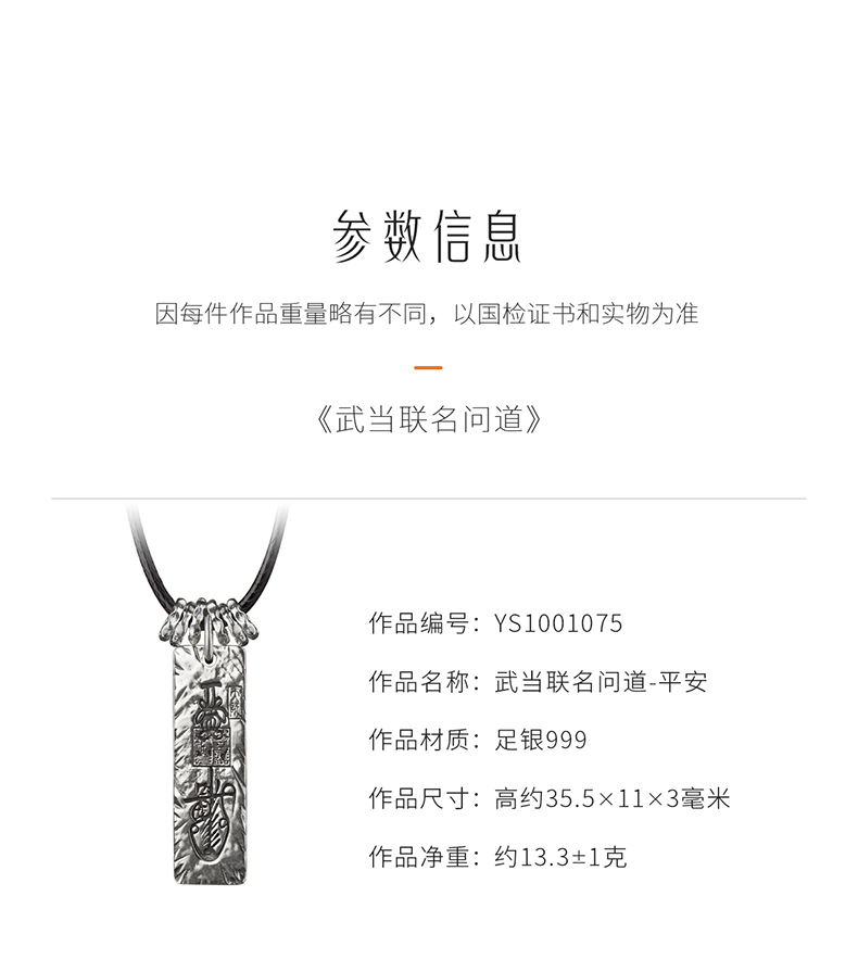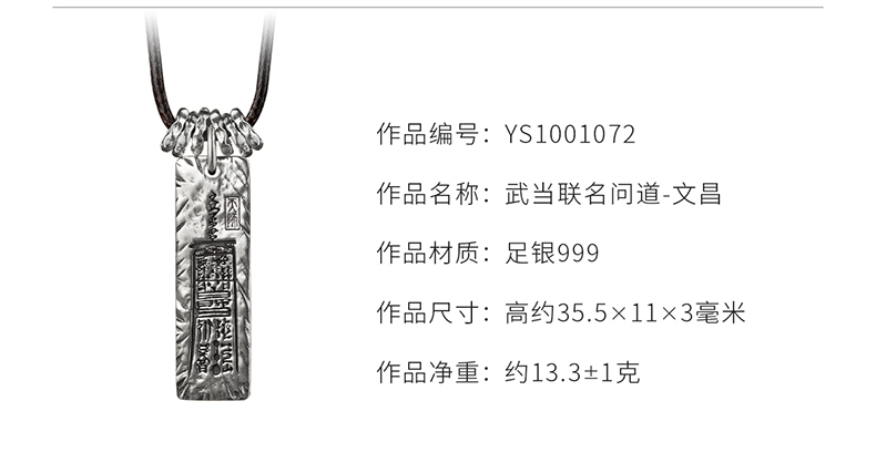玺匠金铺《武当联名问道》足银999符箓 文昌吊坠挂件