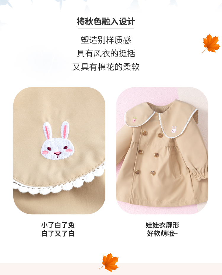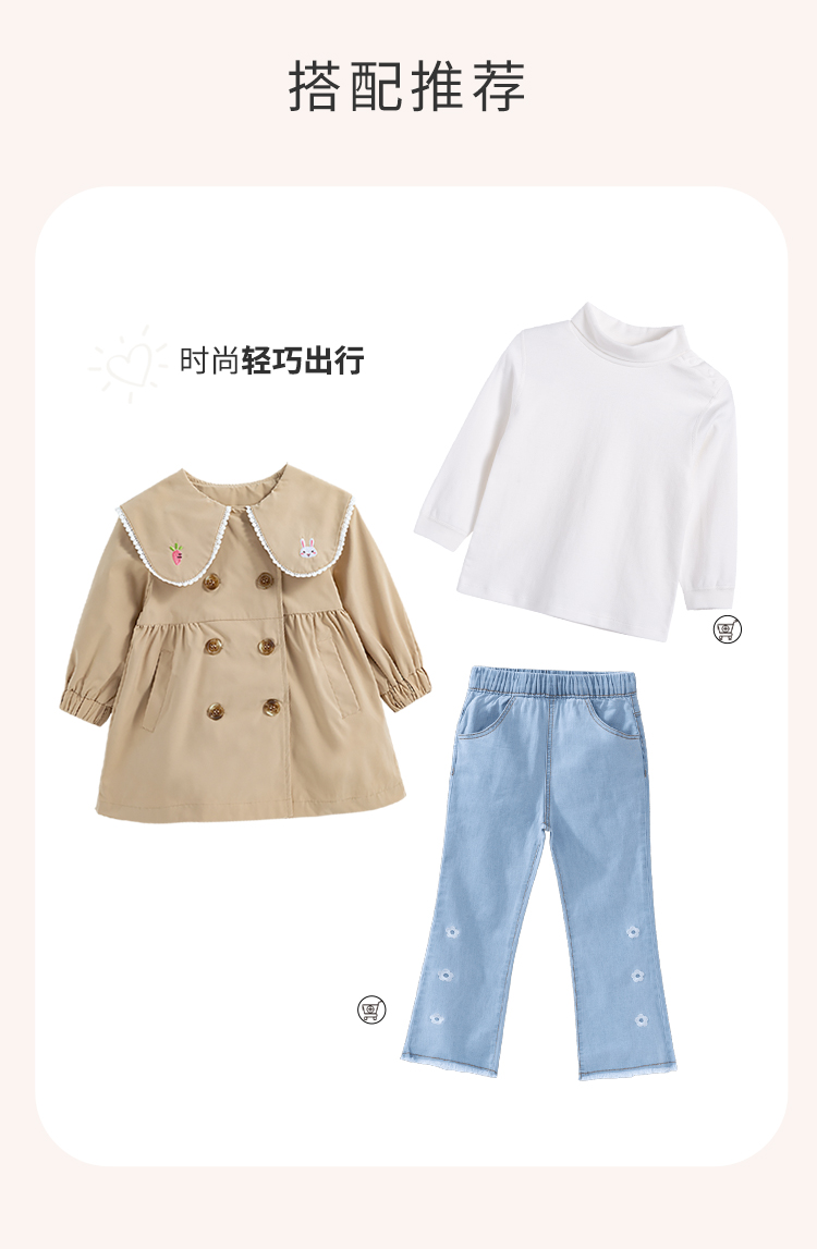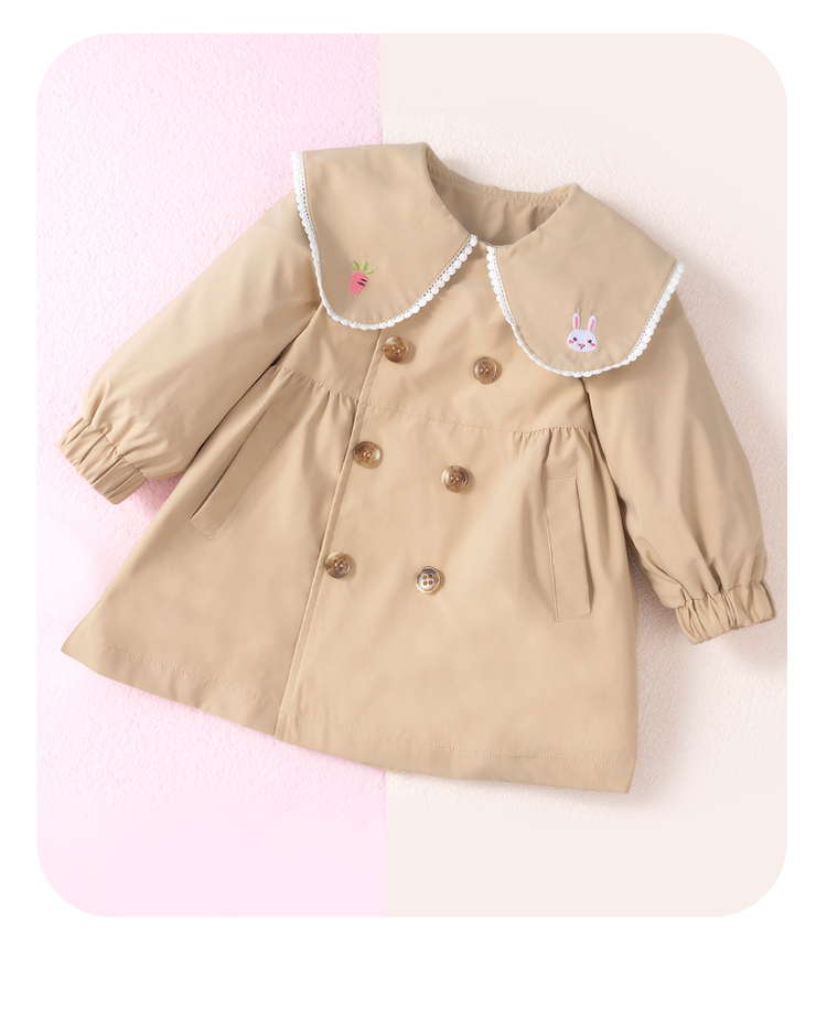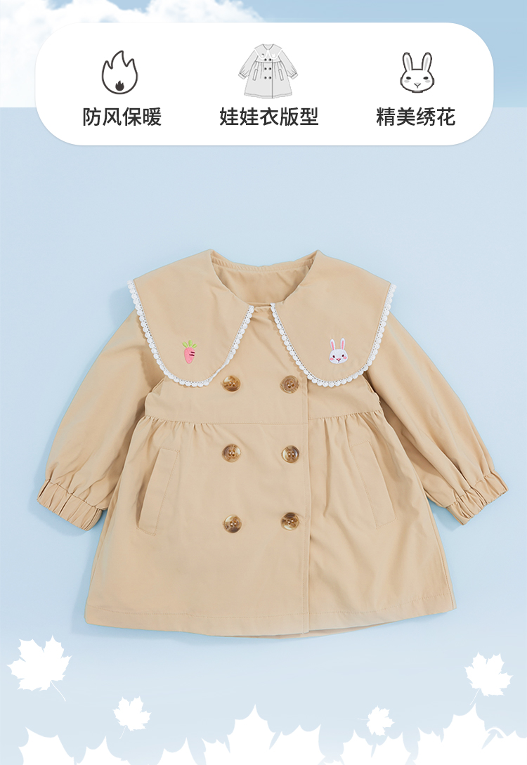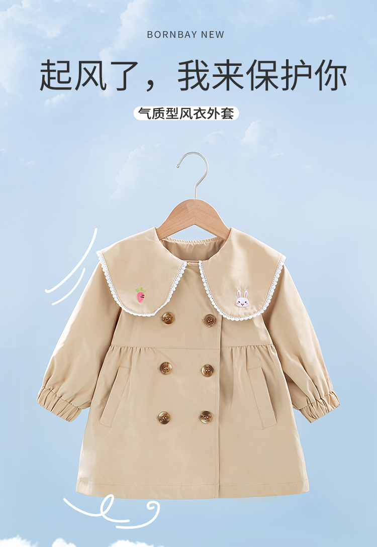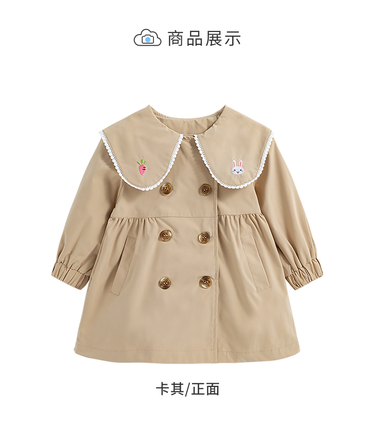贝贝怡儿童春秋防风外套女童休闲娃娃领风衣223S3045