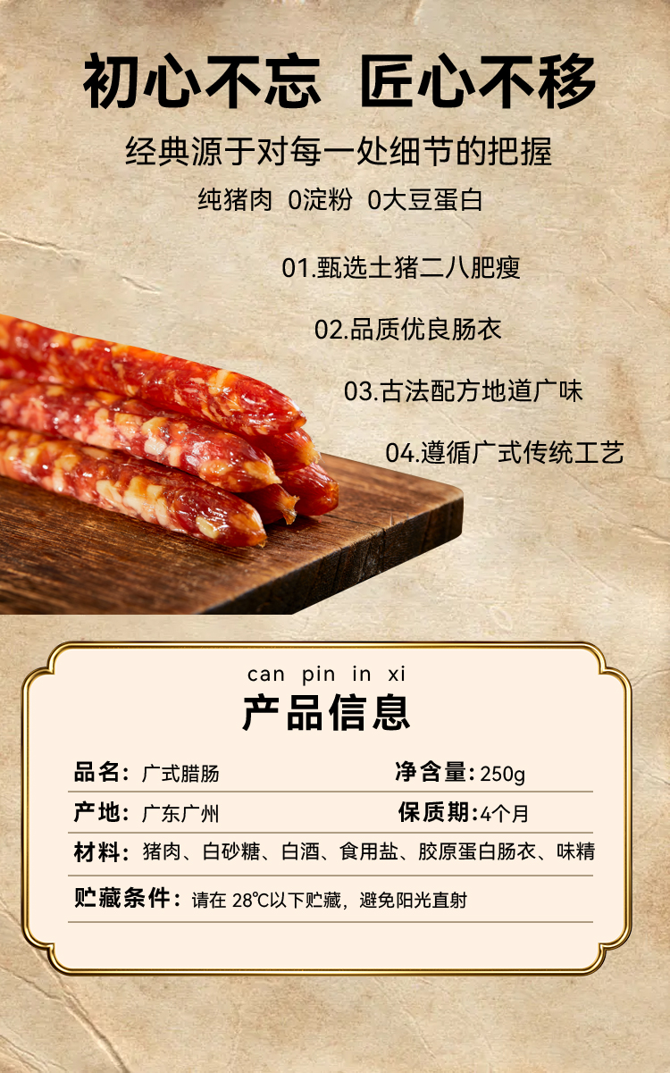 无添加地道广味广式腊肠 二八肥瘦纯土猪肉0淀粉传统工艺
