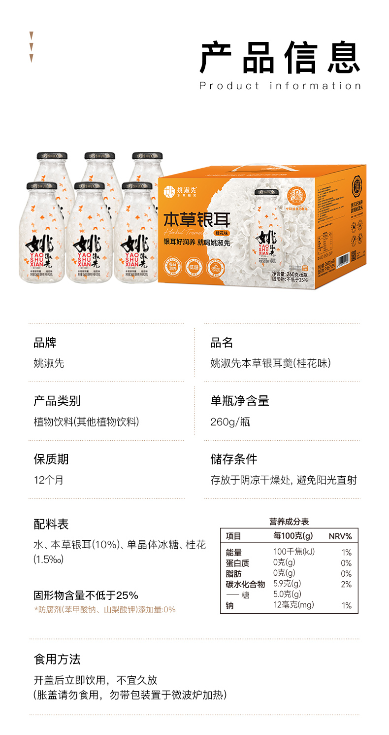 姚淑先红枣枸杞味银耳羹即食6瓶装