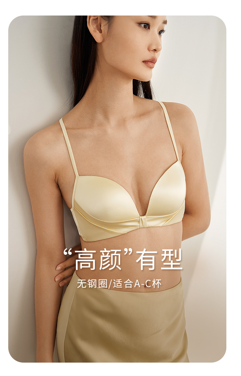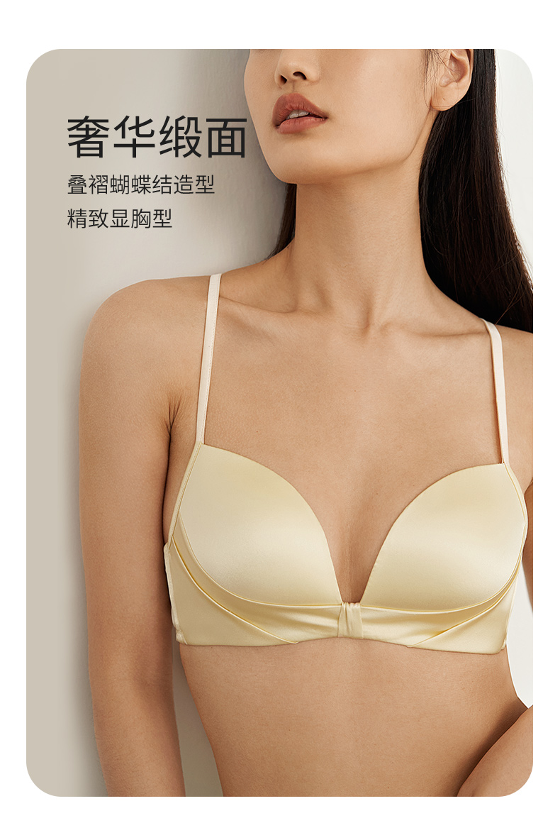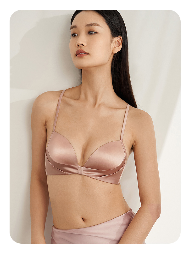金三塔里外高弹桑蚕丝聚拢轻奢缎面无钢圈舒适文胸内衣女胸罩新品 NZFEA305