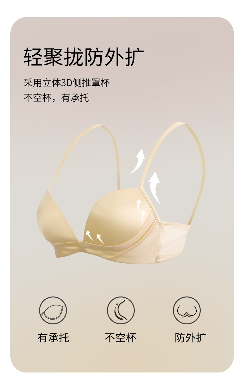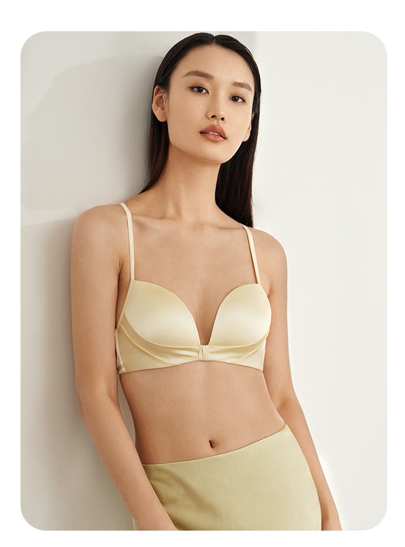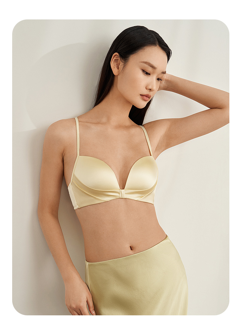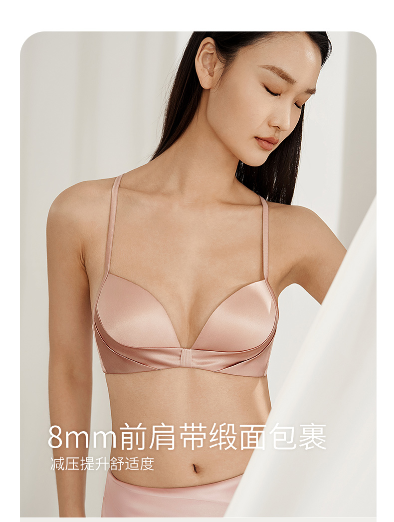 金三塔里外高弹桑蚕丝聚拢轻奢缎面无钢圈舒适文胸内衣女胸罩新品 NZFEA305