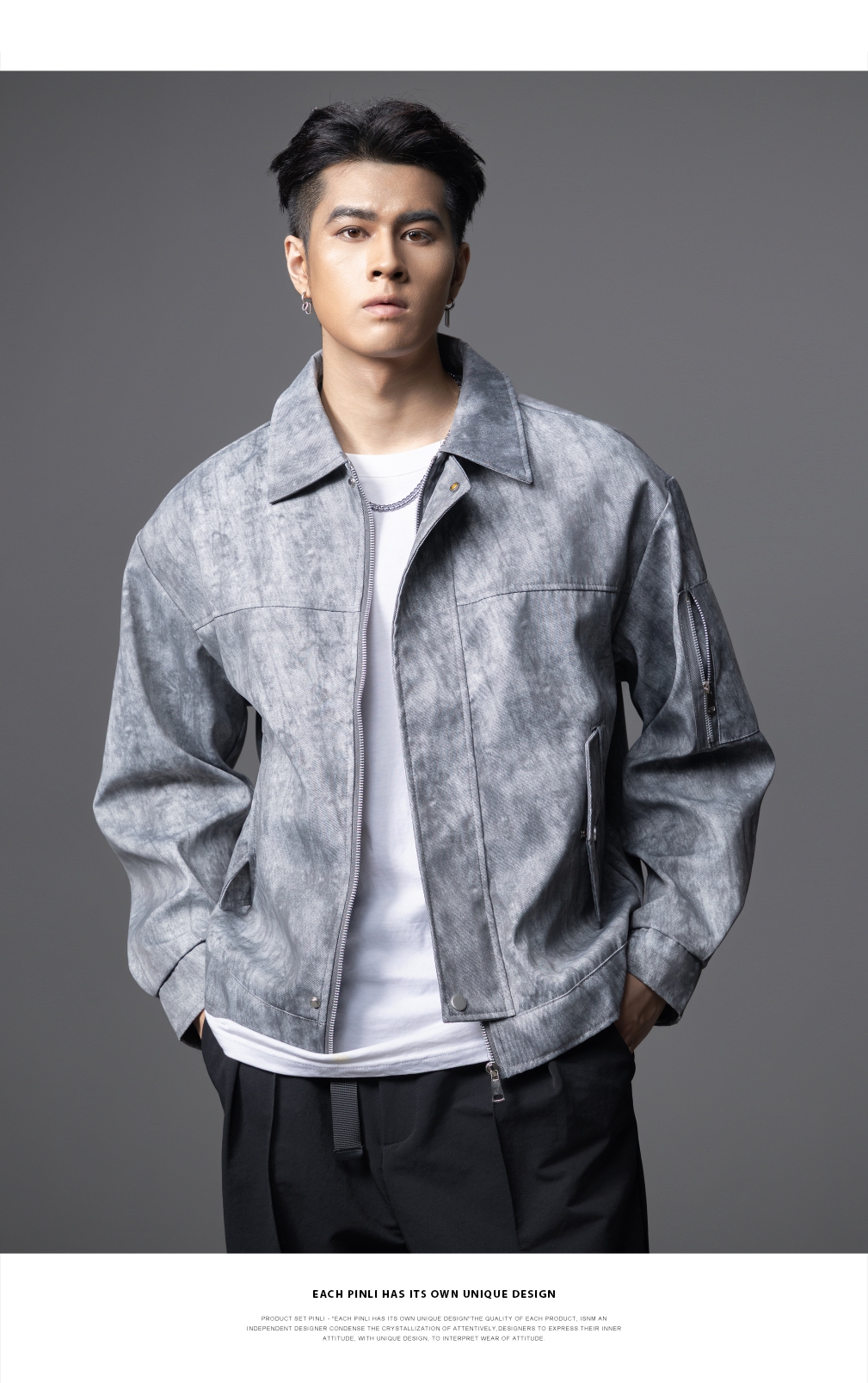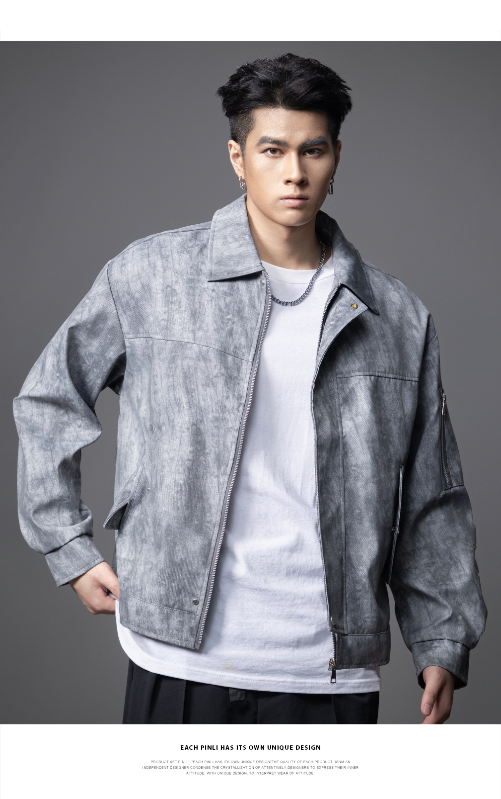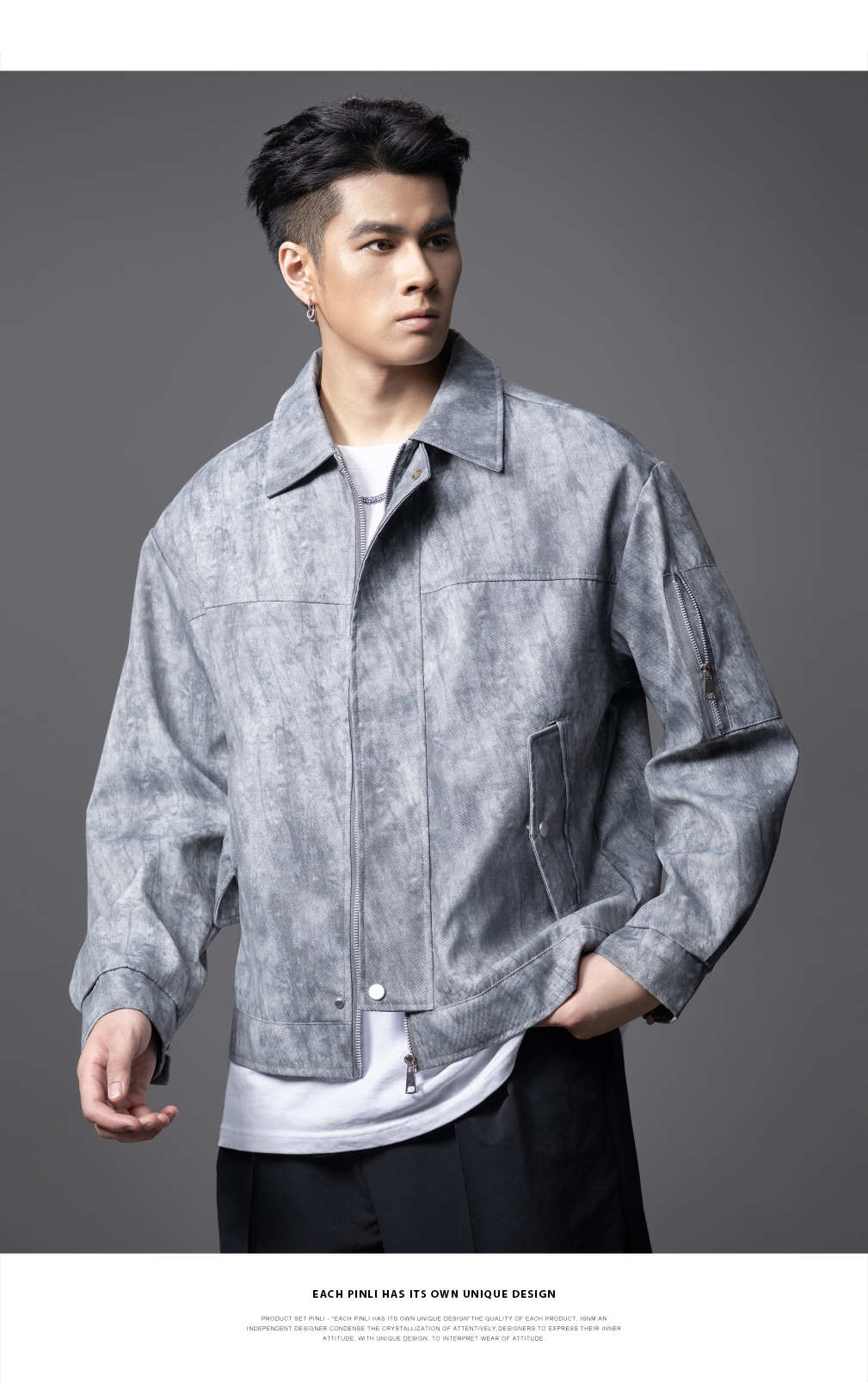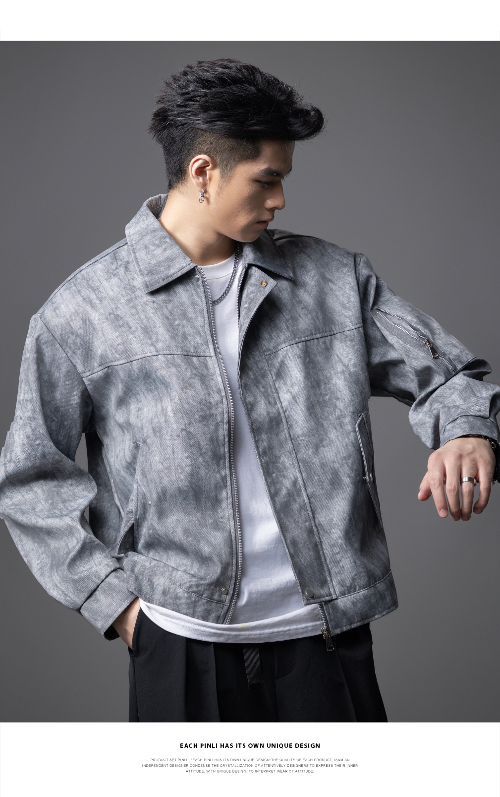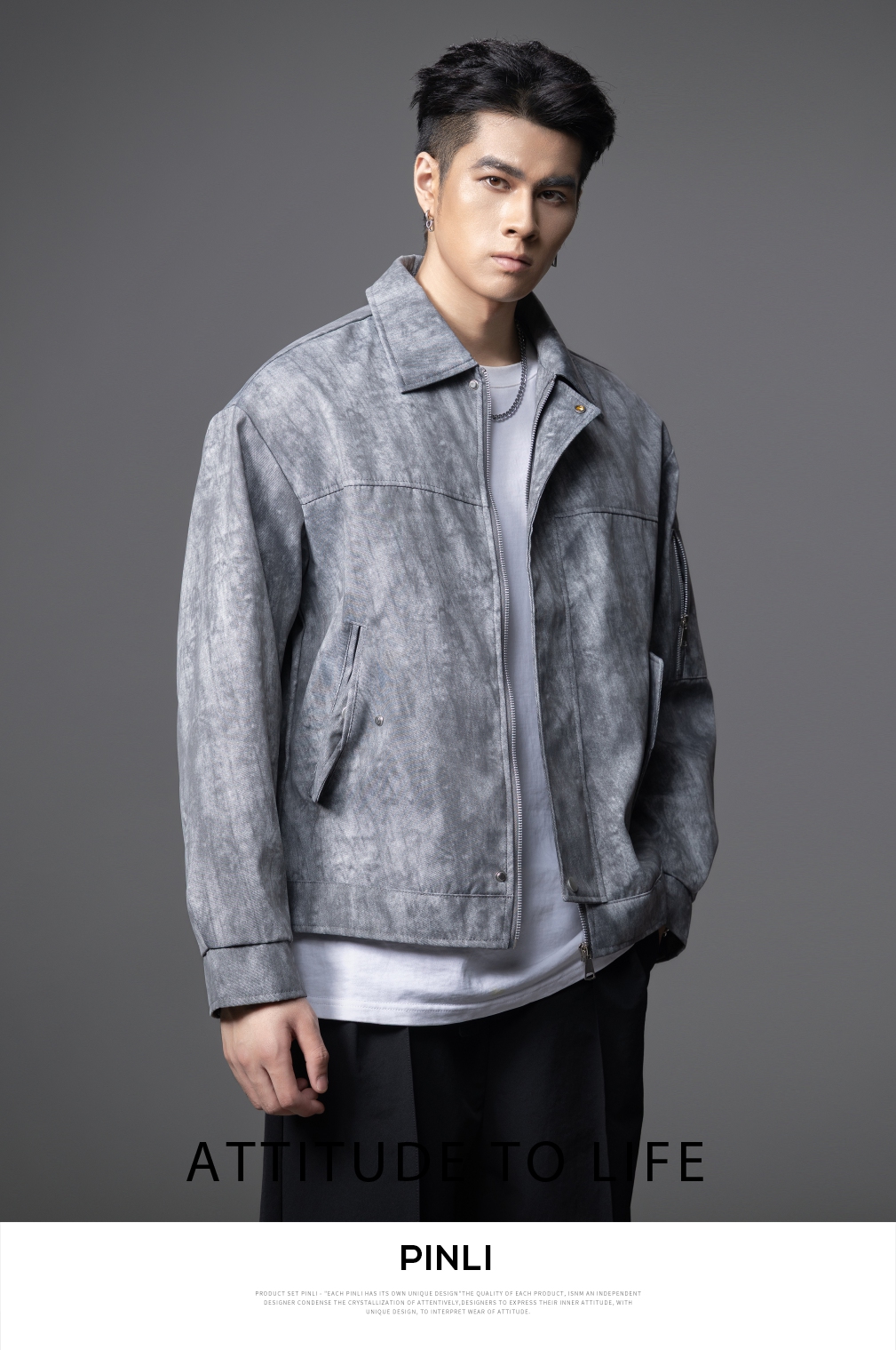 PINLI品立2025秋季新款机车风宽松翻领夹克男士潮牌休闲上衣外套GD253104090