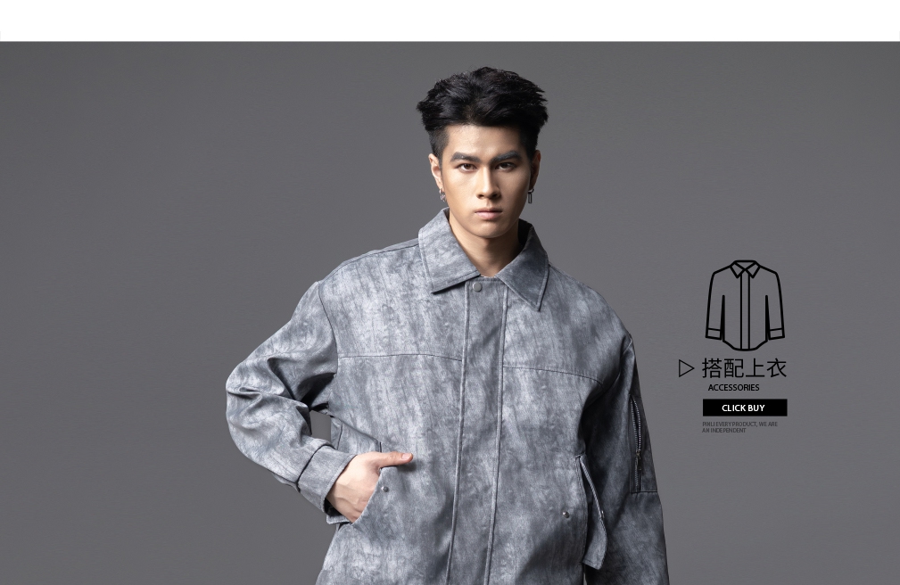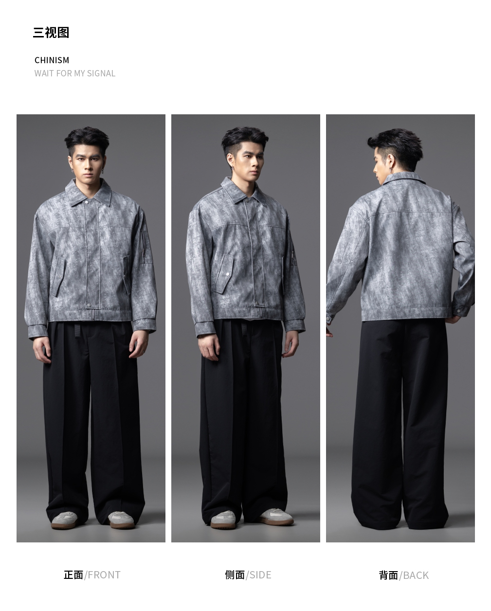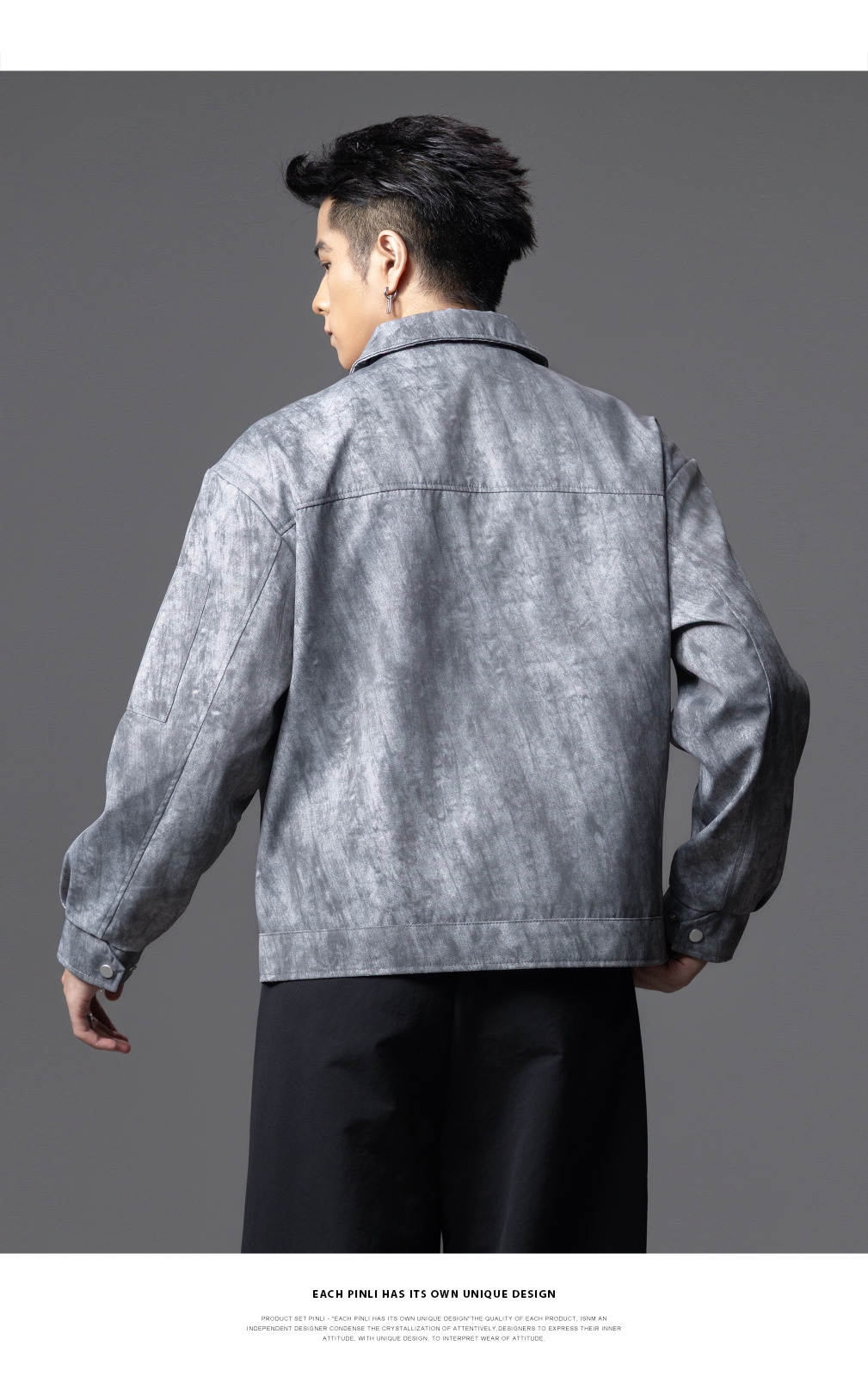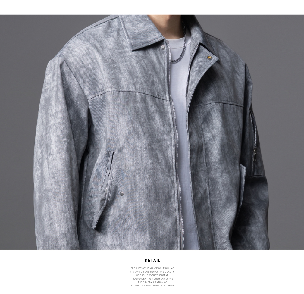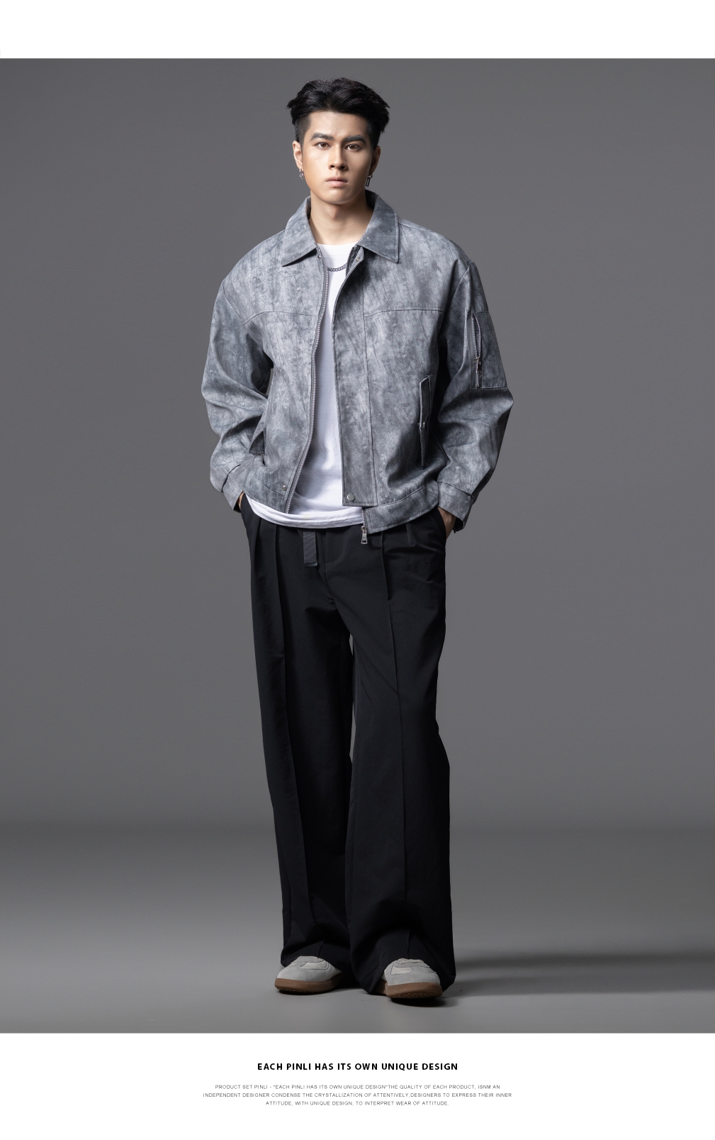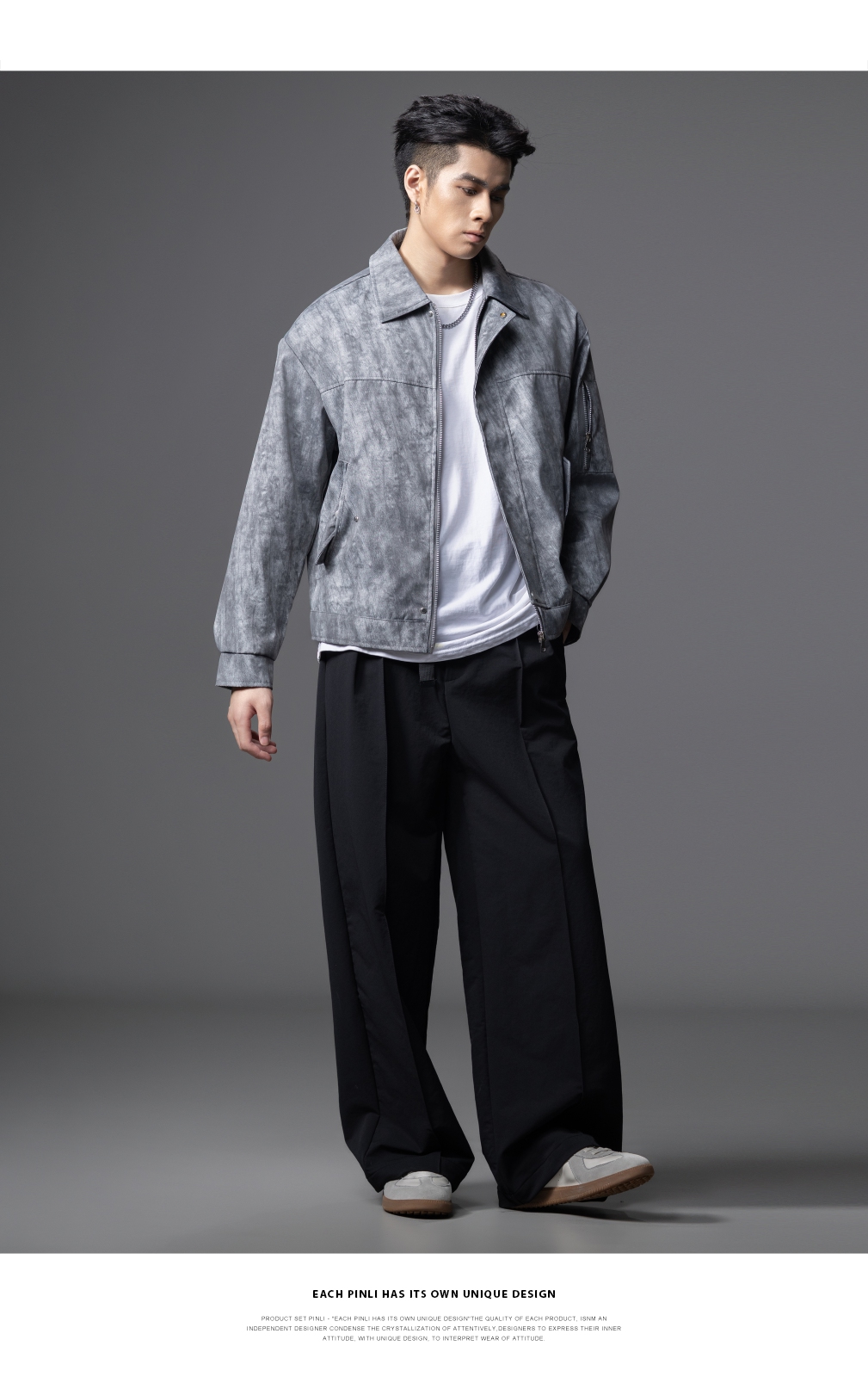 PINLI品立2025秋季新款机车风宽松翻领夹克男士潮牌休闲上衣外套GD253104090