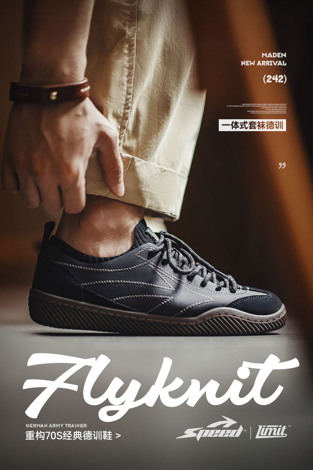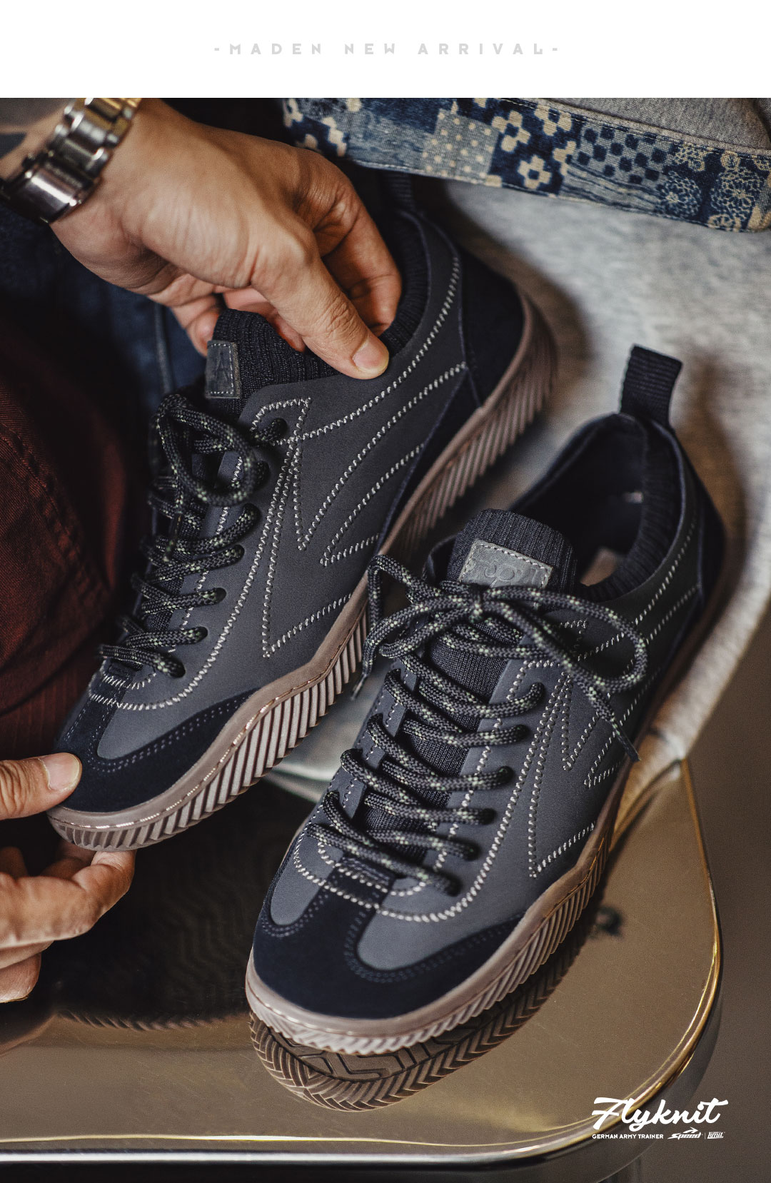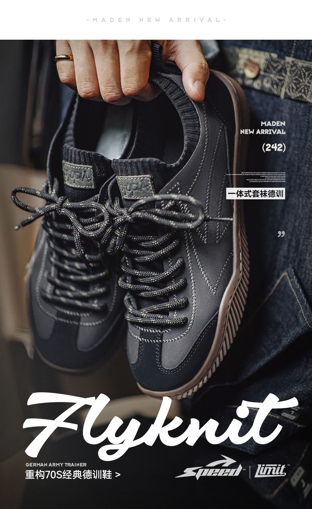 马登新款黑色薄底德训鞋男夏季飞织袜鞋轻便软底复古运动休闲板鞋