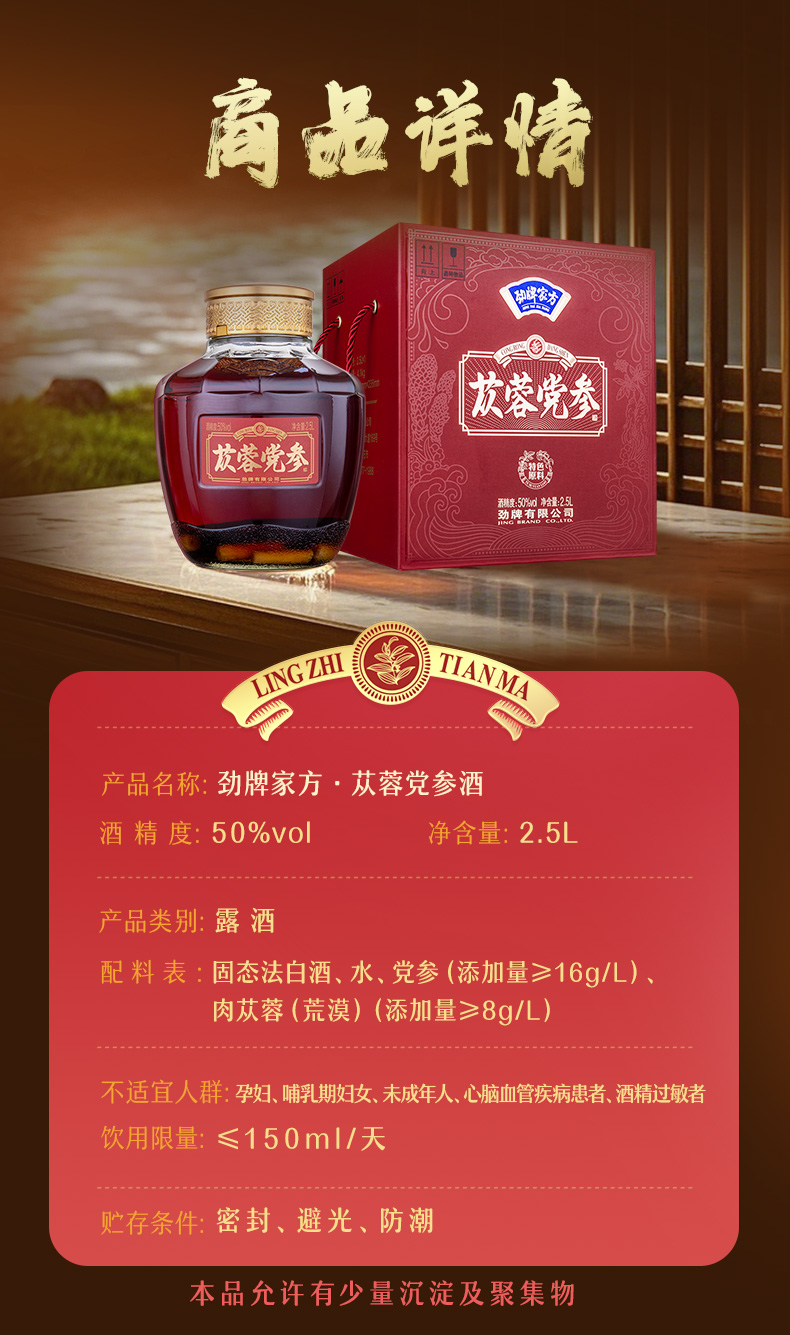 【新品】2.5L50 度劲牌家方苁蓉党参酒