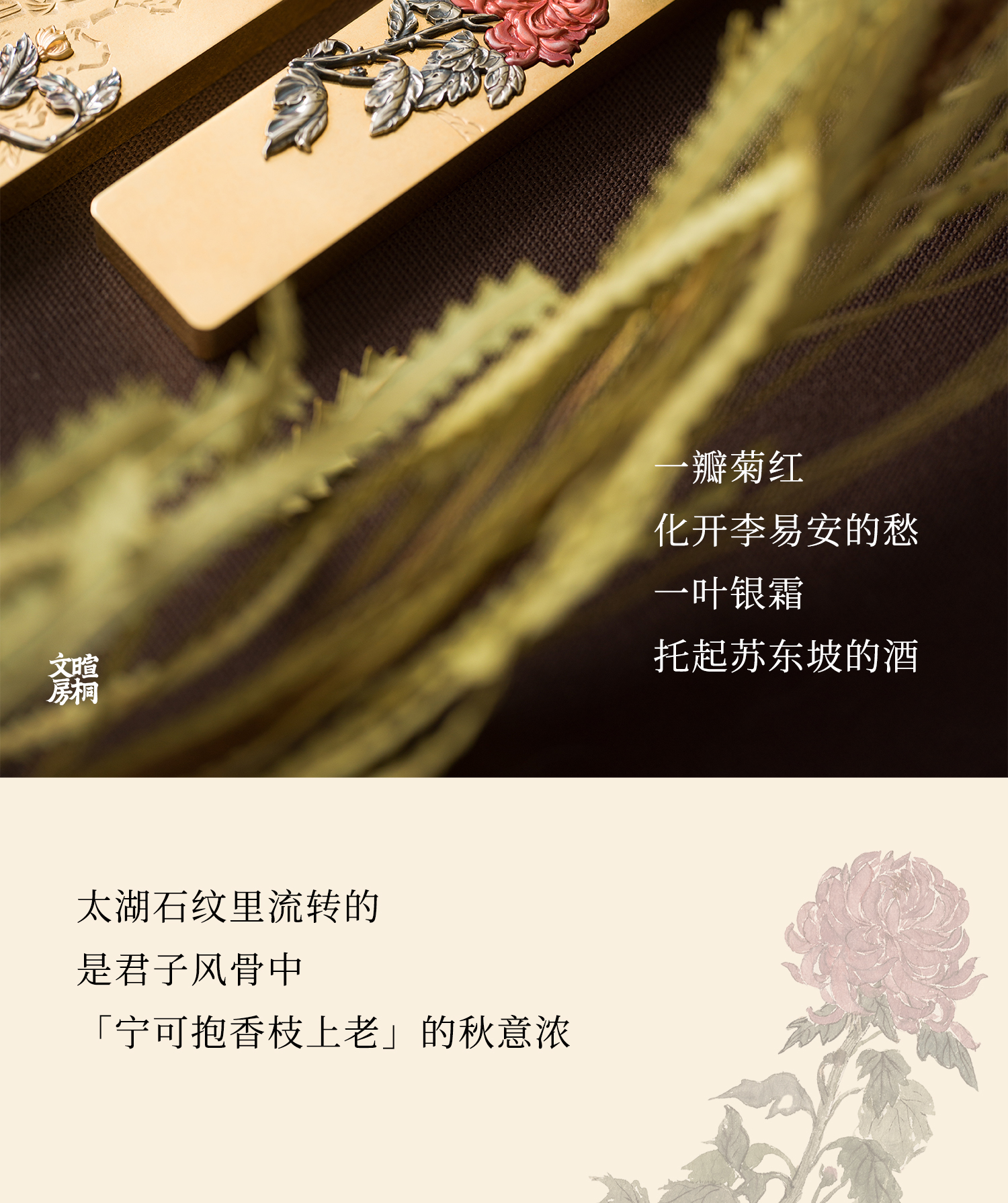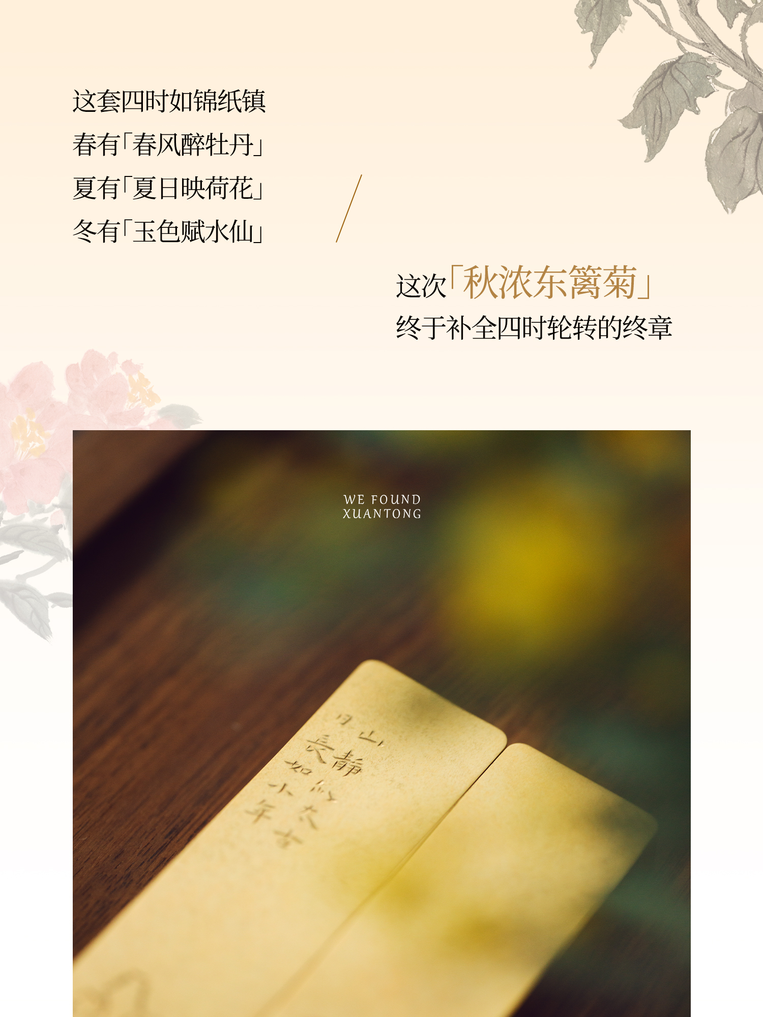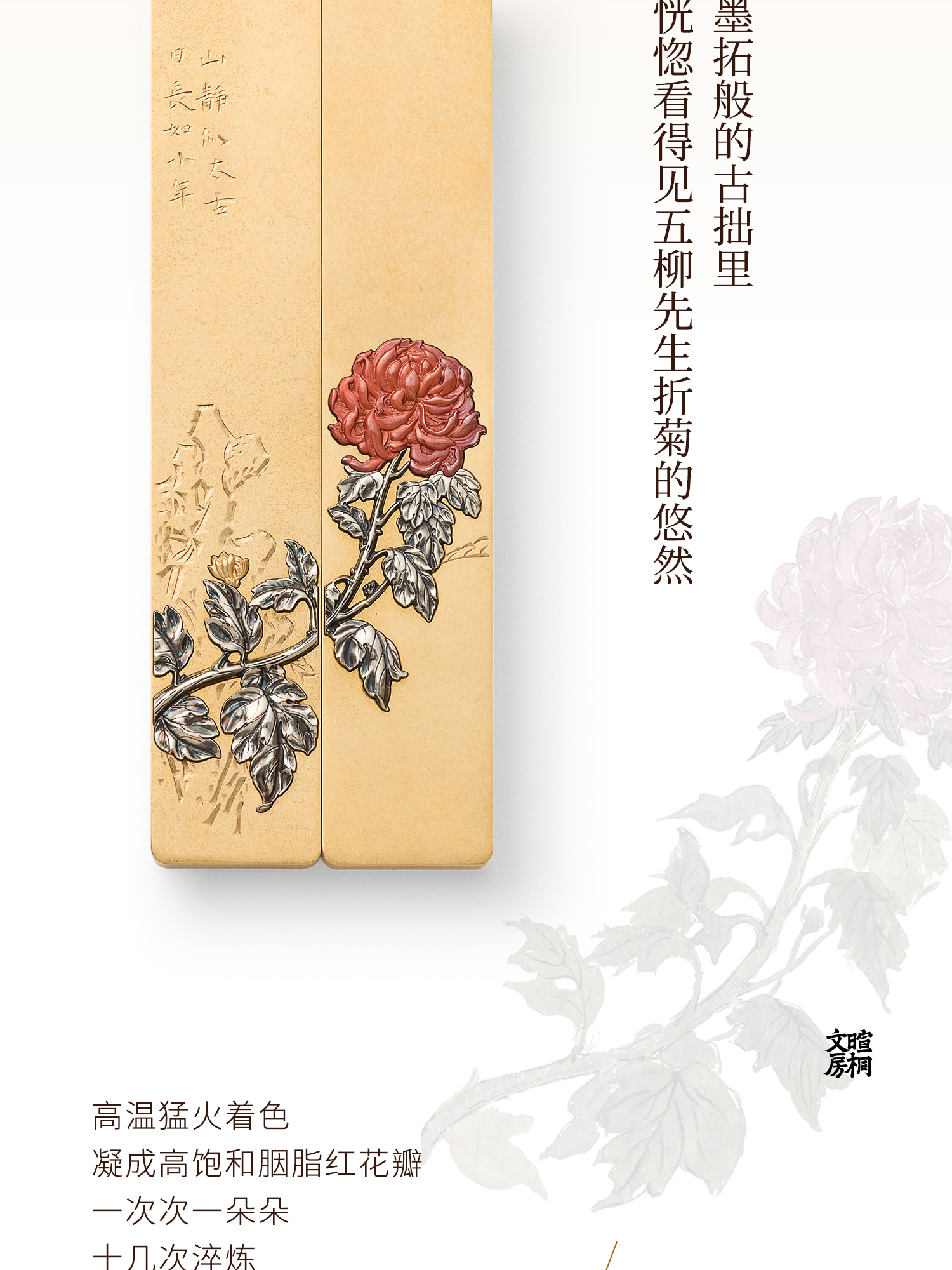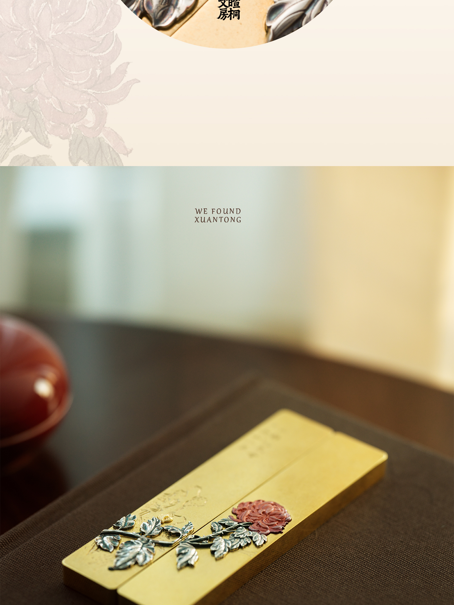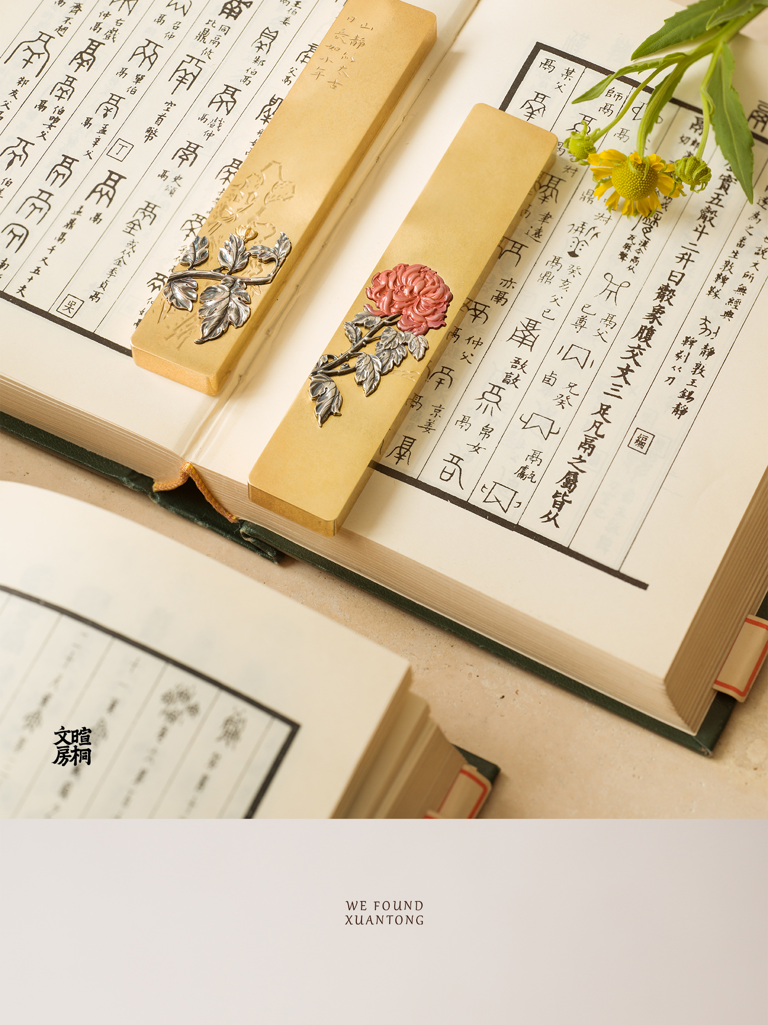 暄桐文房 秋浓东篱菊 纸镇 黄铜 白铜 紫铜 浮雕镶嵌