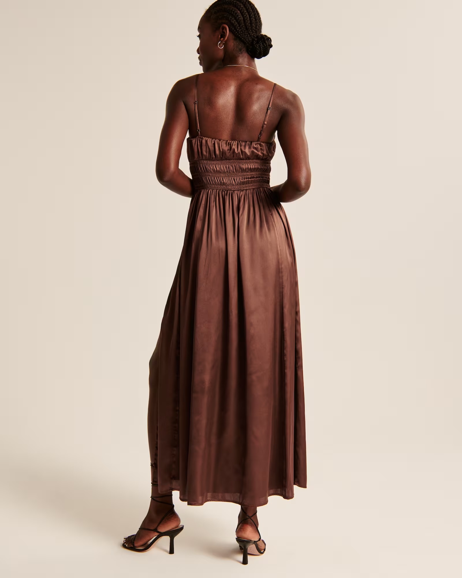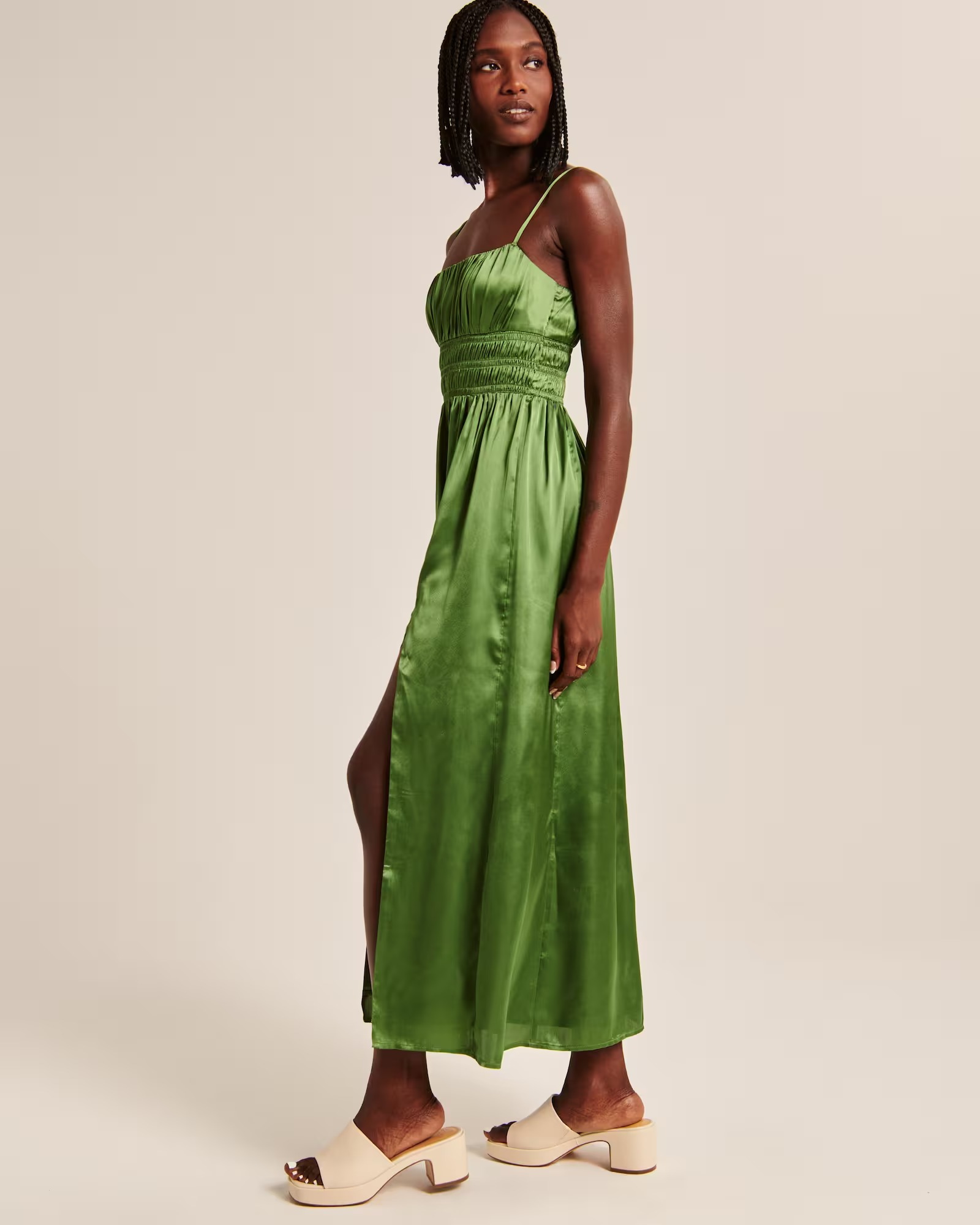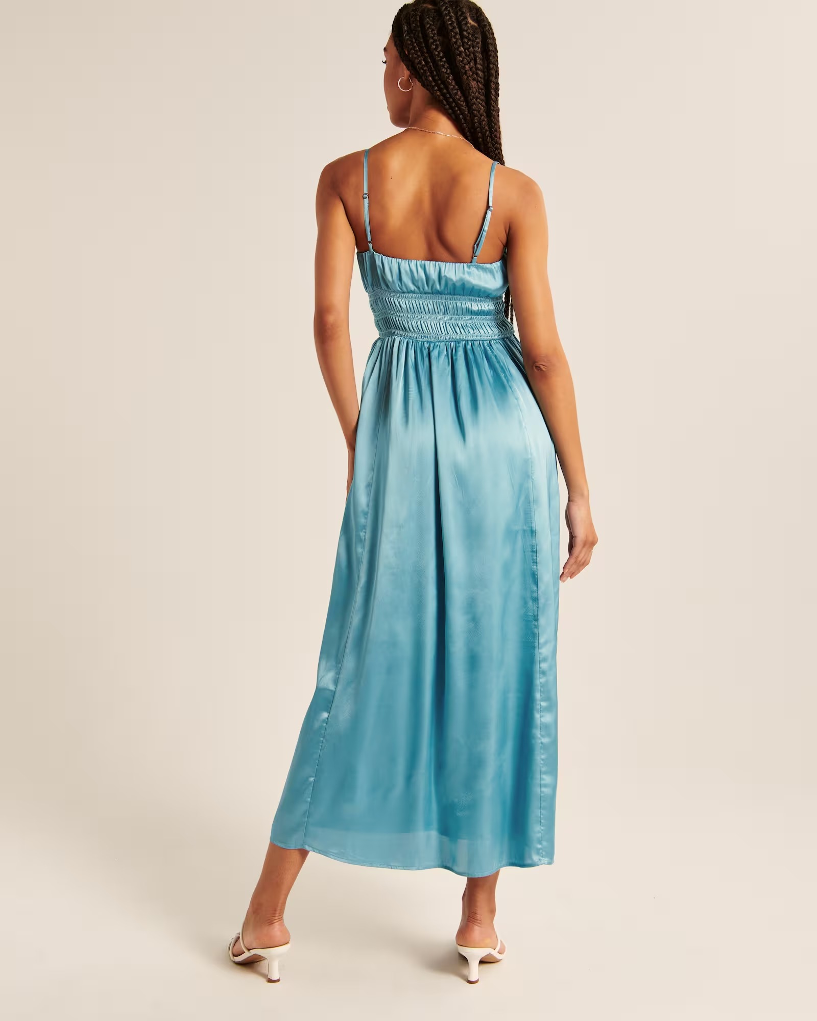 好折!奢华度假风~AF希腊款绸缎吊带开叉长裙3色可选,尺码还全,入手快。