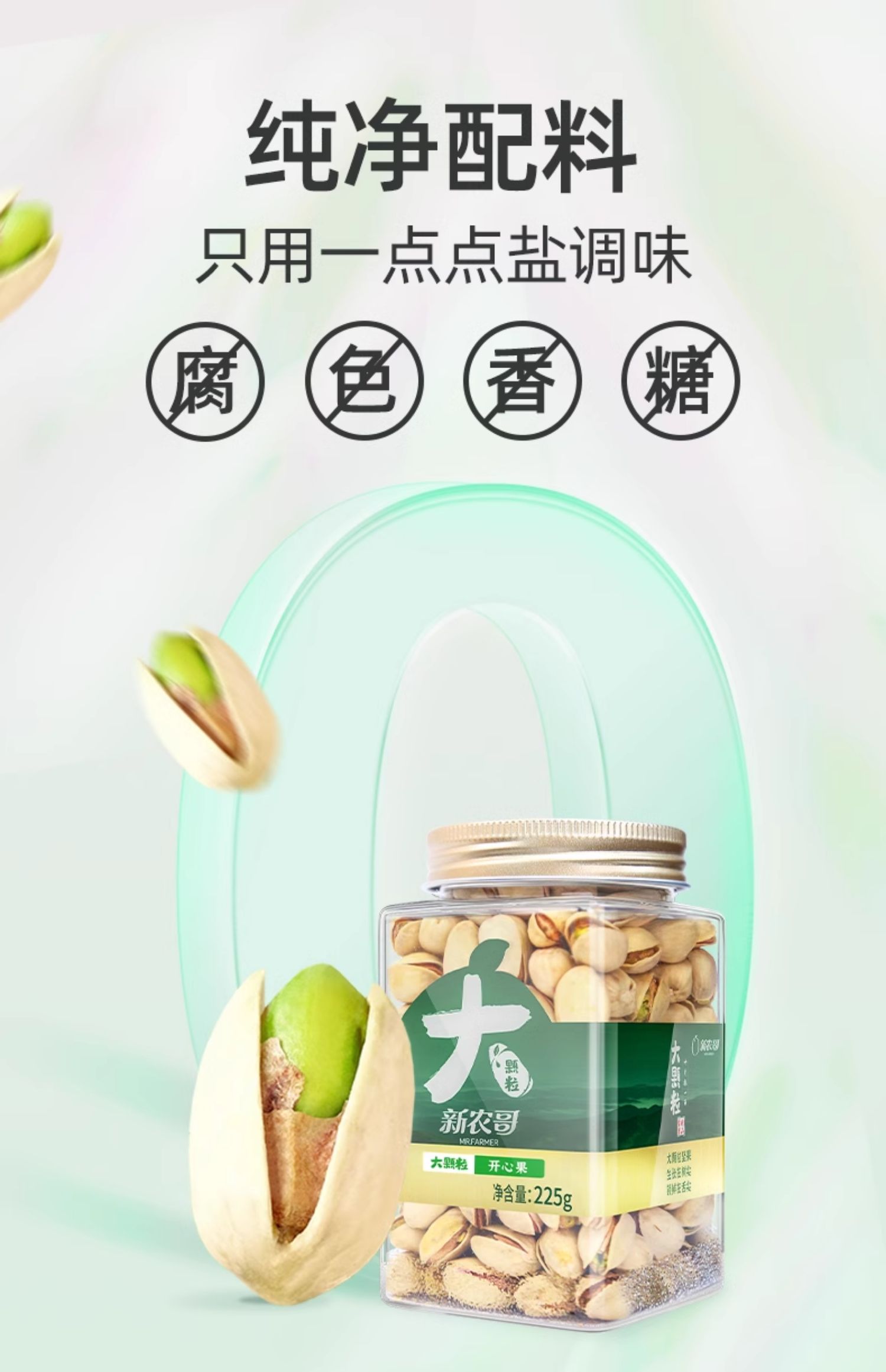 [唐老板专属]新农哥大颗粒开心果225g/罐装新货原色无漂白自然开口孕妇解馋坚果配料干净休闲零食