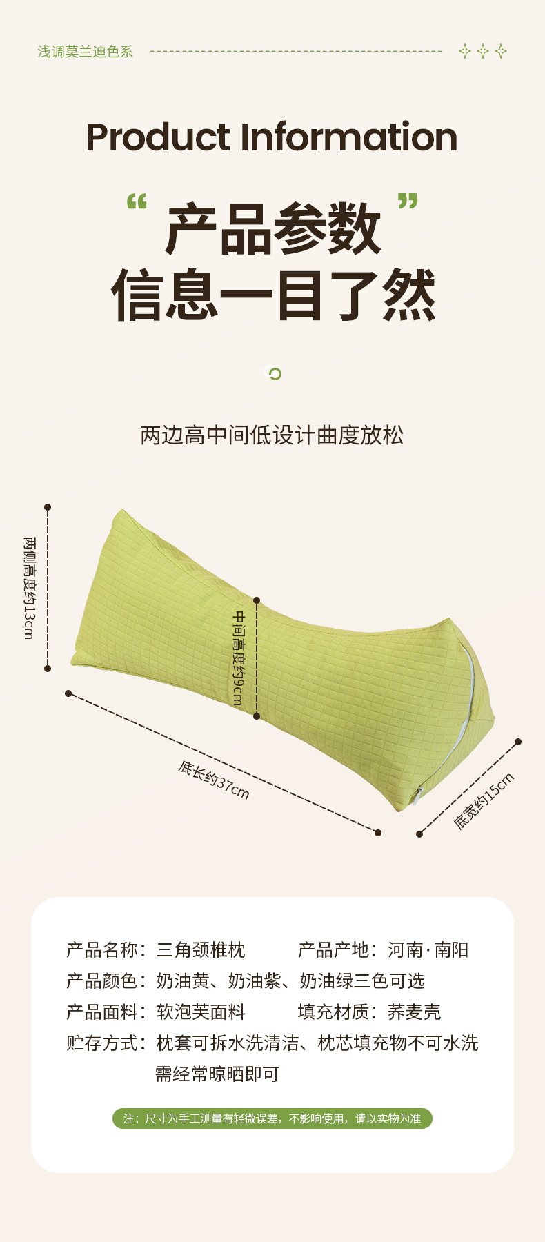 荞麦三角颈椎枕 家用护颈荞麦壳枕成人午睡腰靠睡眠枕头护颈枕