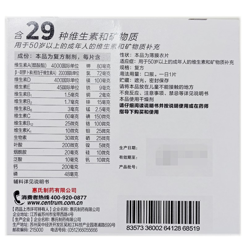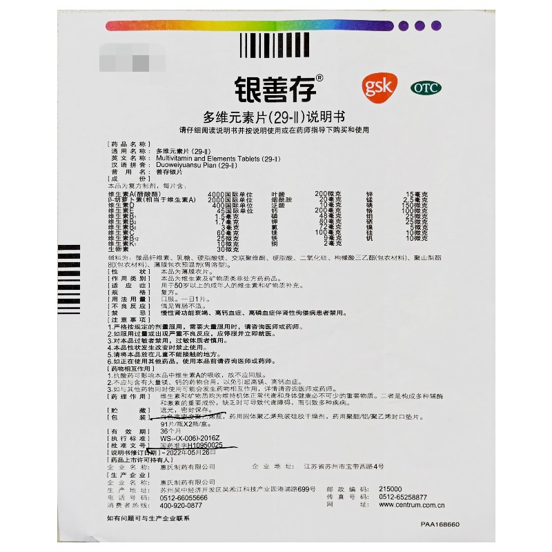 商品名称:银善存 多维元素片(29-Ⅱ)