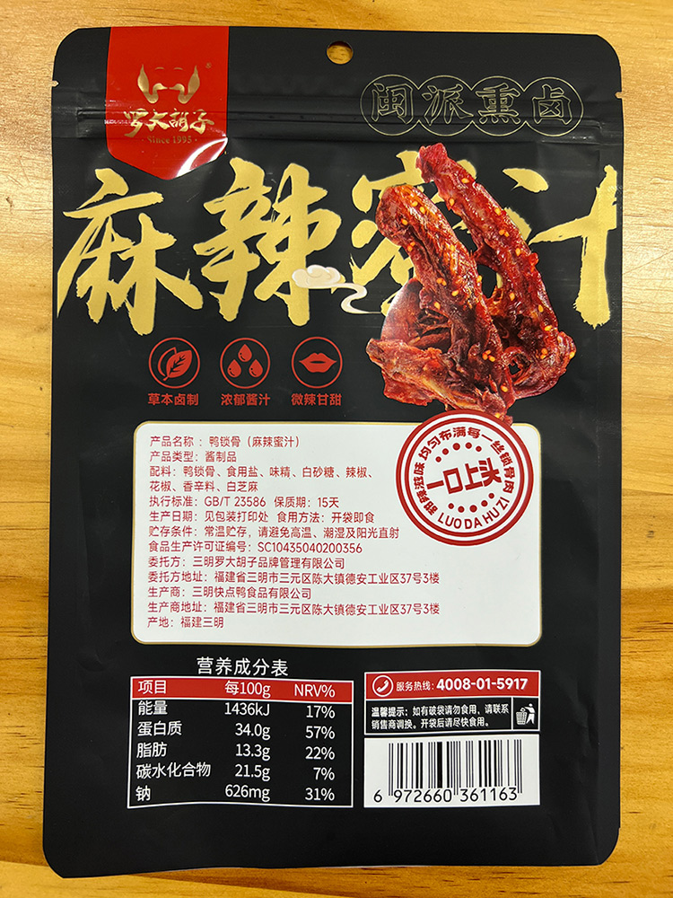罗大胡子麻辣蜜汁鸭锁骨风干甜辣鸭架解馋小零食即食休闲办公室小吃