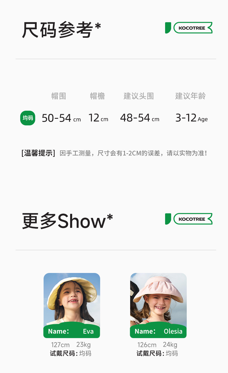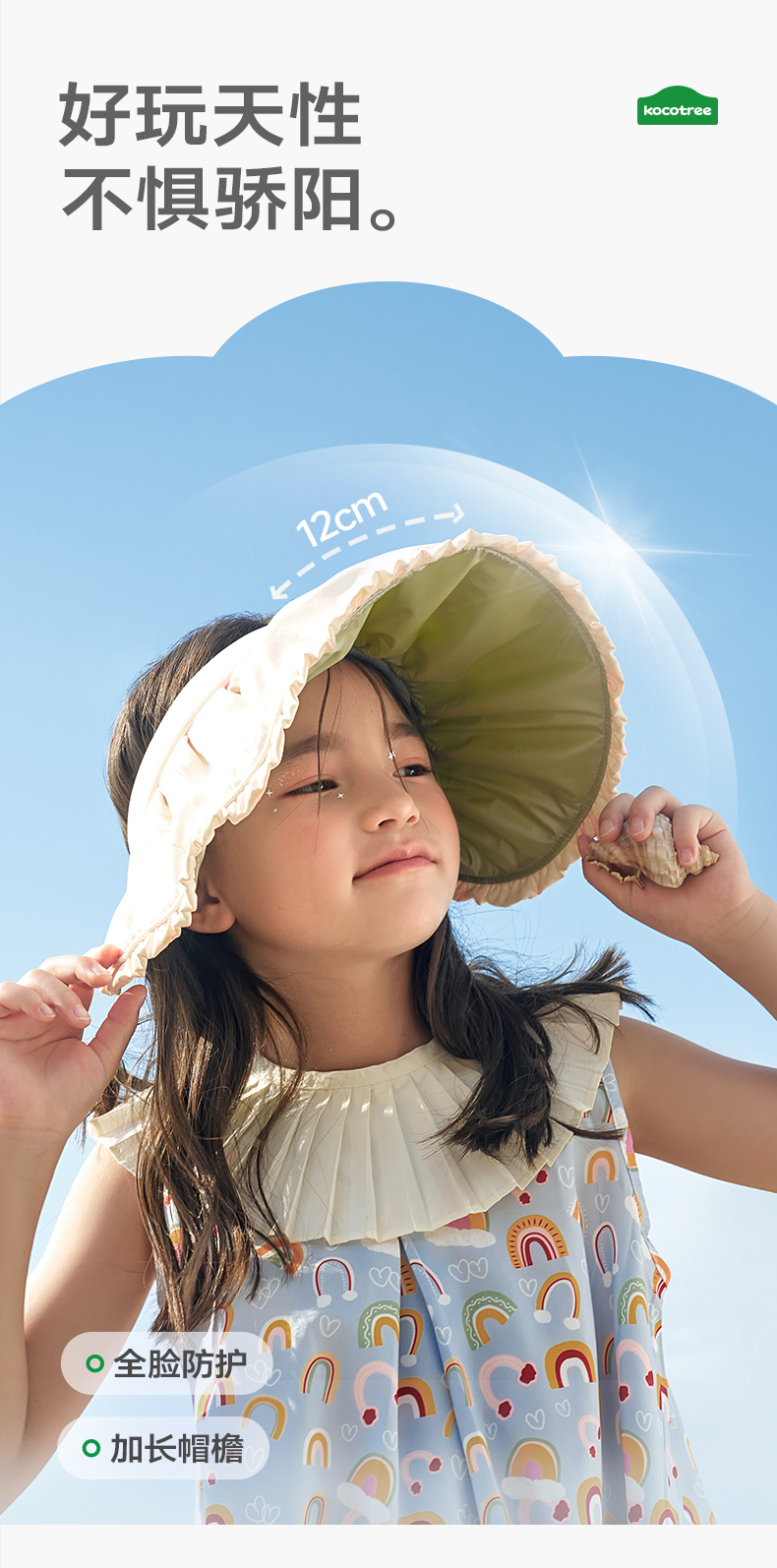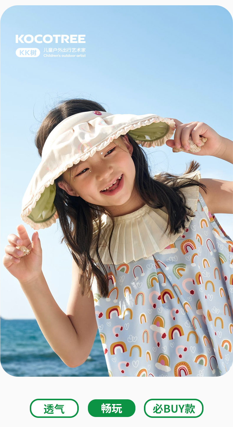 KK树儿童贝壳防晒遮阳帽女童夏季防紫外线宝宝空顶帽太阳帽子女孩