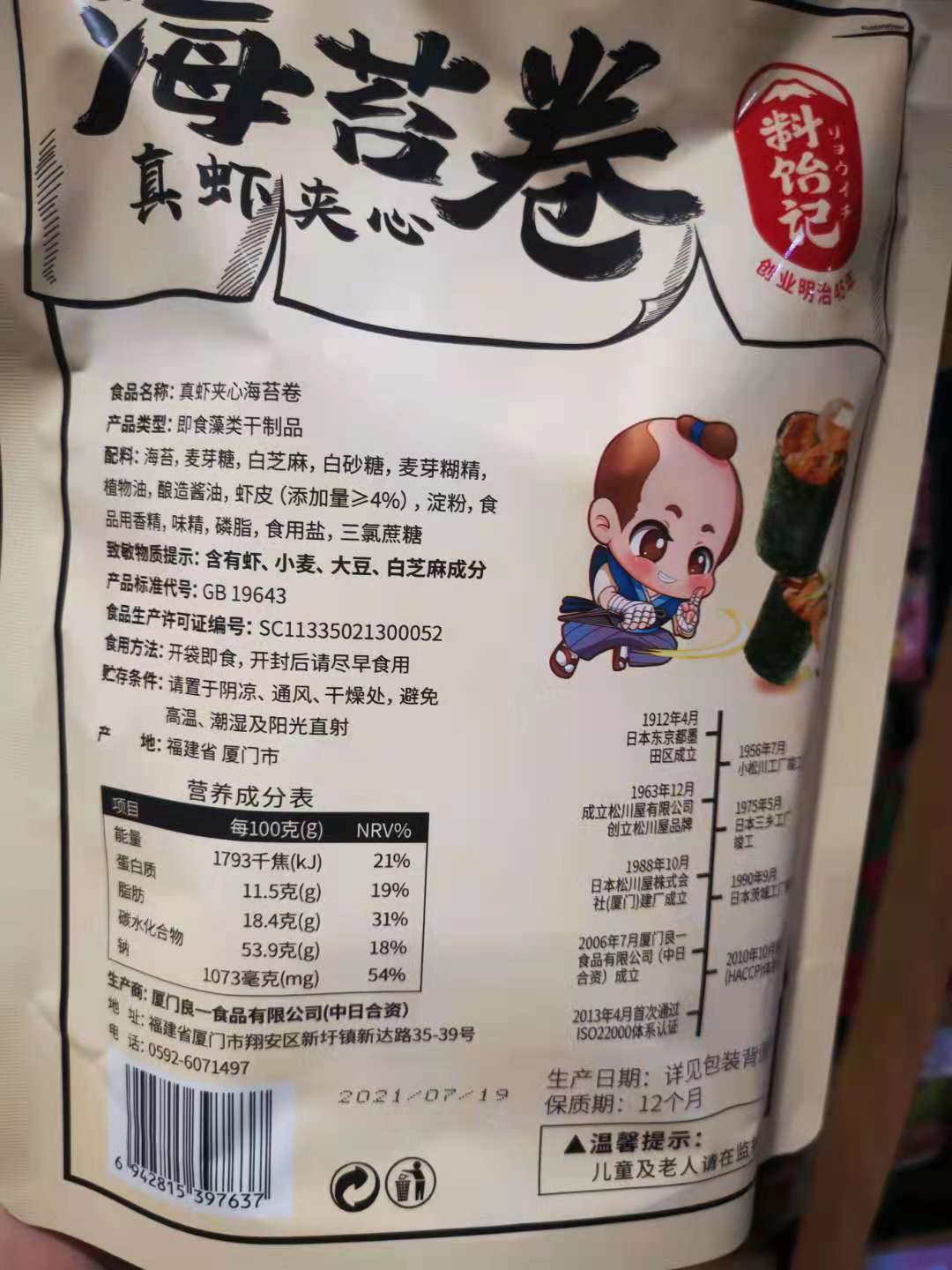 【送宠爱】32g 料饴记真虾海苔卷/肉脯夹心海苔卷