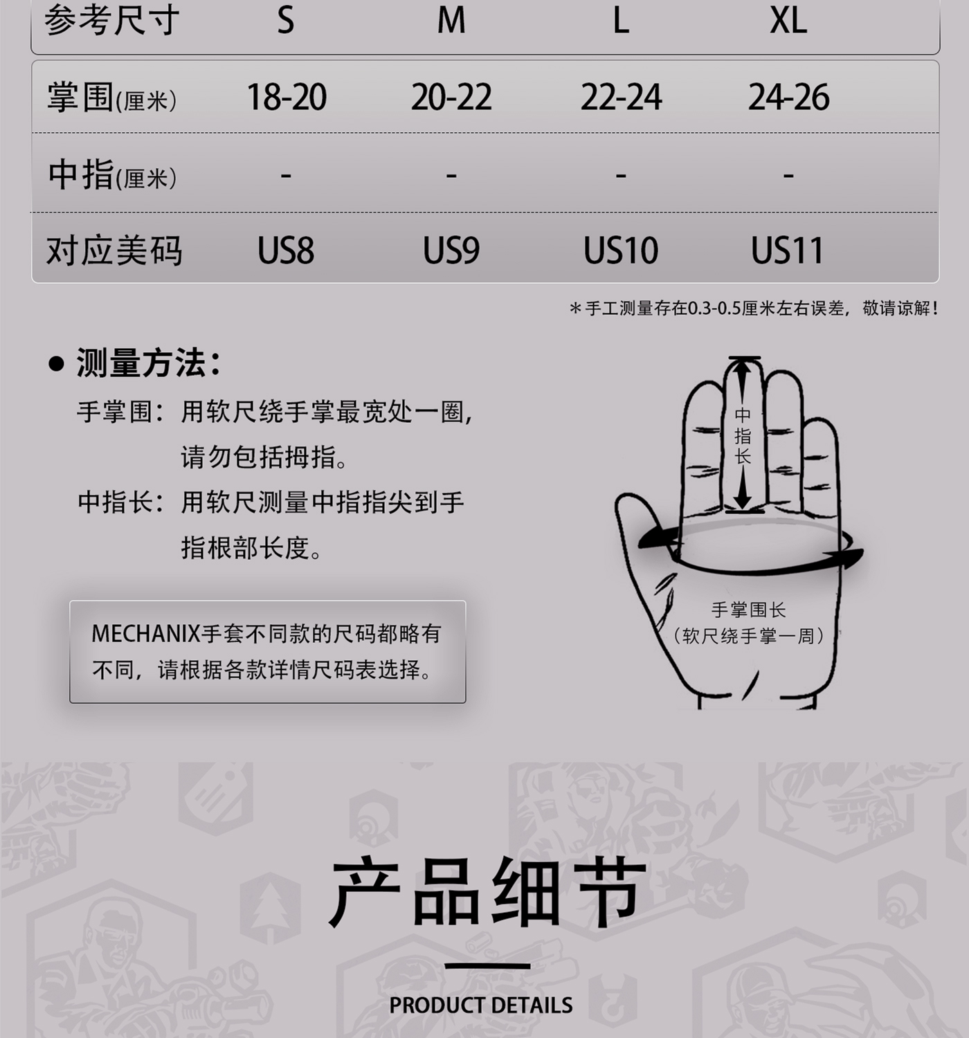 【露三指 可精细化操作 抗冲击 耐用性强】美国Mechanix超级技师战术骑行户外机械师铠甲防摔手套mpf ds(js)