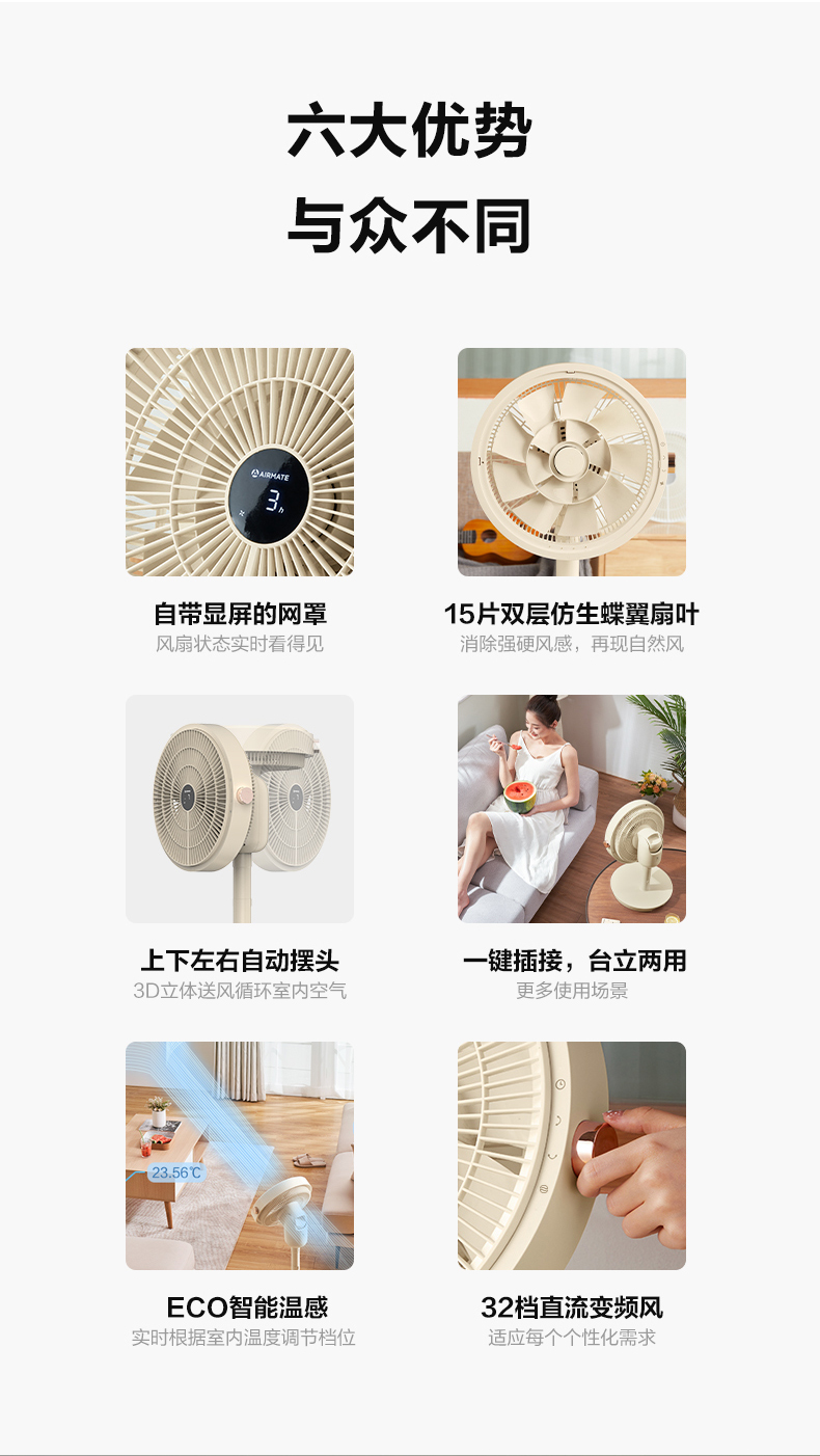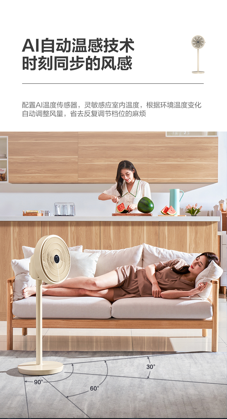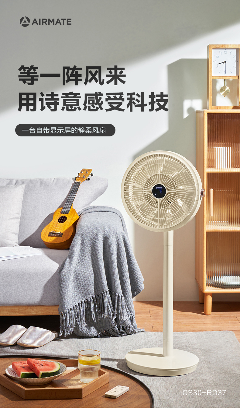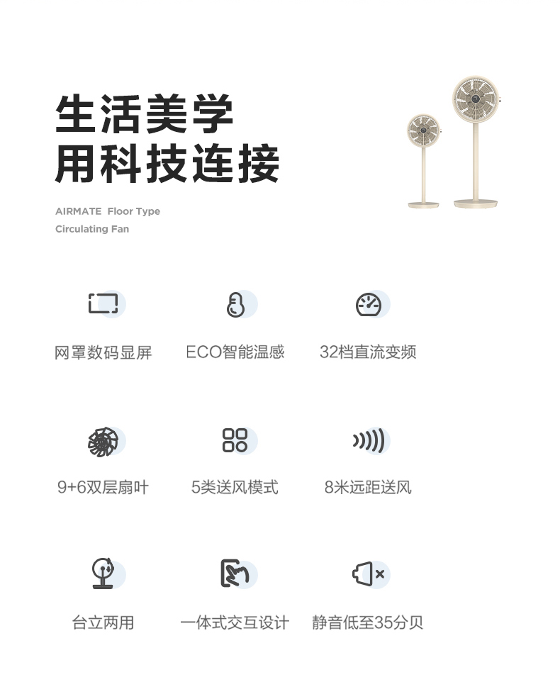 艾美特 Airmate智能温感空气循环扇直流变频遥控电风扇家用台立两用落地扇 CS30-RD37