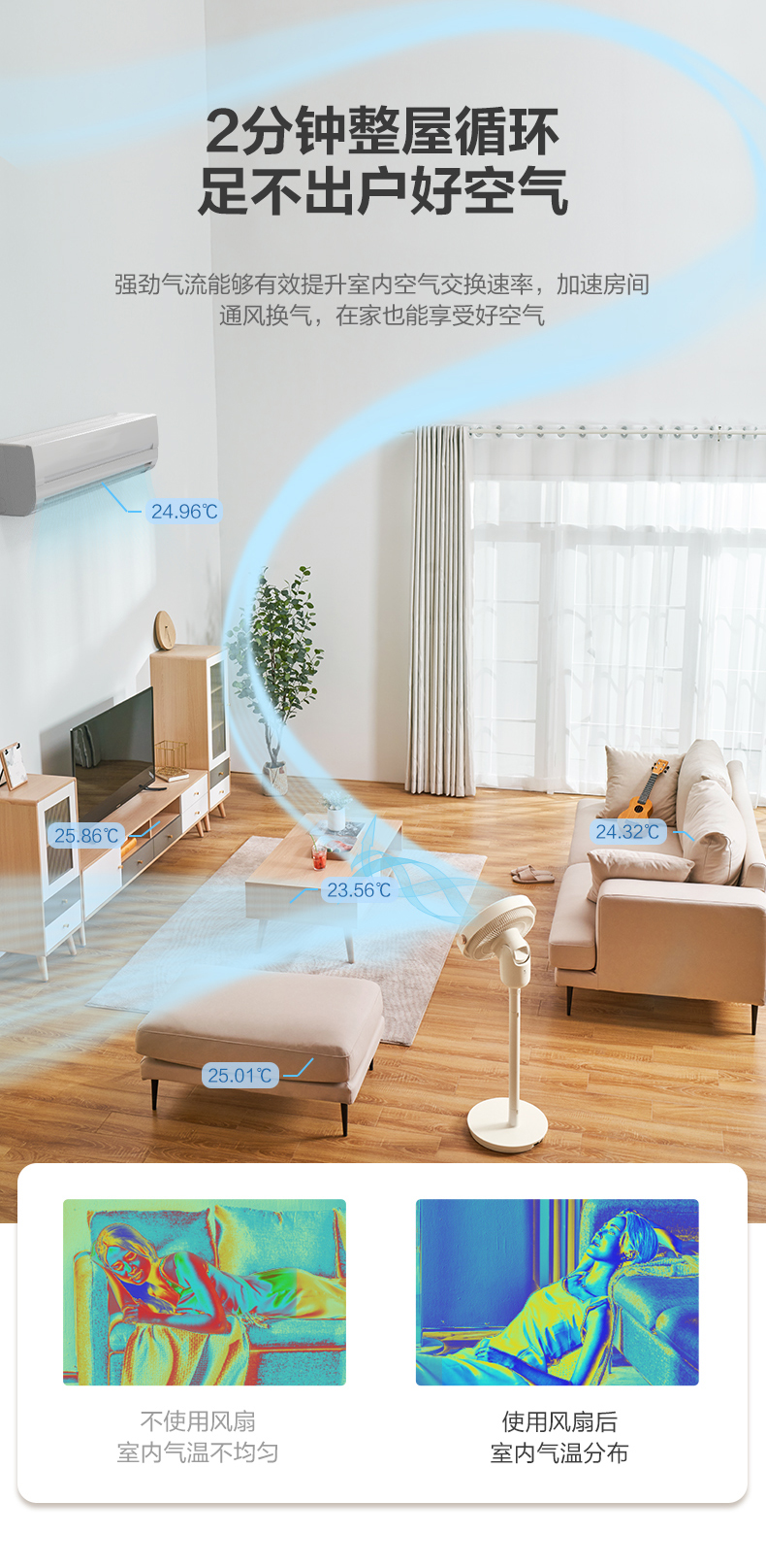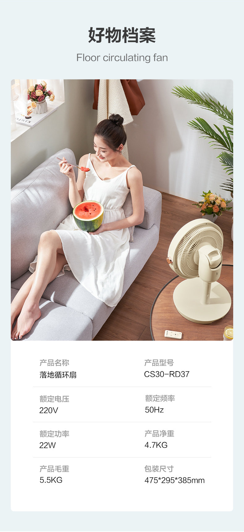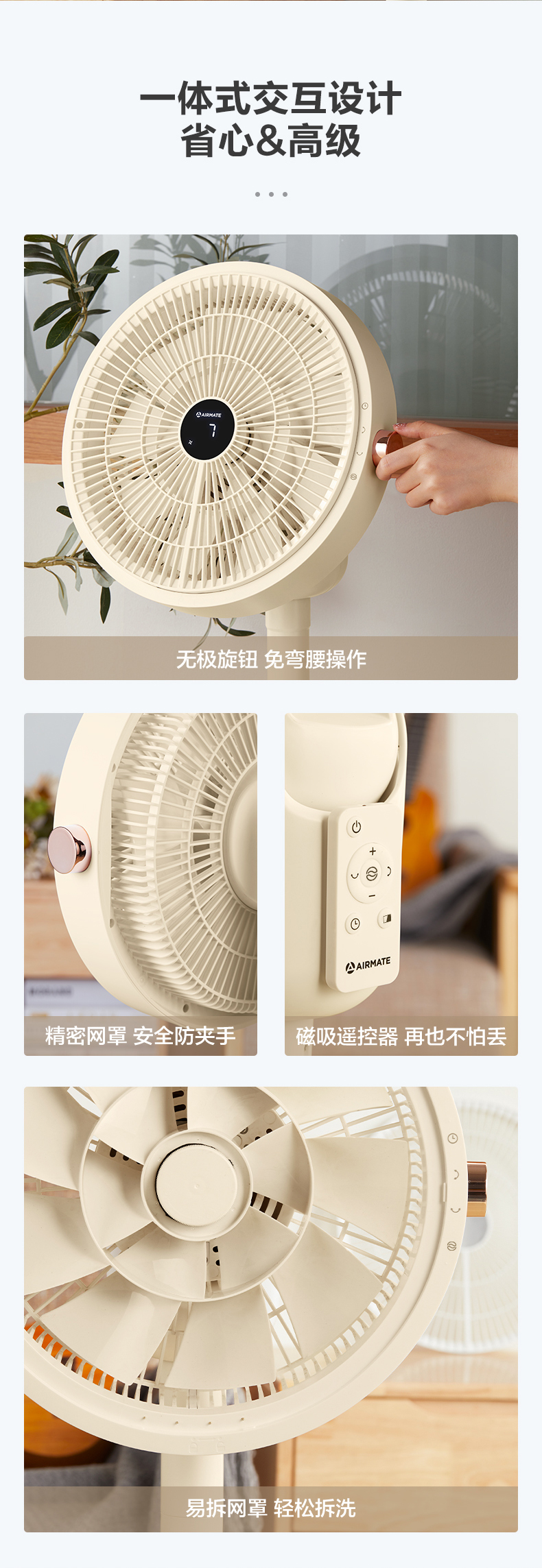 艾美特 Airmate智能温感空气循环扇直流变频遥控电风扇家用台立两用落地扇 CS30-RD37