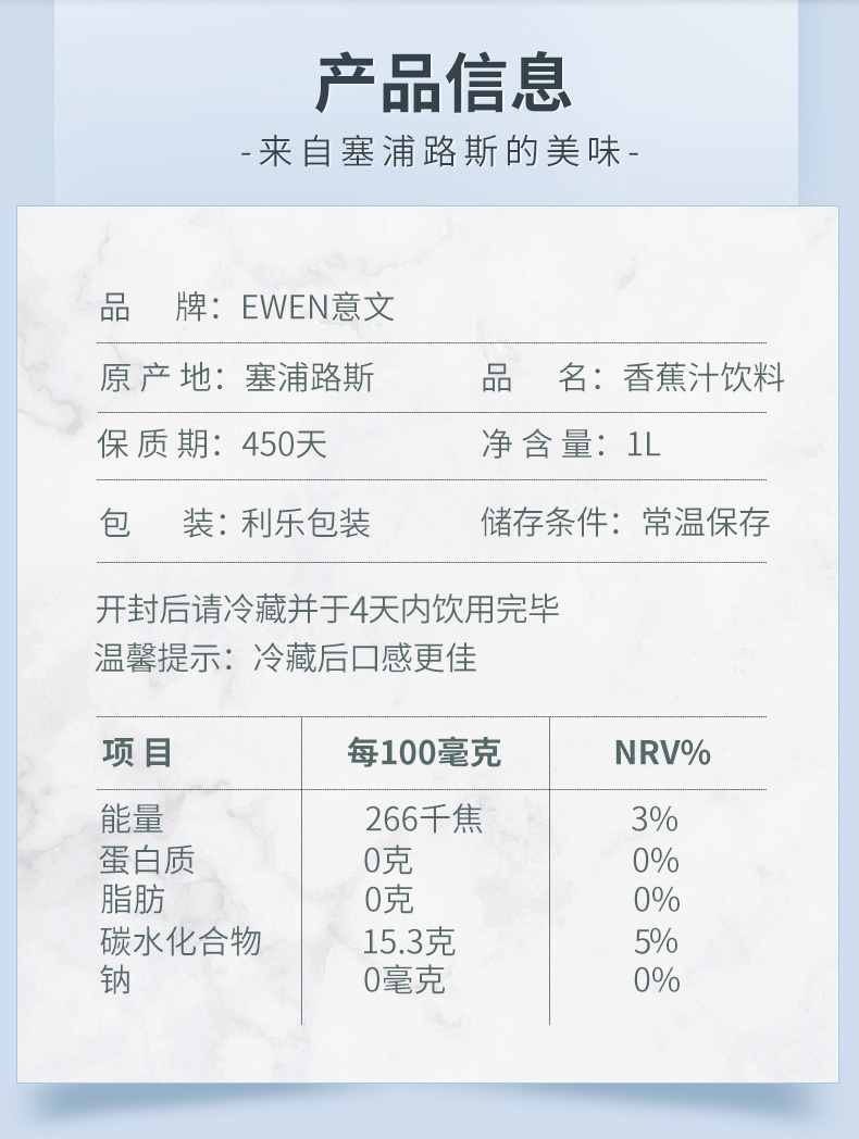 塞浦路斯进口EWEN意文香蕉汁 1L/盒