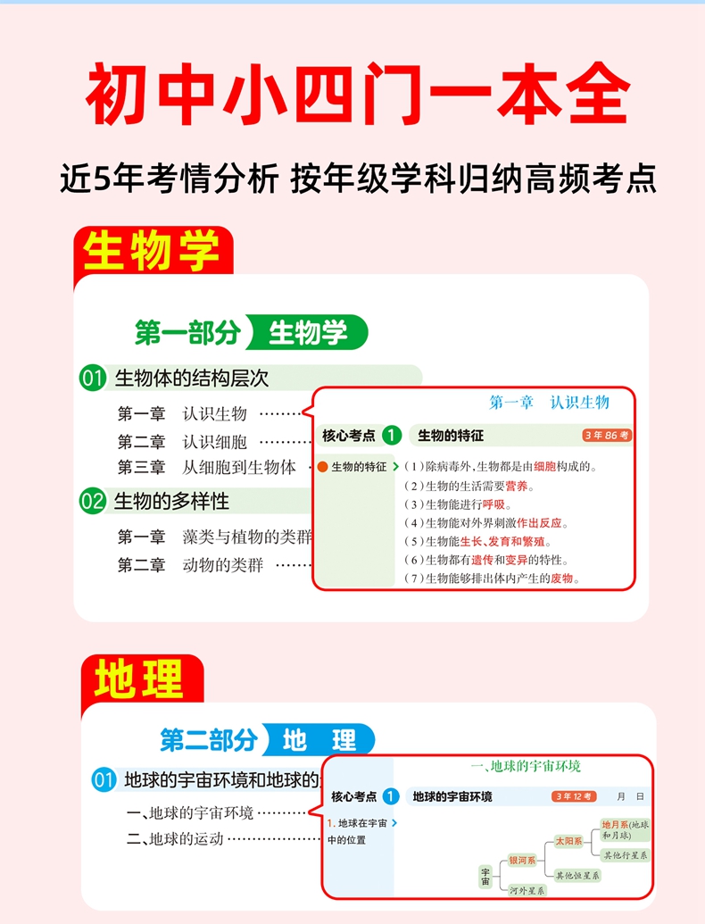 初中秒记小四门初中生物学地理历史道德与法治知识归纳思维导图