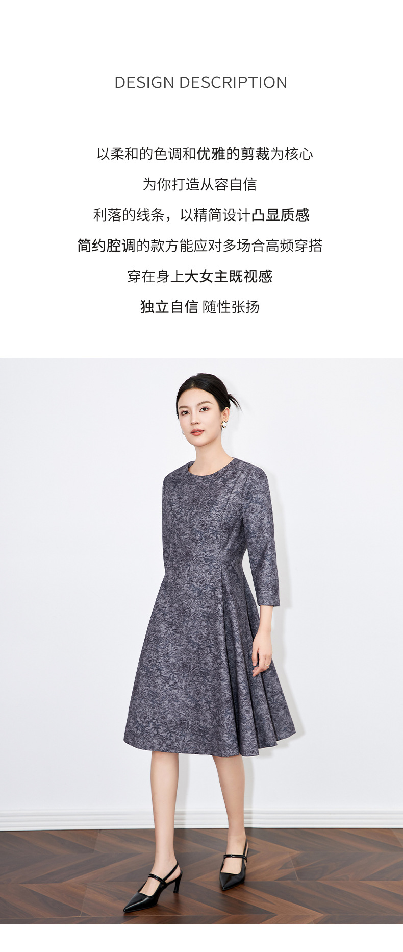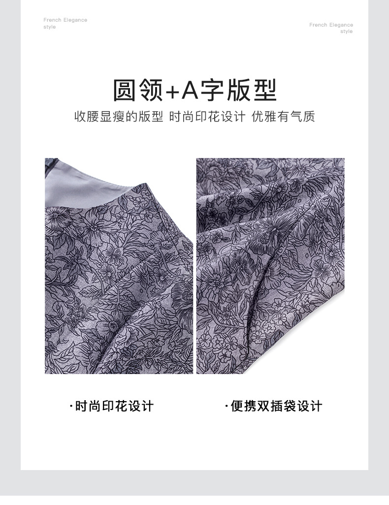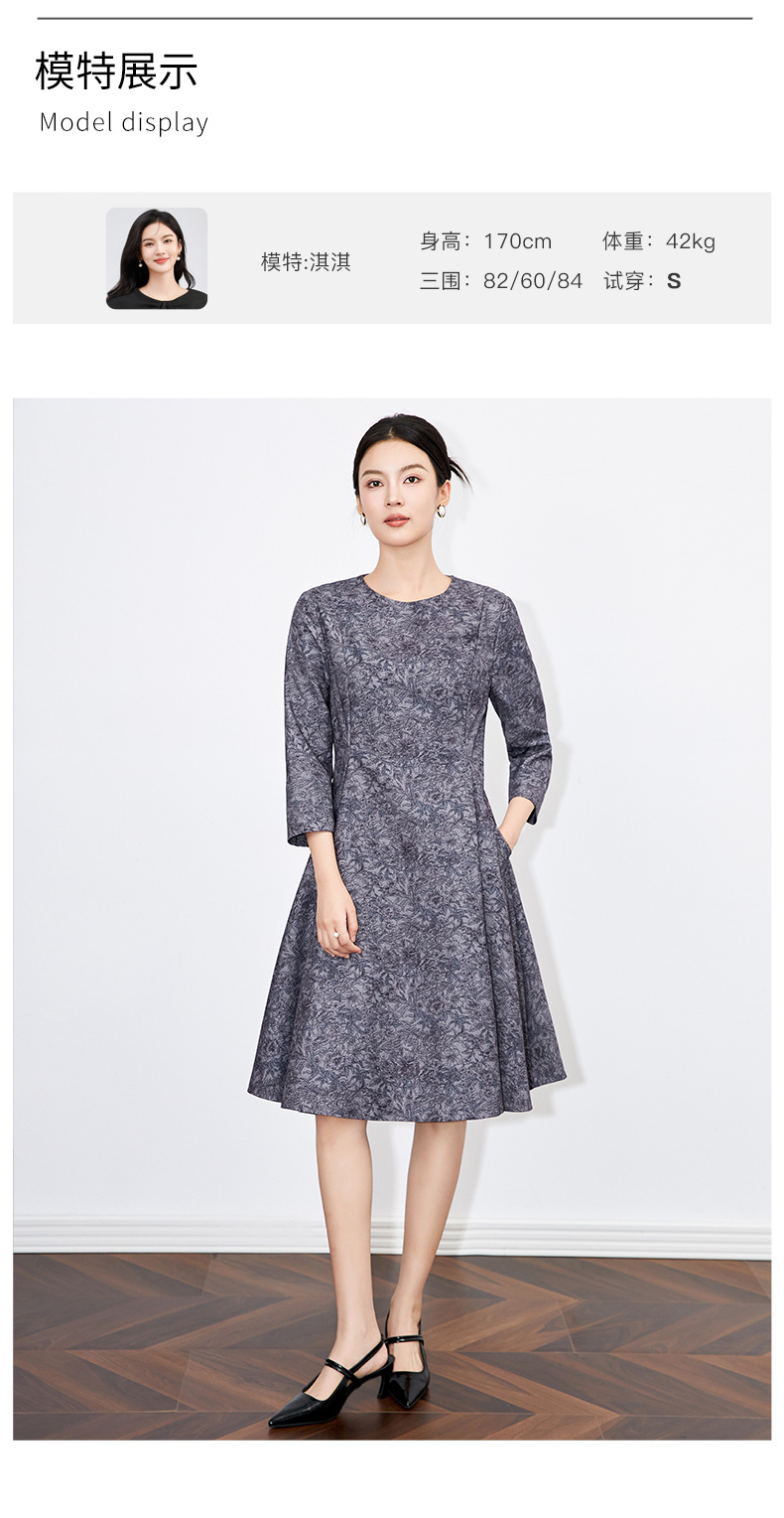【高货wl】全新升级【铂金会员330/天猫439/差价109】(13343) 洛诗琳秋季法式轻奢高级感印花七分袖连衣裙时尚简约A字裙