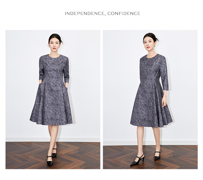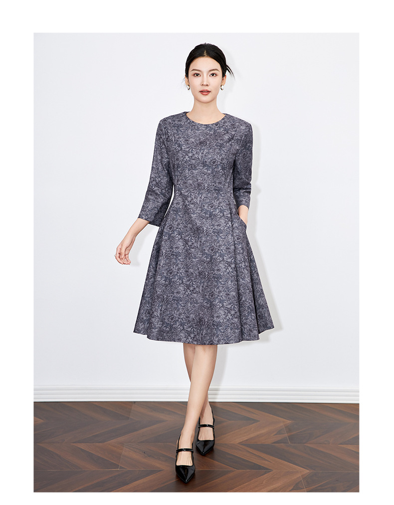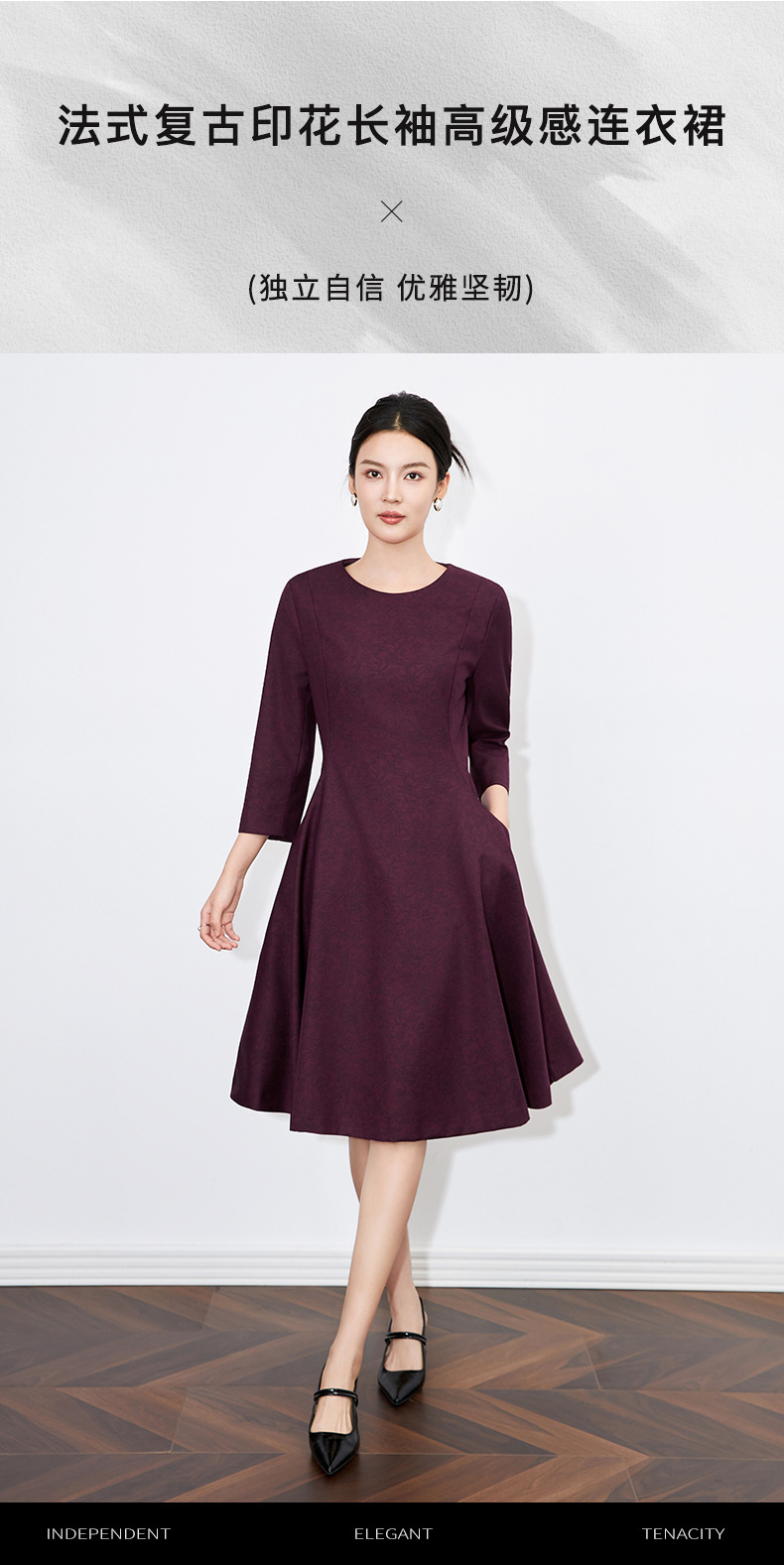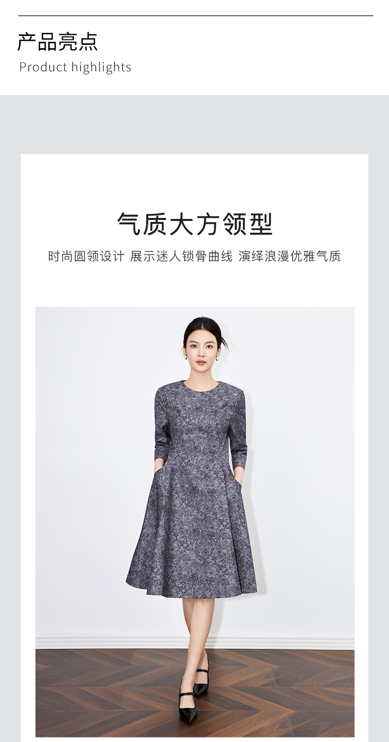 【高货wl】全新升级【铂金会员330/天猫439/差价109】(13343) 洛诗琳秋季法式轻奢高级感印花七分袖连衣裙时尚简约A字裙