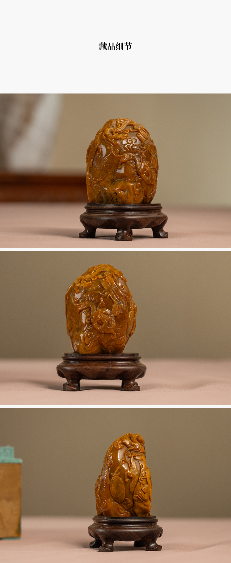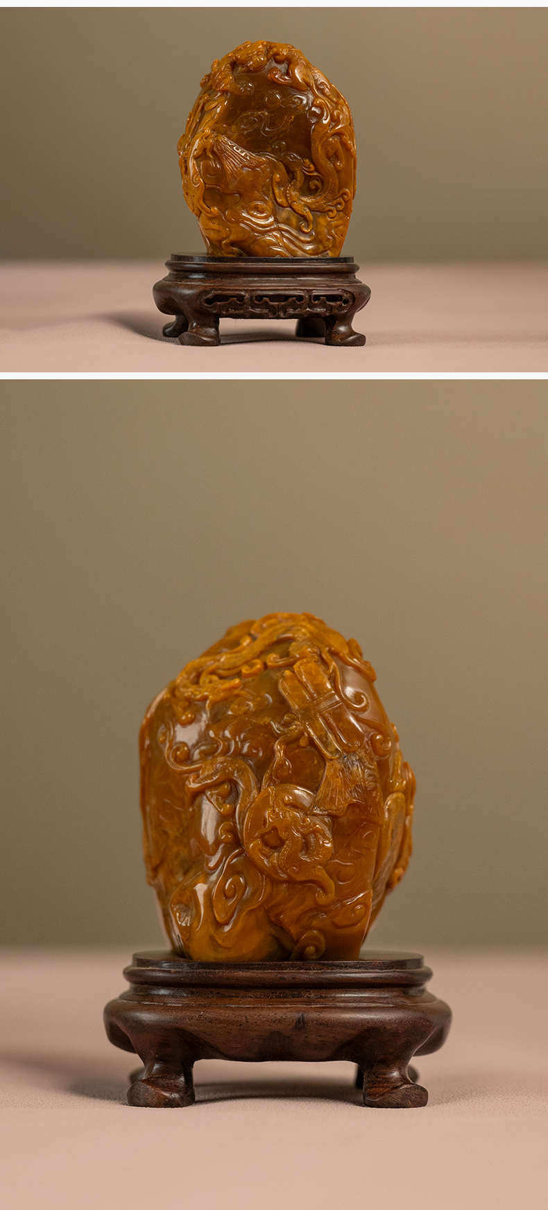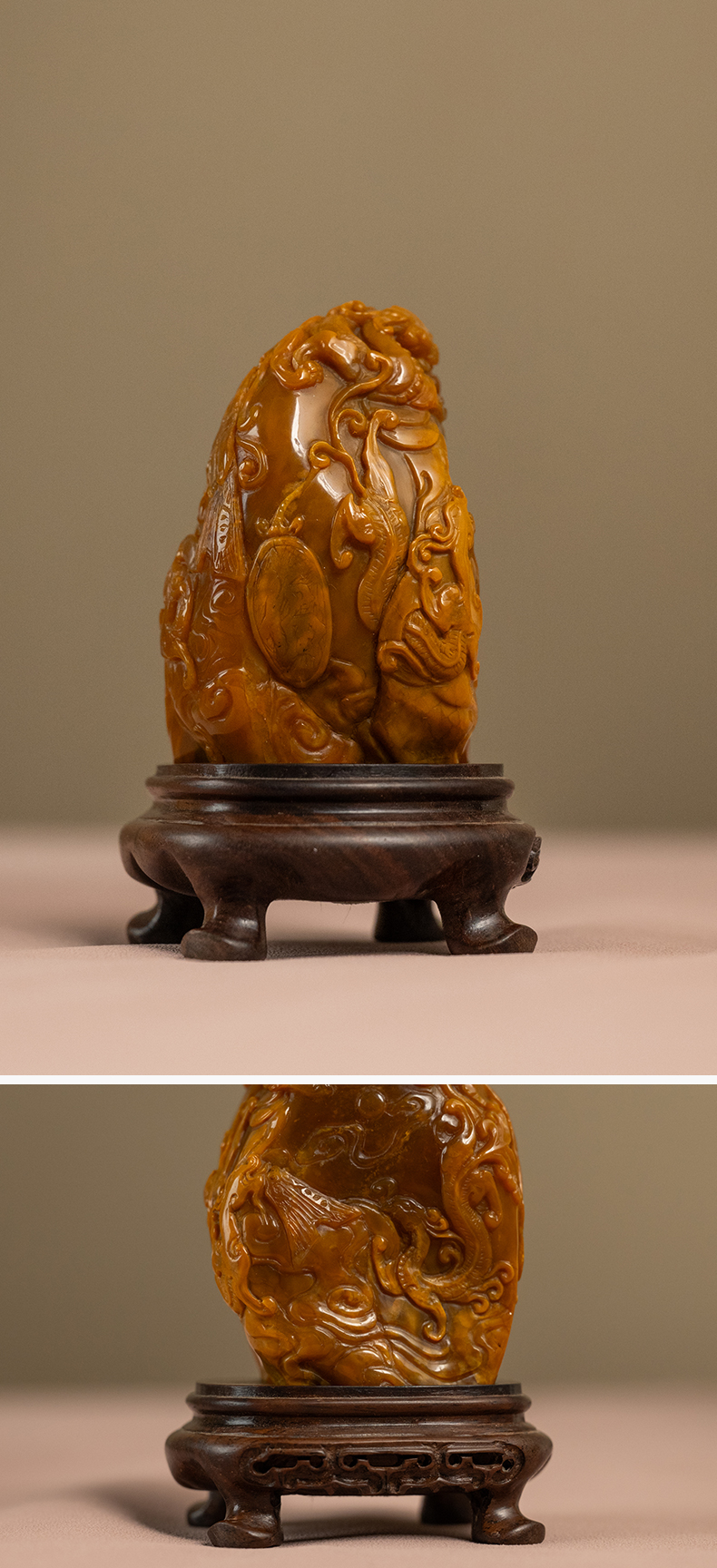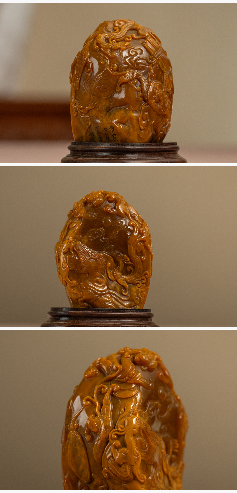 清 田黄石雕龙凤纹诗文印章(印文:怡然自得)