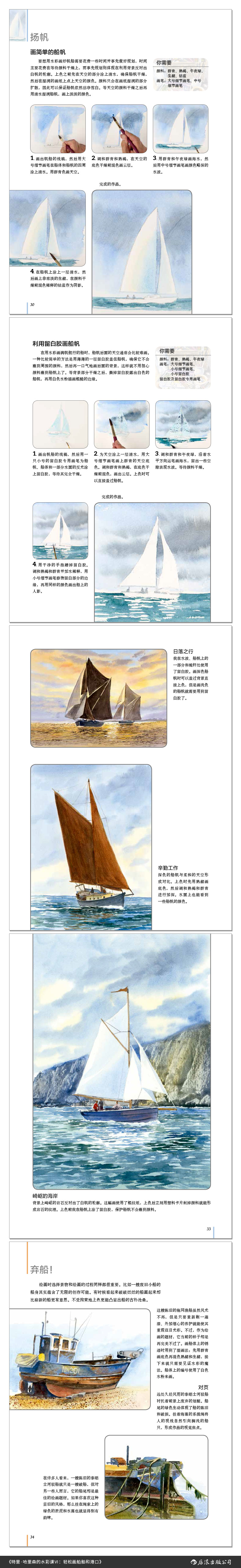 表现海边风光时,船舶和港口是常常出镜的热门主题。船舶的尺寸和形状多种多样,港口也各具风情。但是如果不知道描绘的方法,即使是zui简单的小帆船,也不容易画出理想的模样。