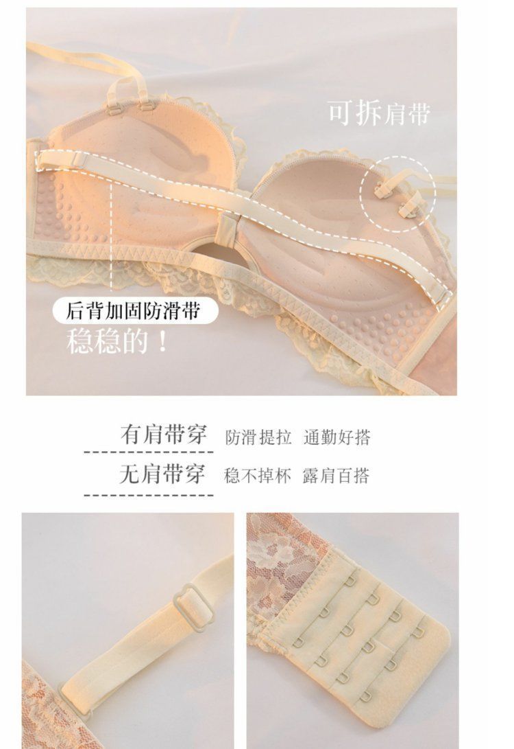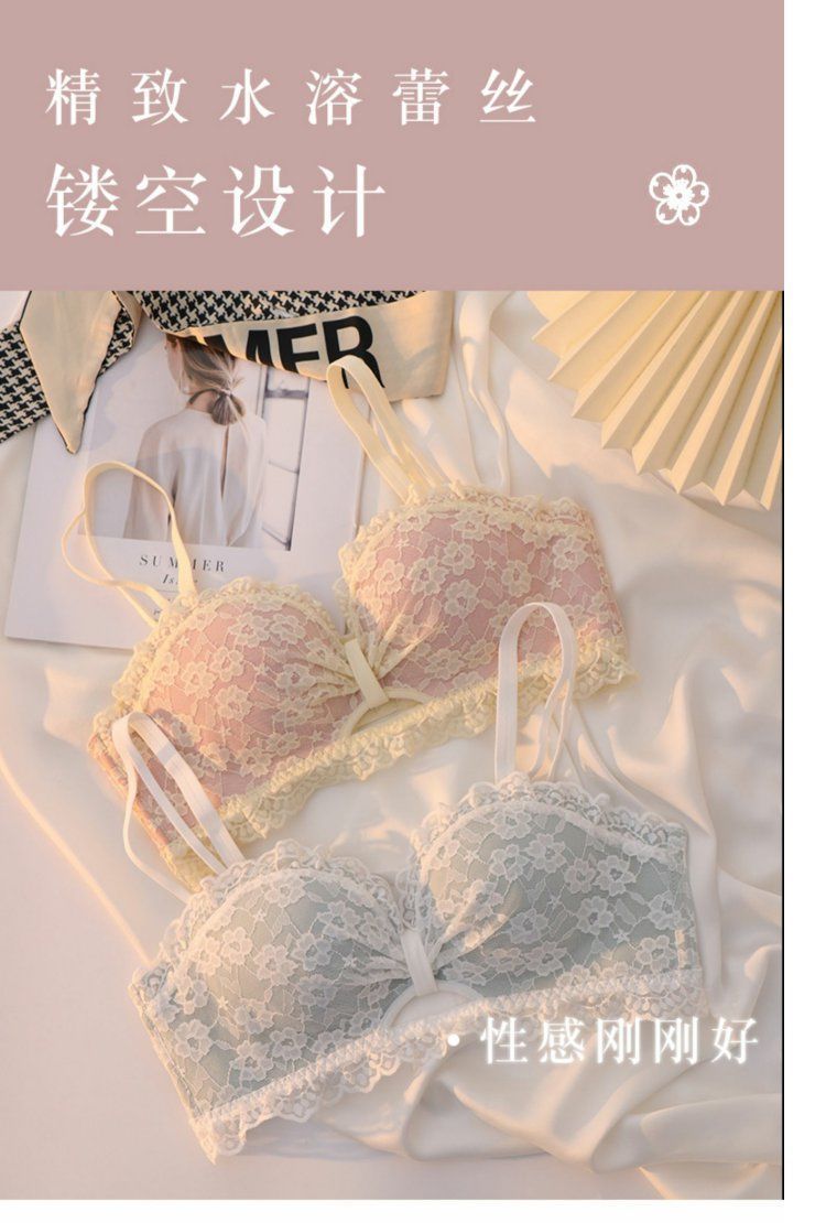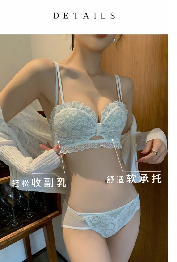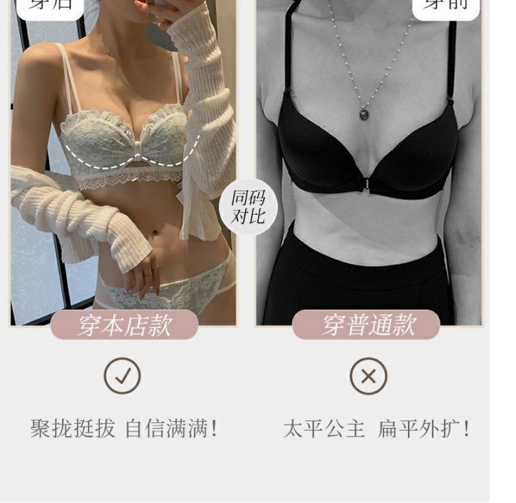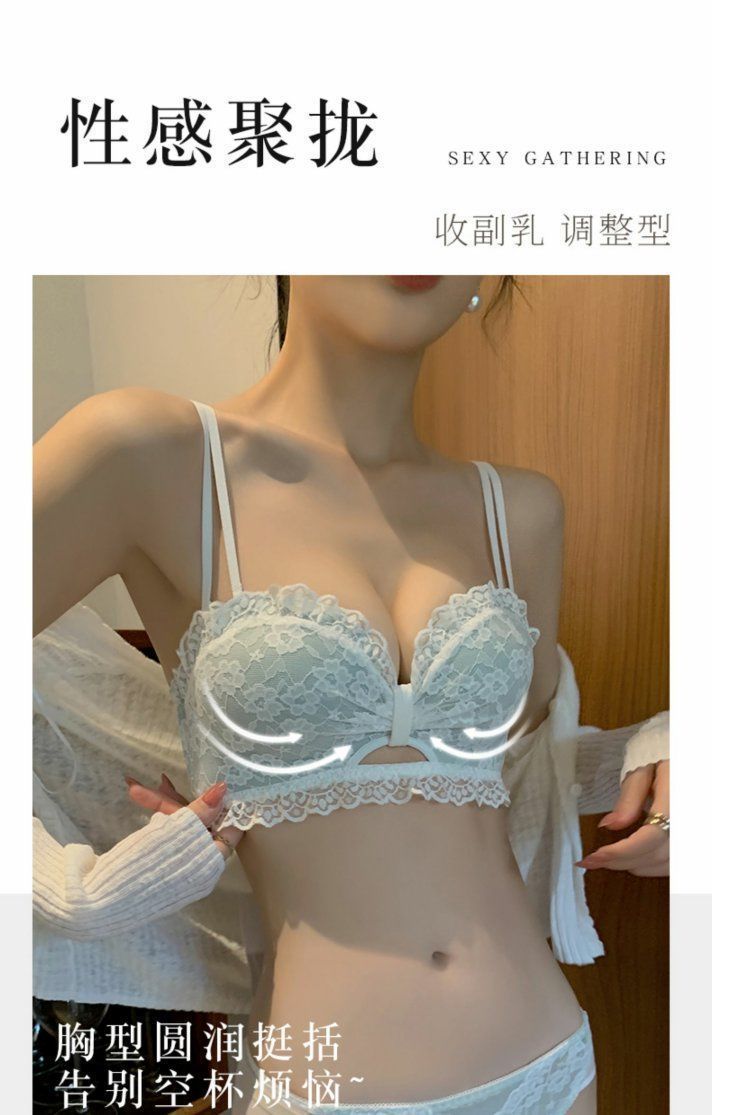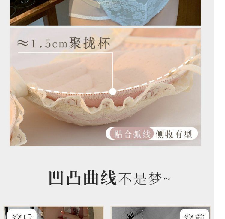 少女内衣聚拢纯欲蕾丝乳胶内衣无钢圈调整型上托平胸专用文胸套装