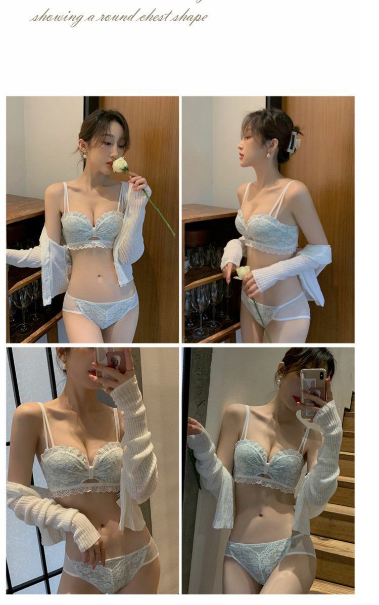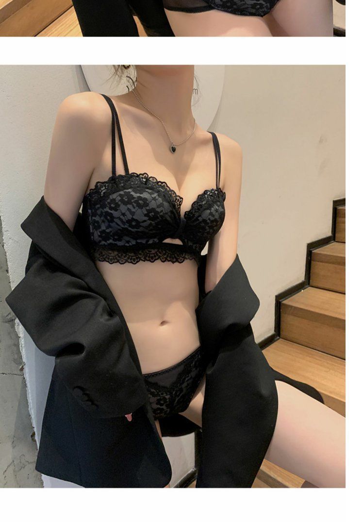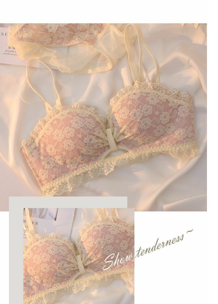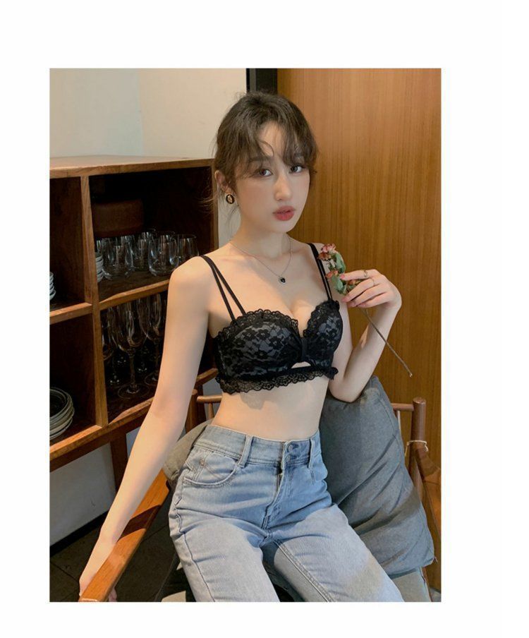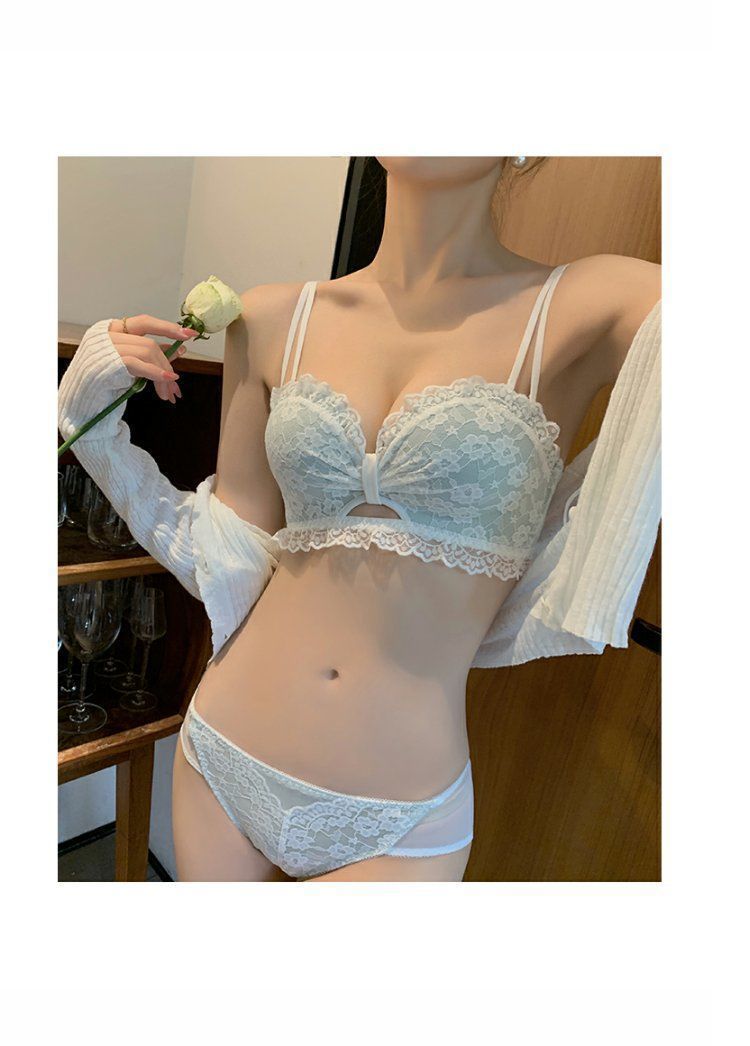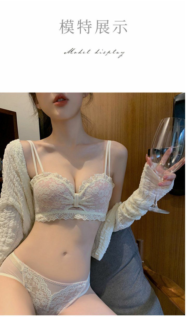 少女内衣聚拢纯欲蕾丝乳胶内衣无钢圈调整型上托平胸专用文胸套装