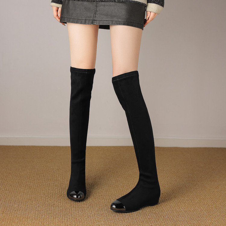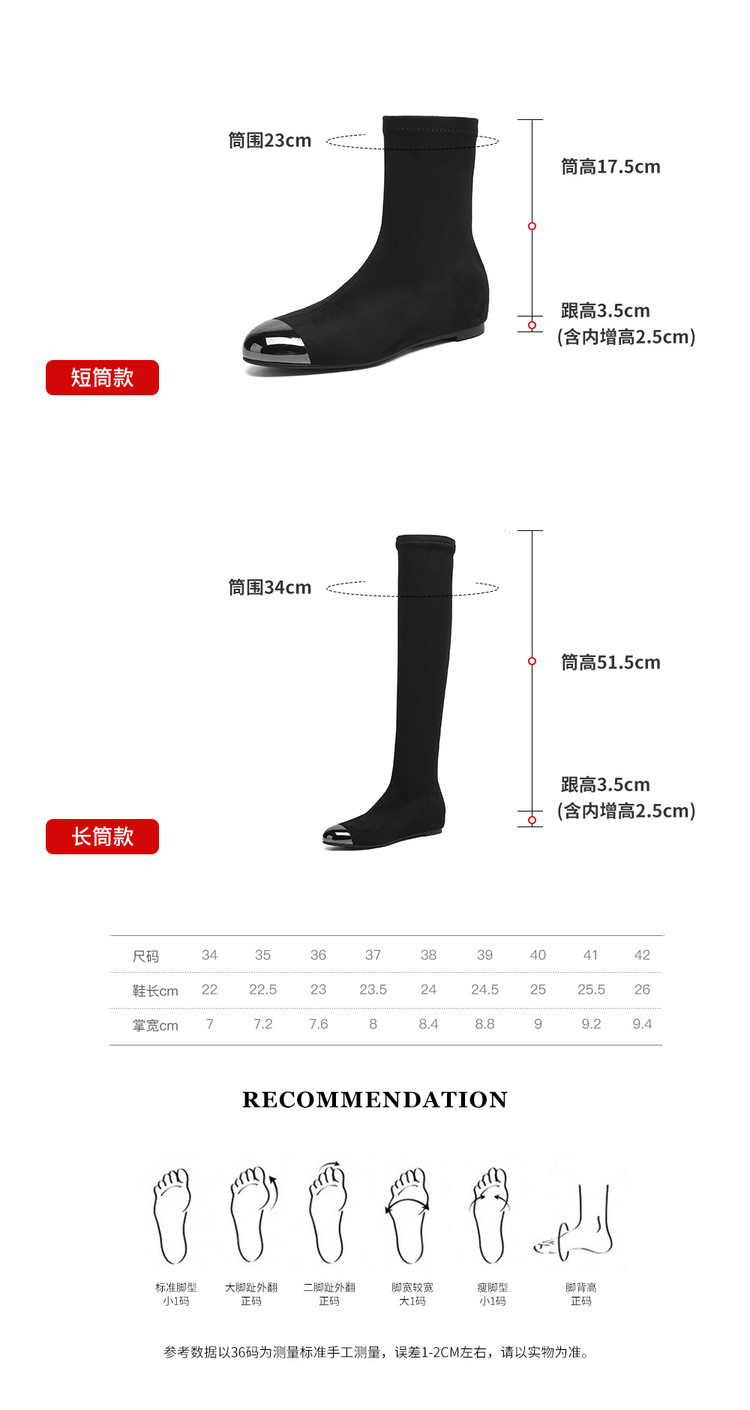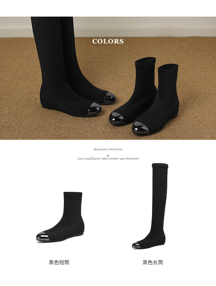 【预售7天】秋冬时尚显瘦弹力靴女简约百搭通勤圆头舒适内增高铁头瘦瘦靴HCYYHD&6308/6319