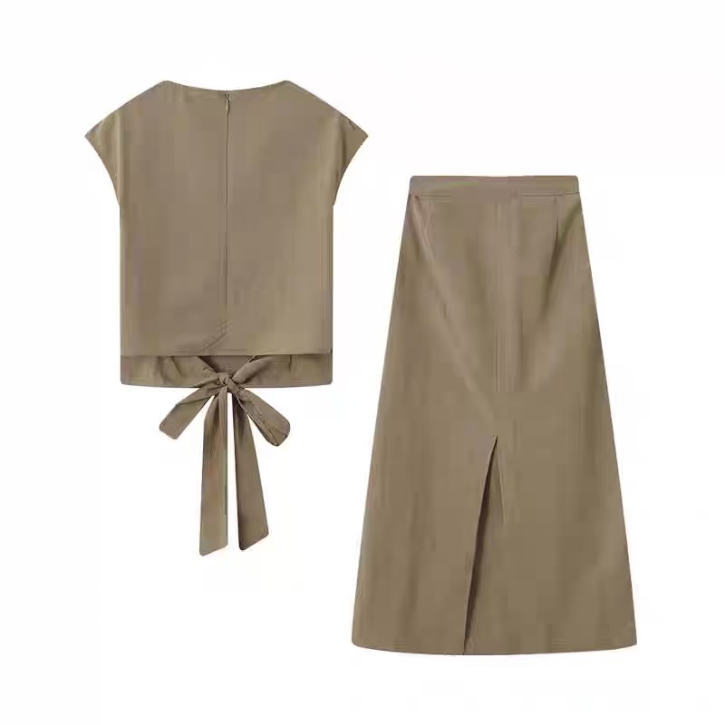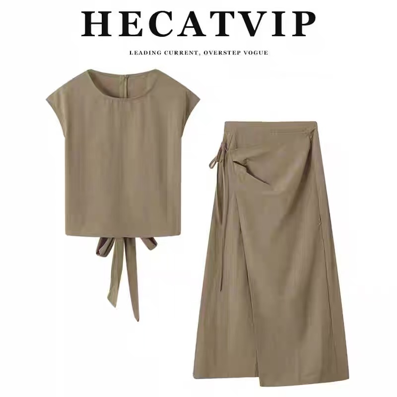 12.12错过没有!清货不退NO退,介意勿入【新品推荐】瑟俪品牌-(套装)067A无袖上衣➕半身裙系带套装-喜出