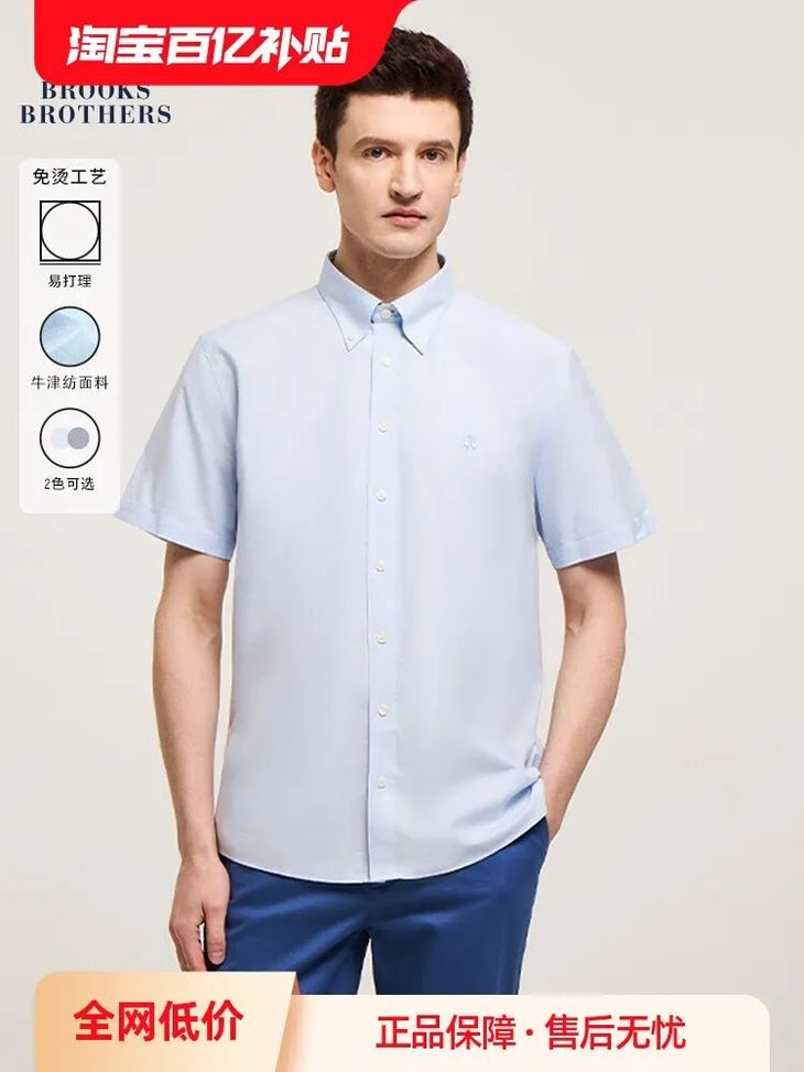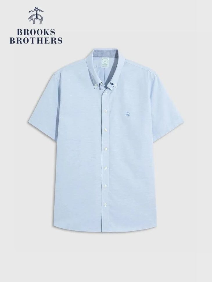 Brooks Brothers/布克兄弟男士修身版美式牛津纺短袖休闲衬衫 线上500+ 主要是现阶段市面流通的优质衬衫非常少!夏天男人没有一件硬核衬衫总说不过去! 这次带来的是定织面料衬衫,高端全棉牛津纺! 相对纯色衬衫来说,定织印花衬衫的价格要高到1.5倍! 这款衬衫采用60支定织的牛津纺面料 经过水洗工艺后,手感非常细腻舒适 小尖扣领设计,时尚大气 精致裁剪,版型没的说,上身干净利落! 门襟最下方内侧有两例备用扣!