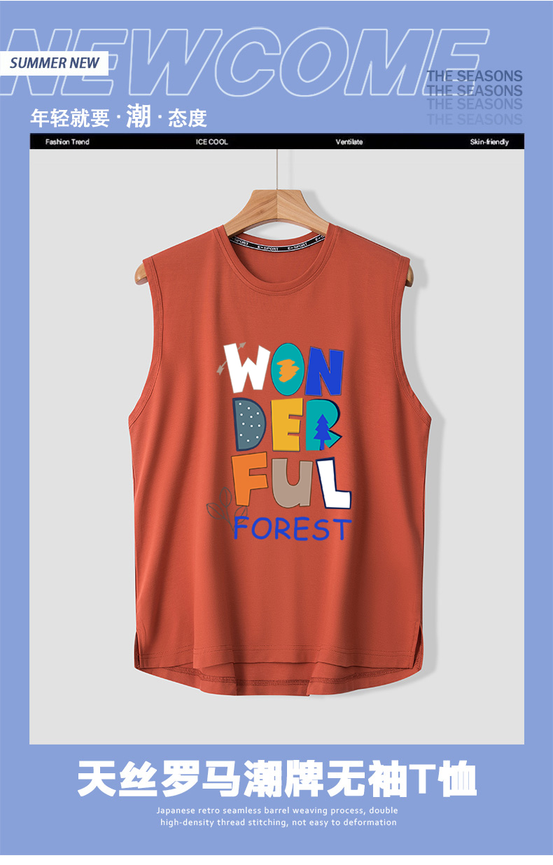 【新款DSK】大依优型大码男装天丝罗马加肥加大短袖背心砍袖t恤