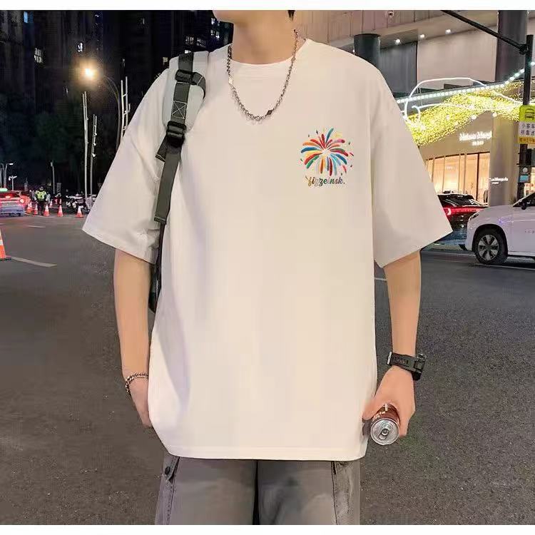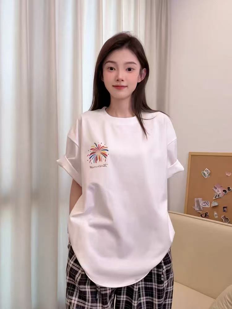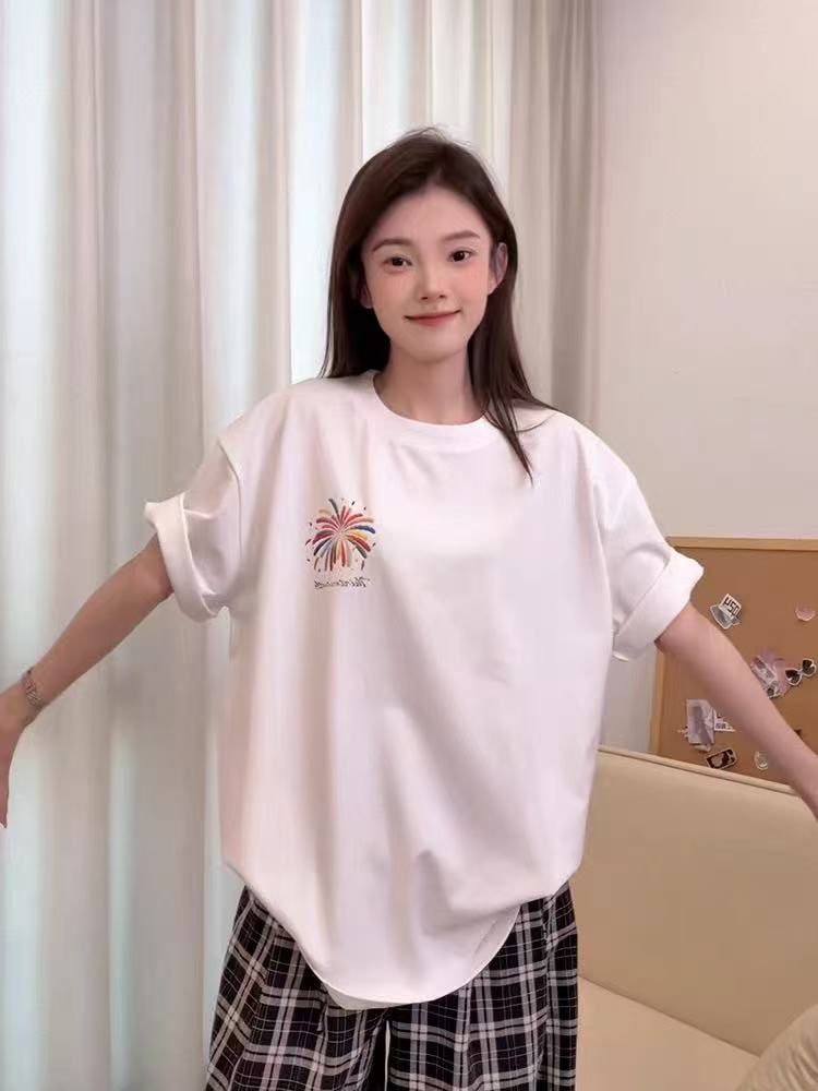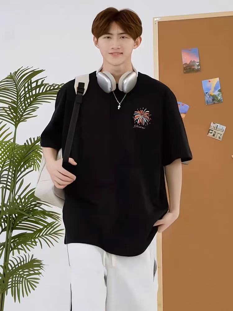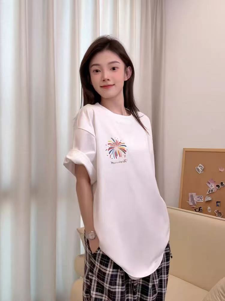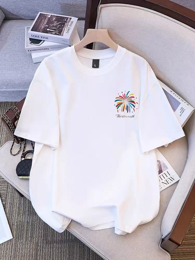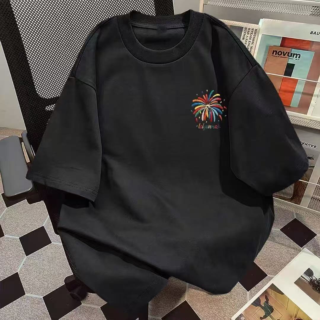 工厂直促价【100%棉】情侣(烟花-侧标)柯式印花短袖T恤-喜出