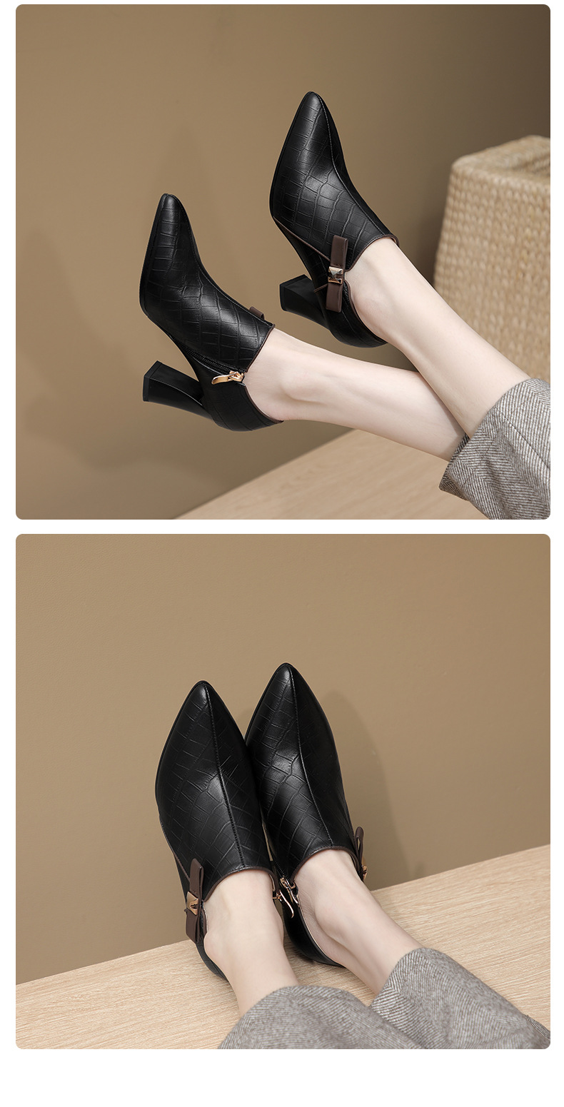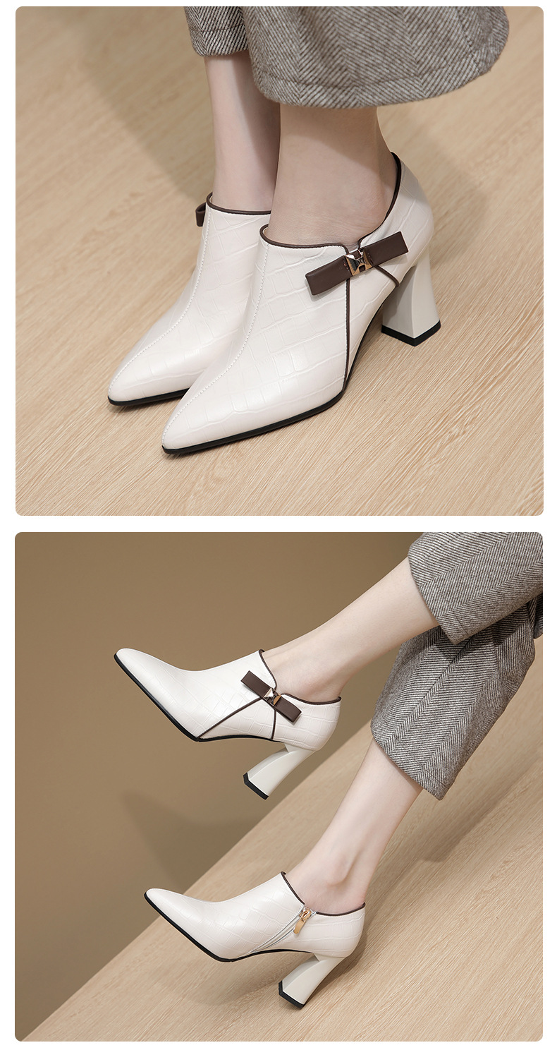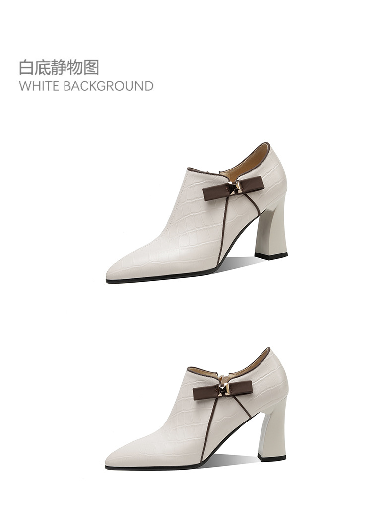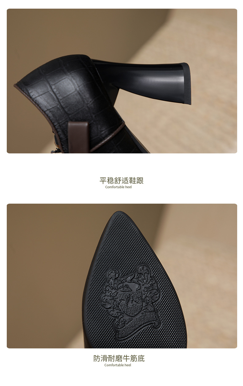 法式新款秋冬单鞋,黑色软皮尖头粗跟高跟高跟鞋蝴蝶结深口女鞋GLS514