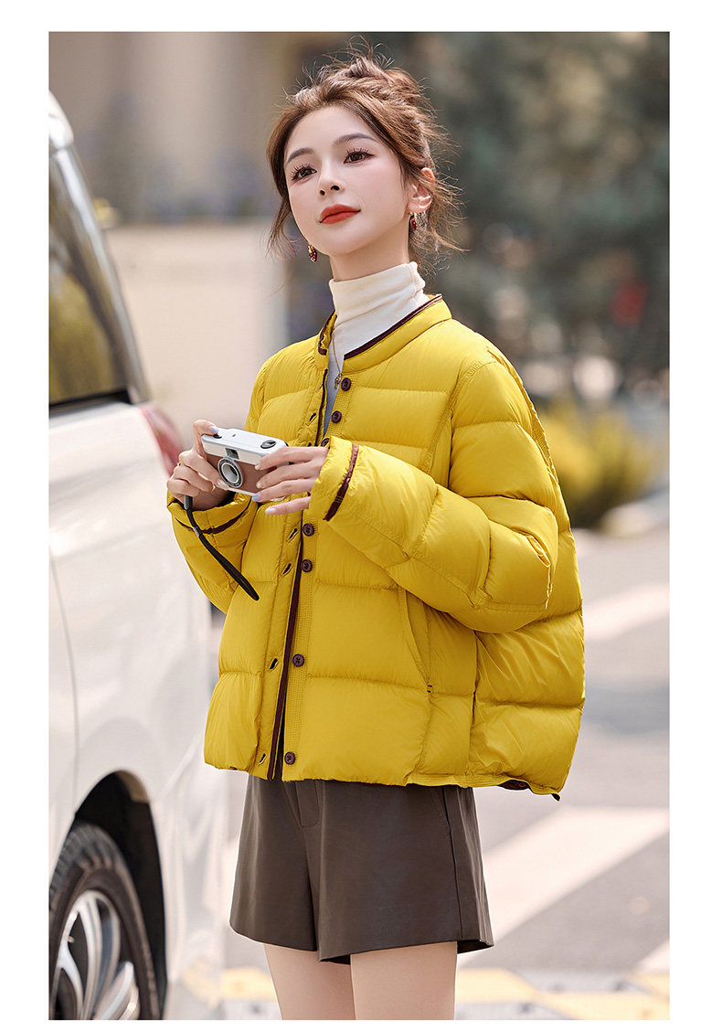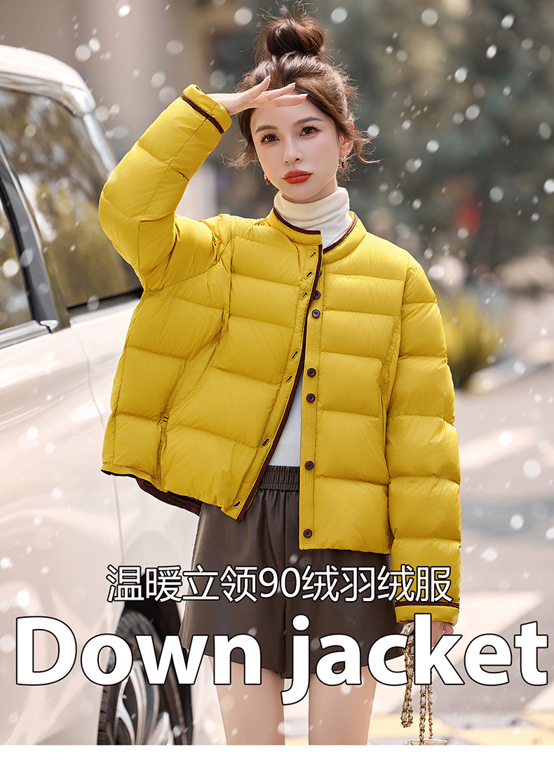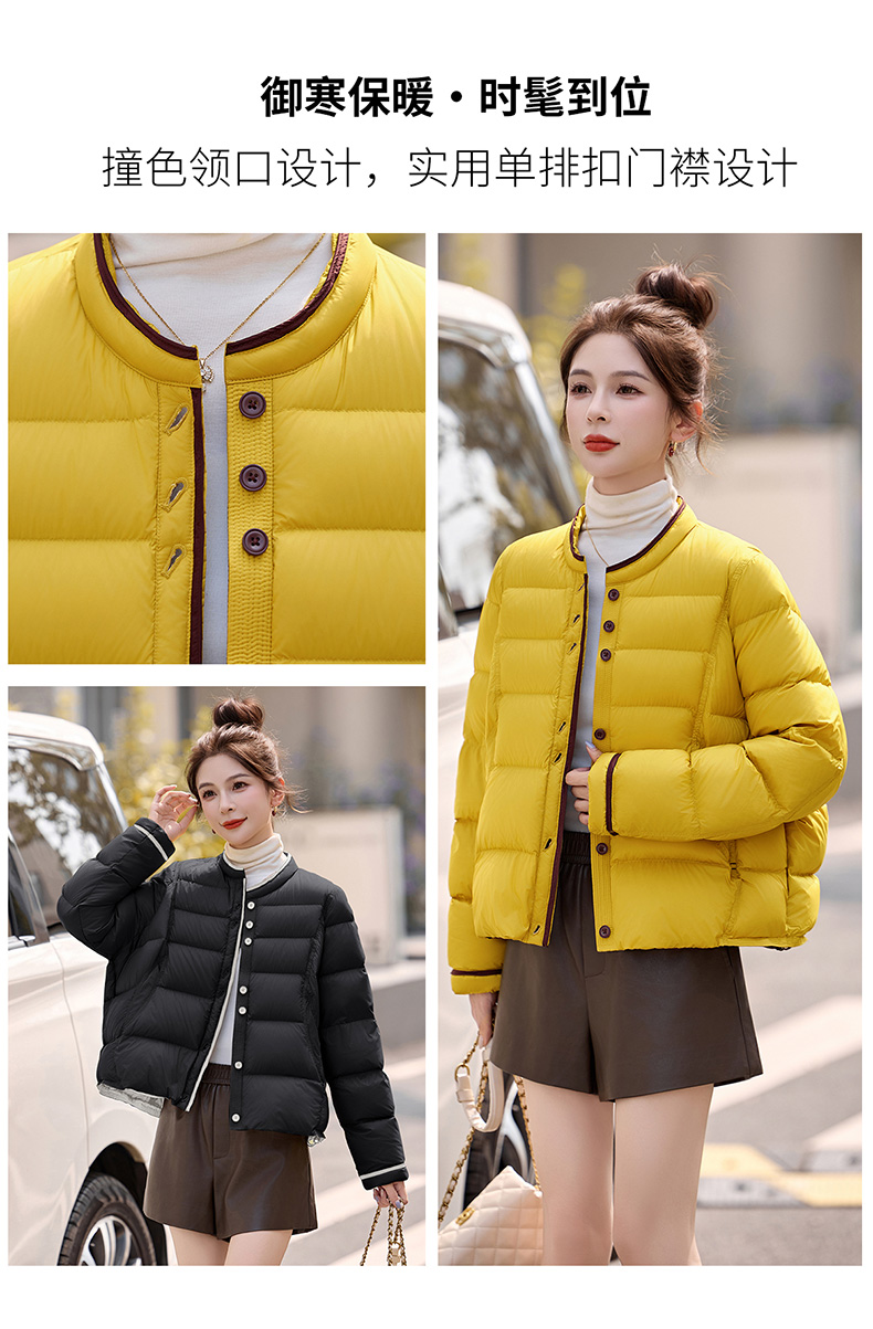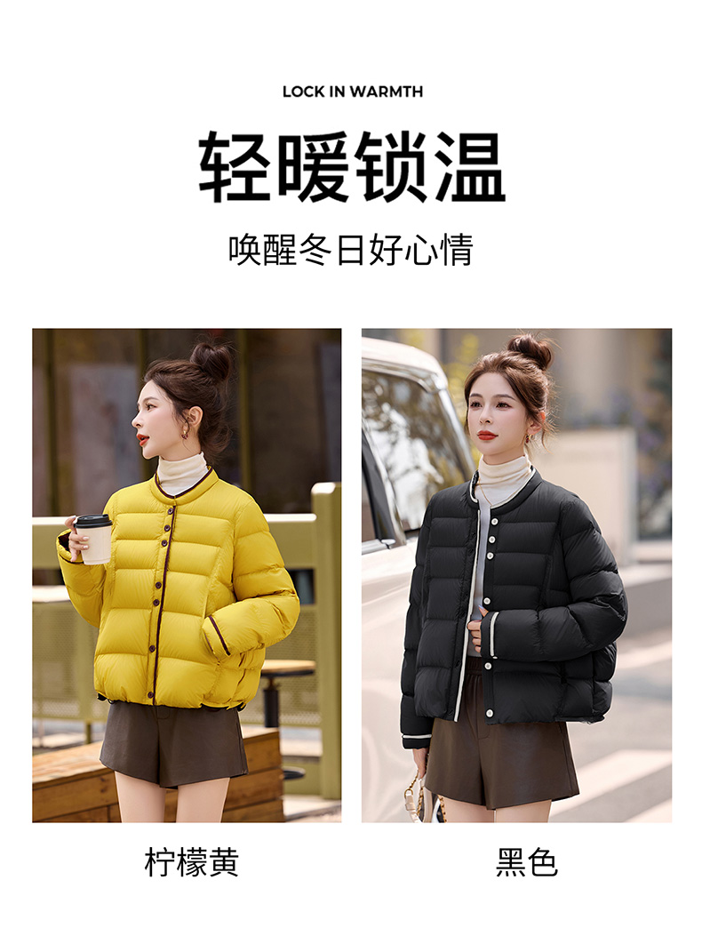 时尚撞色短款羽绒服,保暖90鸭绒外套面包服潮HR-YAX2539