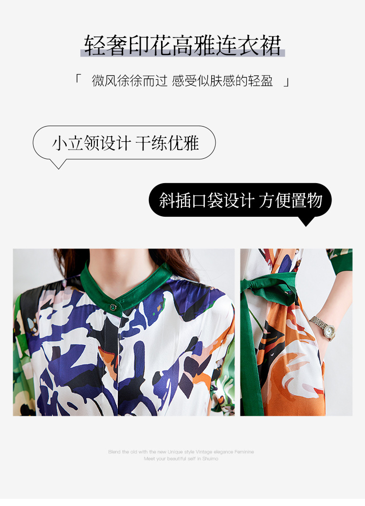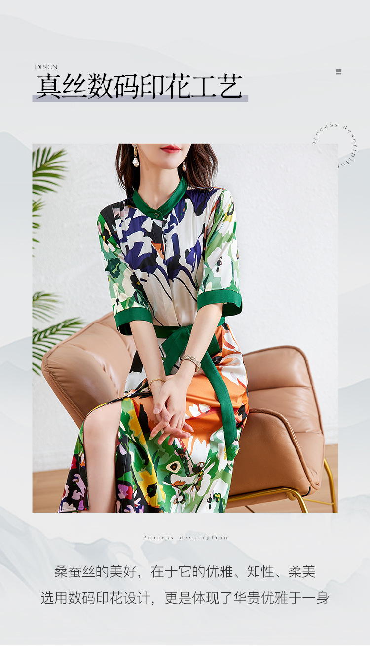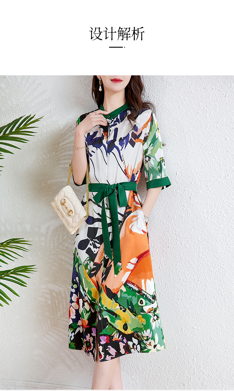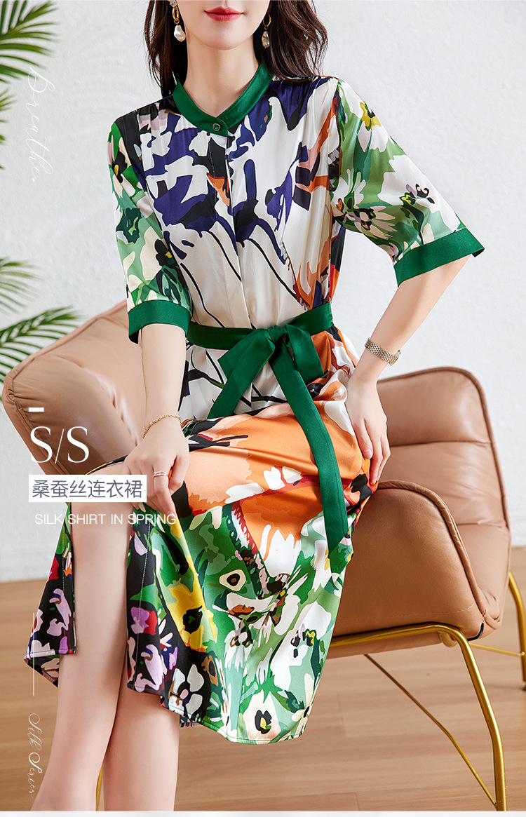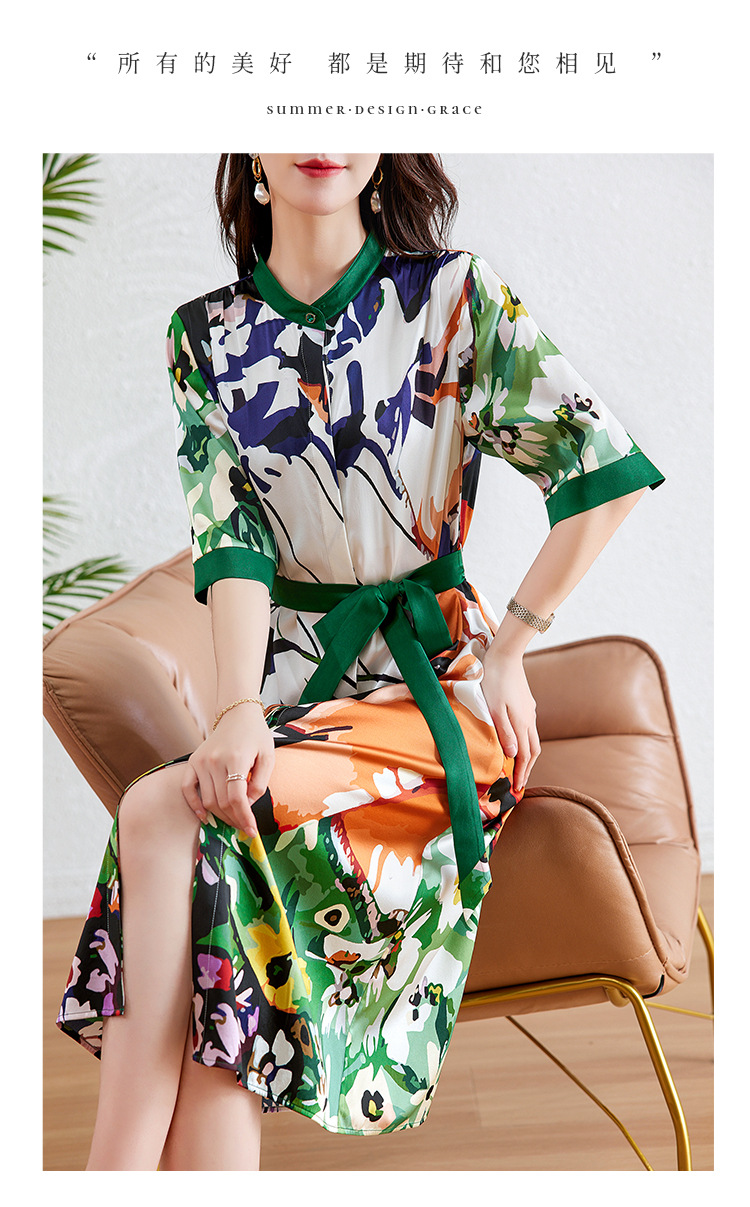 夏季重磅真丝桑蚕丝连衣裙女2023新款时尚气质短袖印花裙QS-82399577