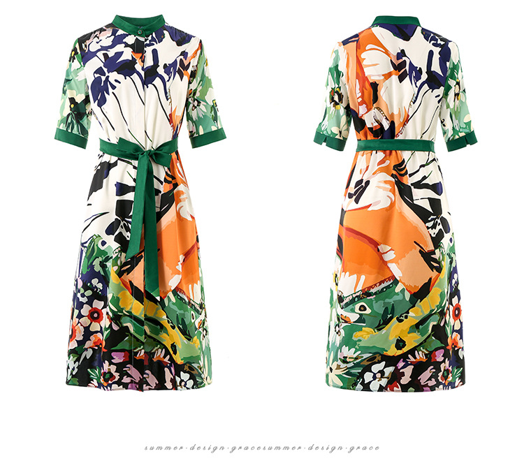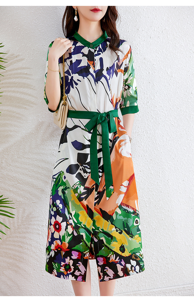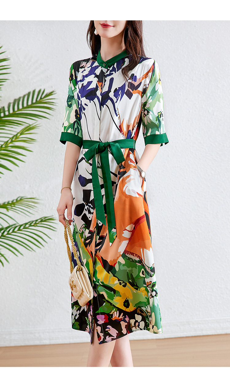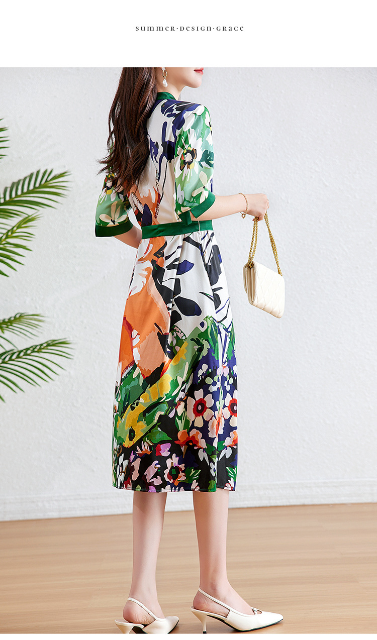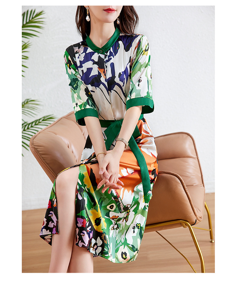 夏季重磅真丝桑蚕丝连衣裙女2023新款时尚气质短袖印花裙QS-82399577