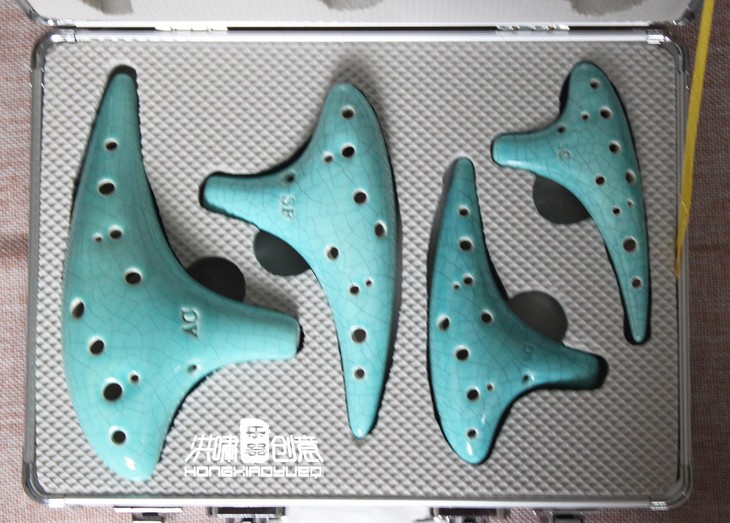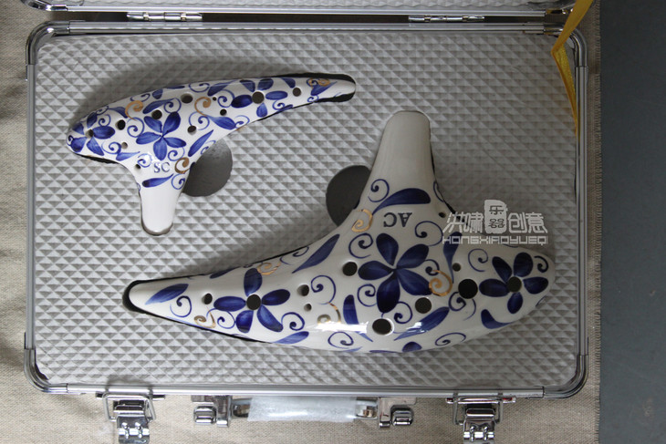 本款铝合金箱子只适用于洪啸12孔经典弯月款陶笛(熏烧、手绘、描金、蓝裂、白裂)
