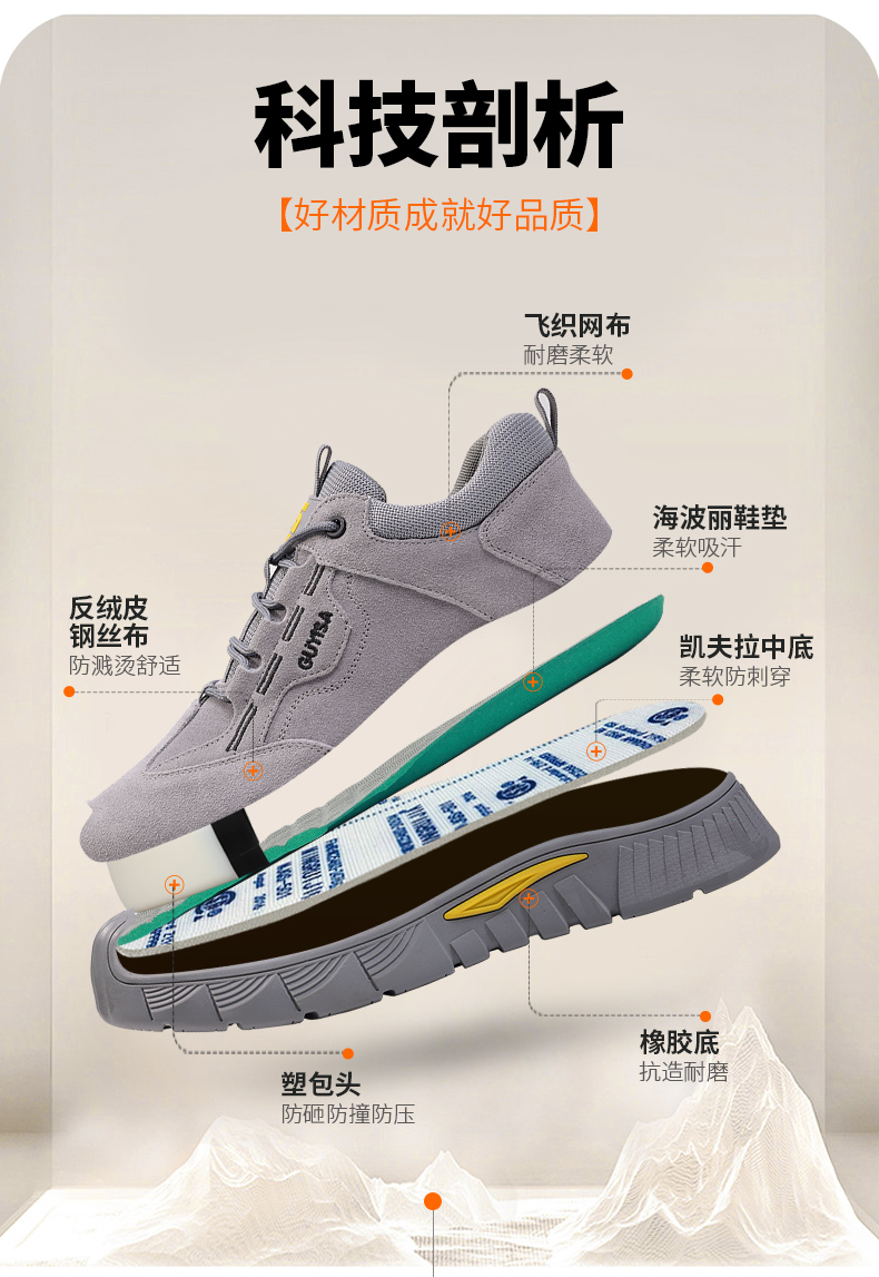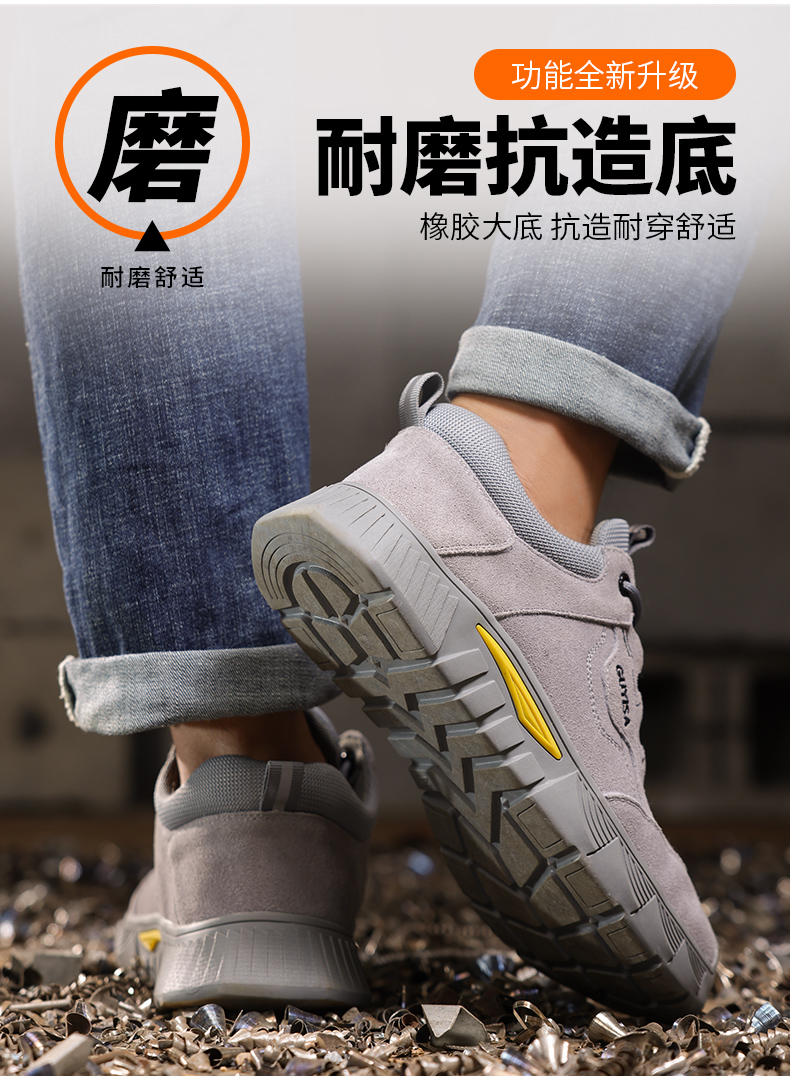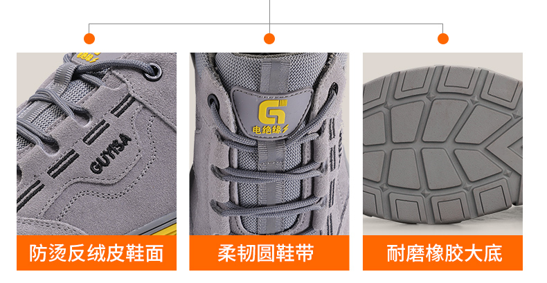 四季款反绒皮绝缘鞋透气劳保鞋男防砸防刺安全鞋工作鞋橡胶底塑包头鞋面防烫