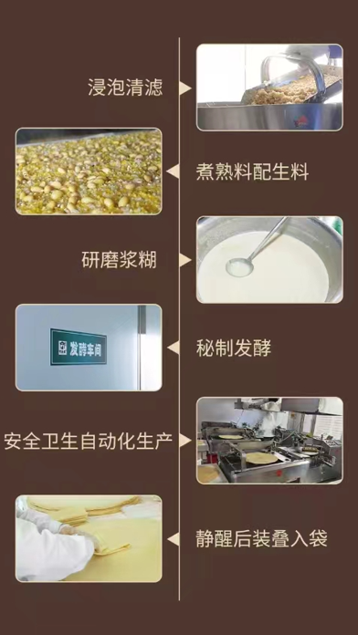 生产方式:原料清洗浸泡后过滤,煮熟料配生料,研磨成浆糊后发酵,传统工艺摊制,静醒后装叠入袋。