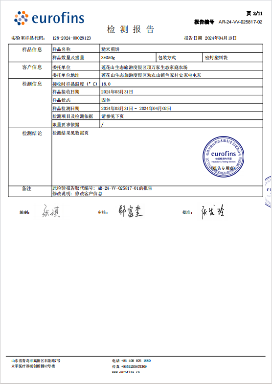 煎饼检测报告较长,页面受限,完整报告可联系客服领取