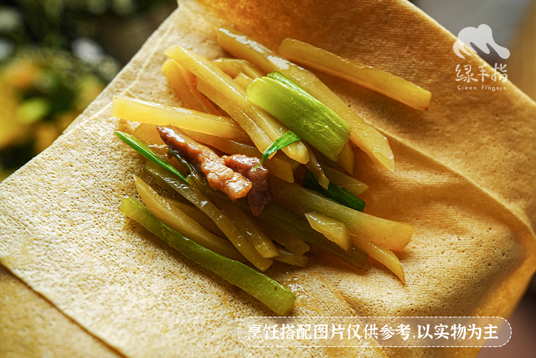 煎饼的食用场景很多,无论做零食还是主食,都非常不错,煎饼可以卷万物,土豆丝、海带丝豆芽,或者东北最朴实的卷大葱蘸酱,健康又美味,平时出门或上班随身带一袋,饿的时候来一张,顶饿又无负担。