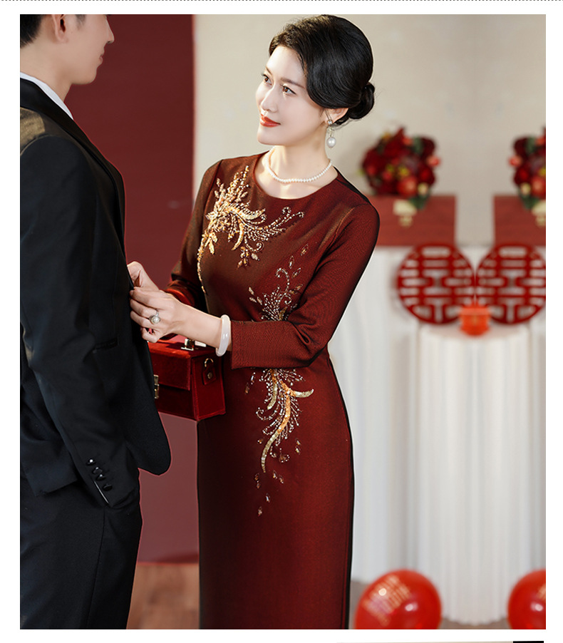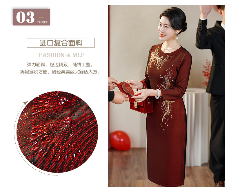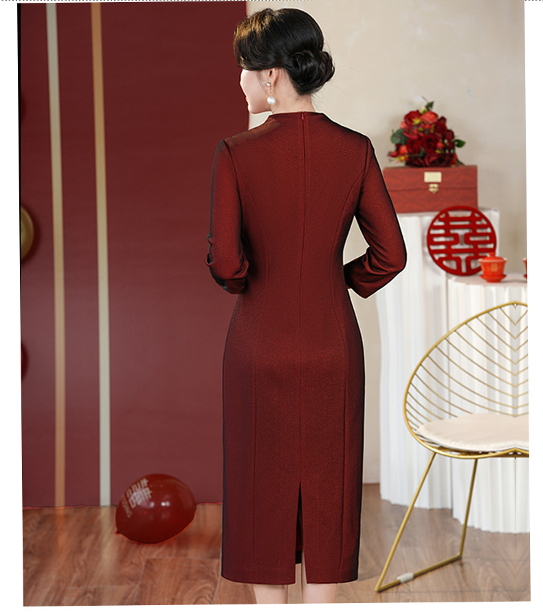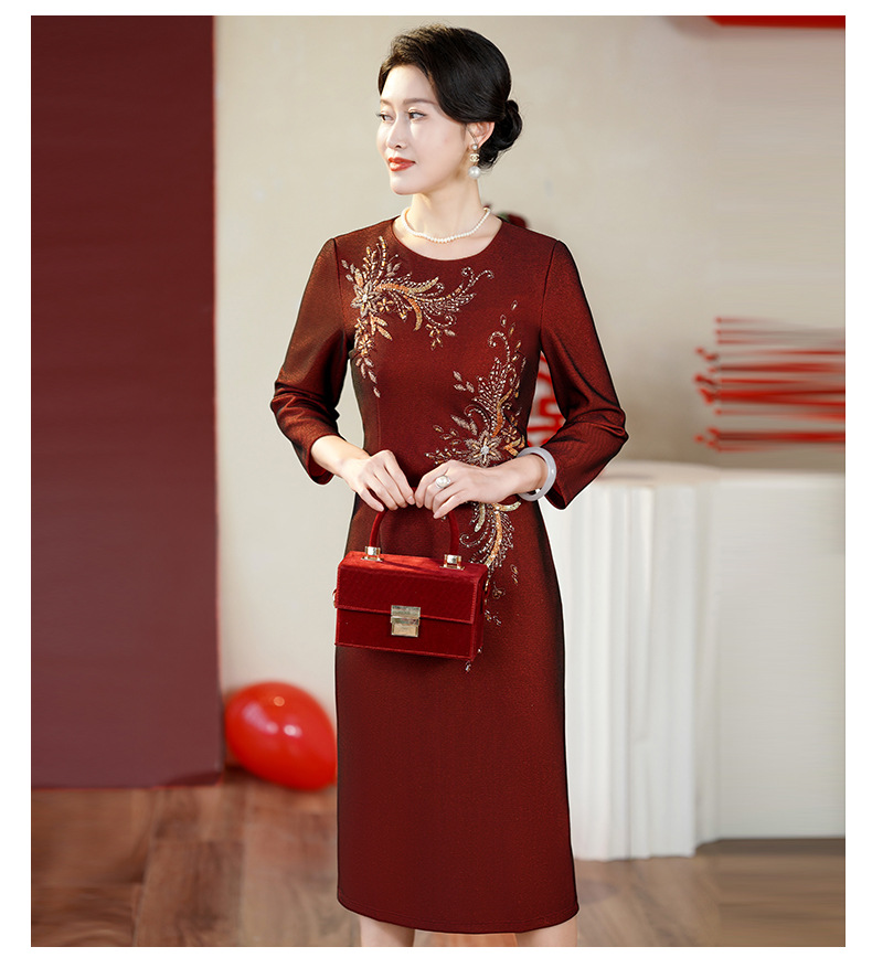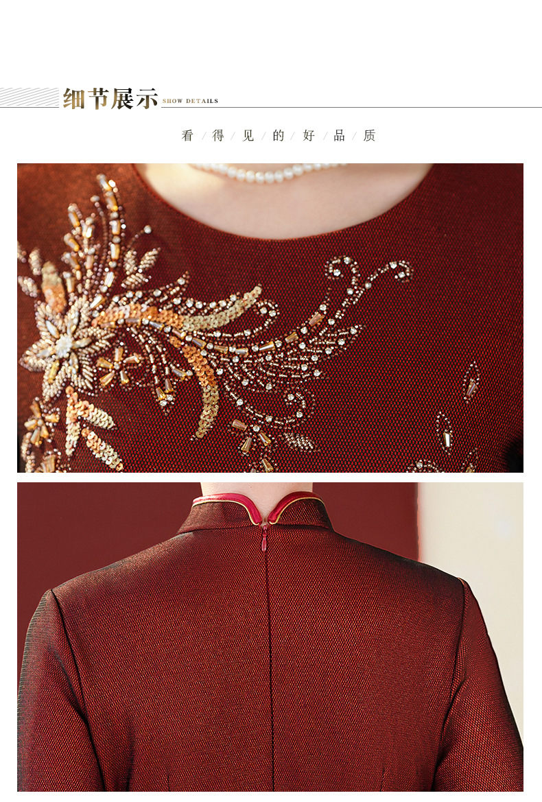 上海旗袍厂JC-JY5037春季新款婚宴婚礼喜庆红色喜婆婆气质修身妈妈装连衣裙
