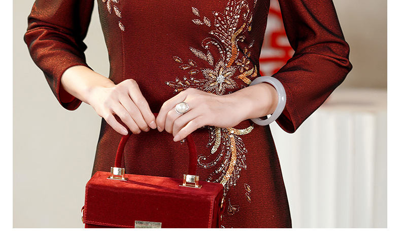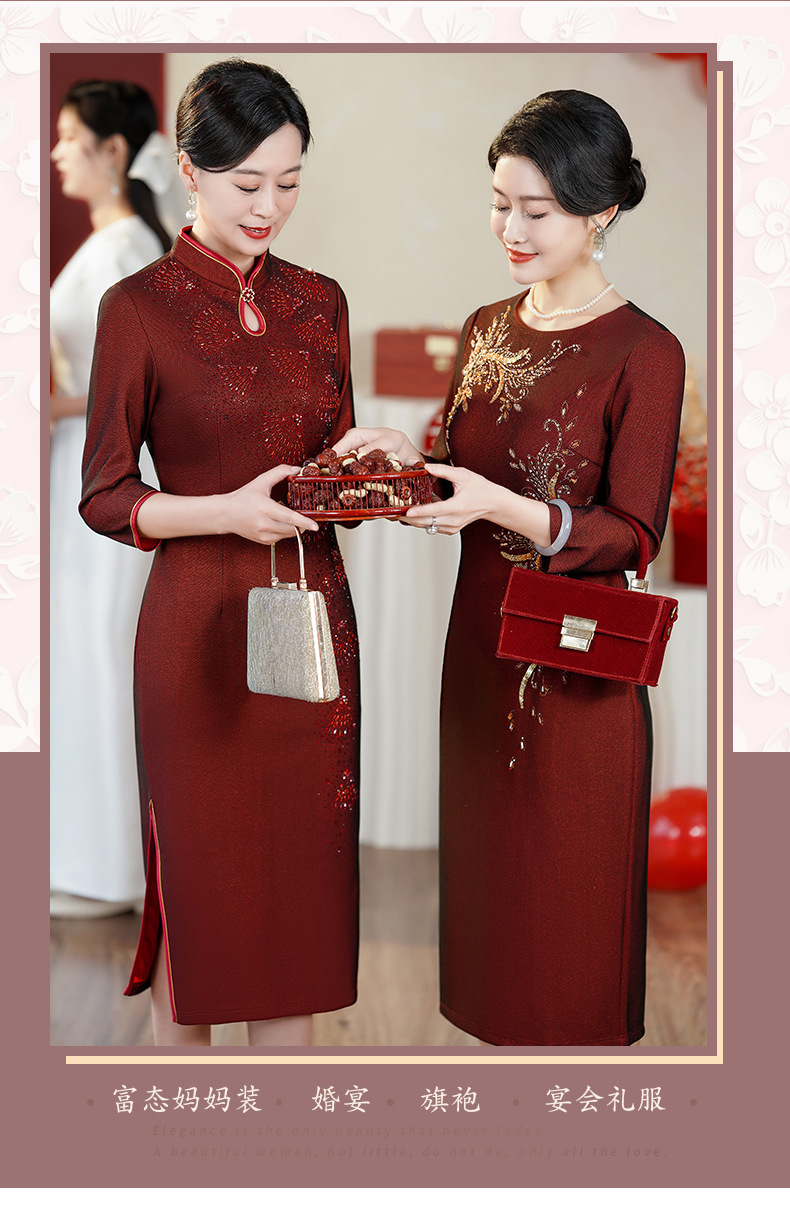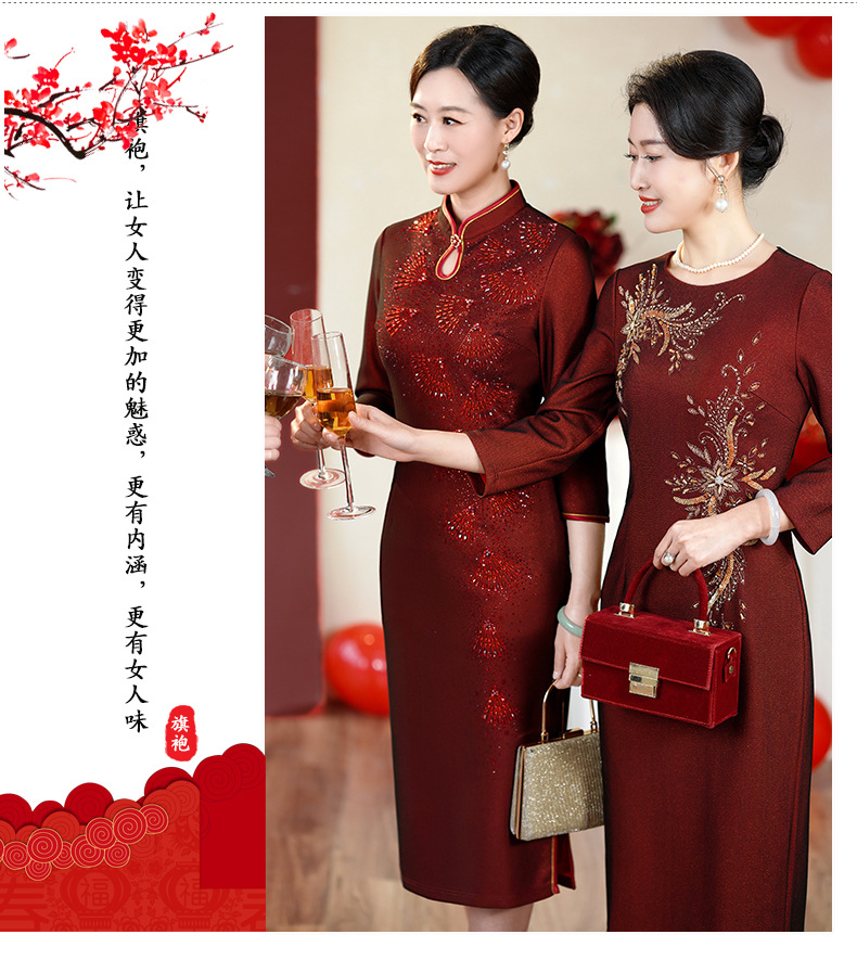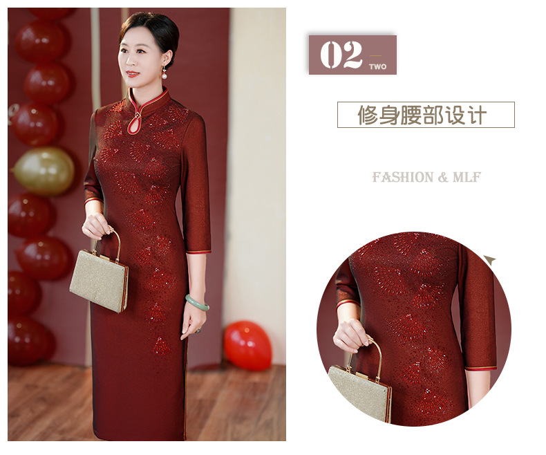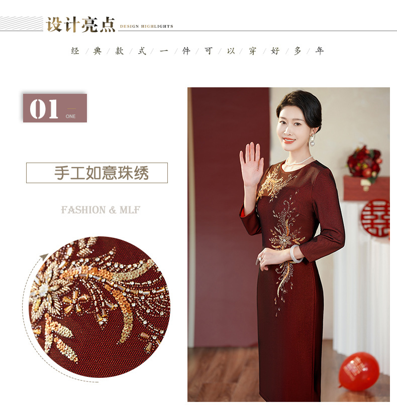 MLY秋季新款复古风宴会改良旗袍喜婆婆礼服裙一件