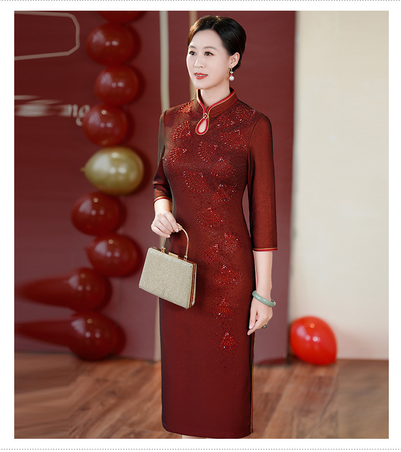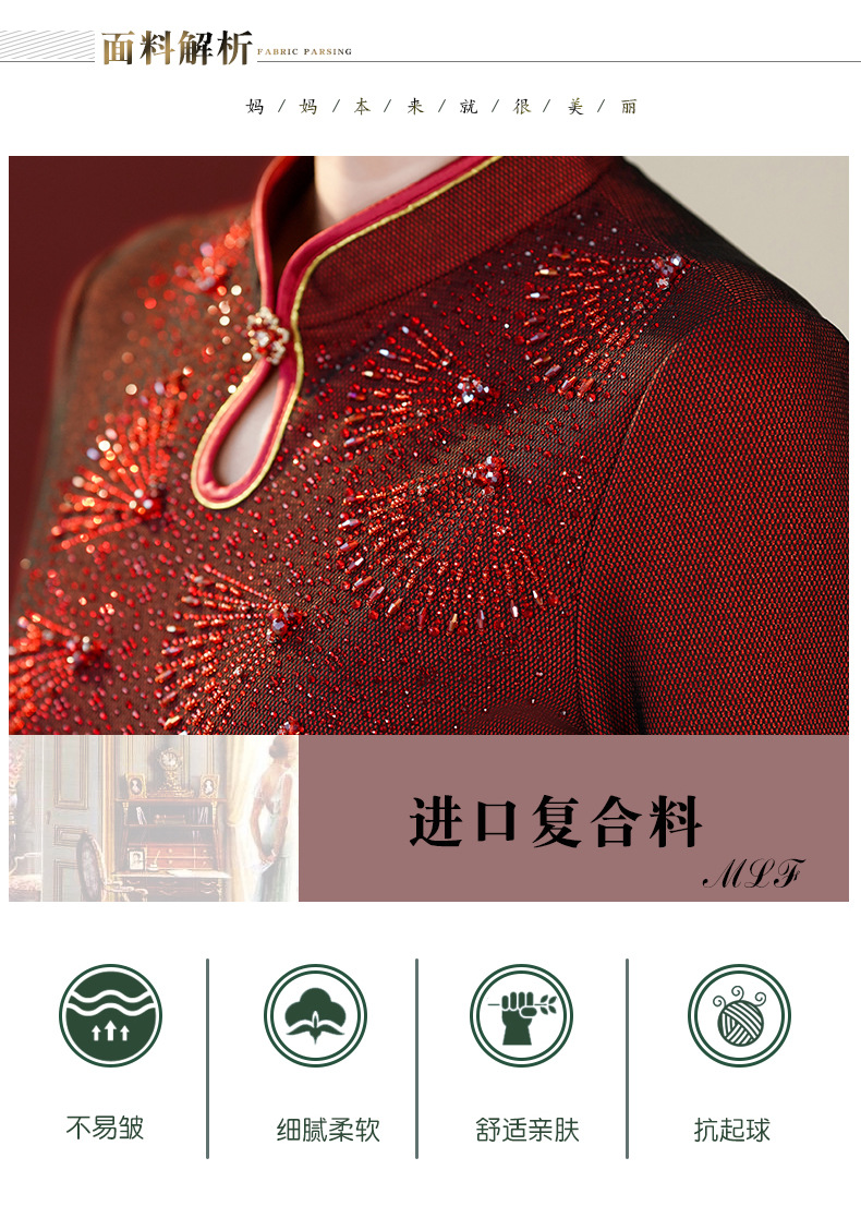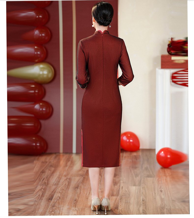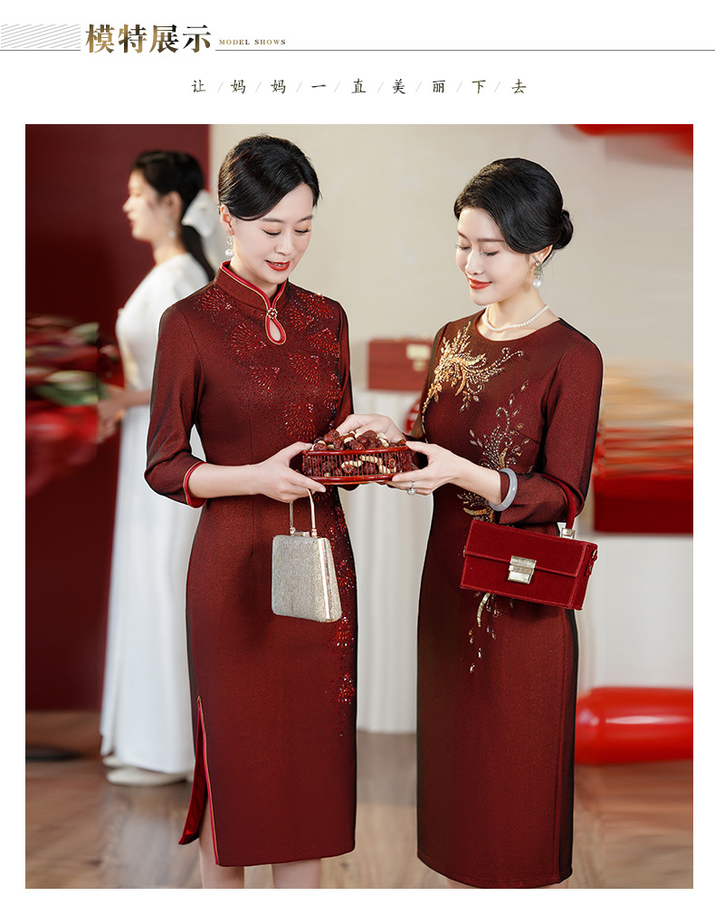 MLY秋季新款复古风宴会改良旗袍喜婆婆礼服裙一件