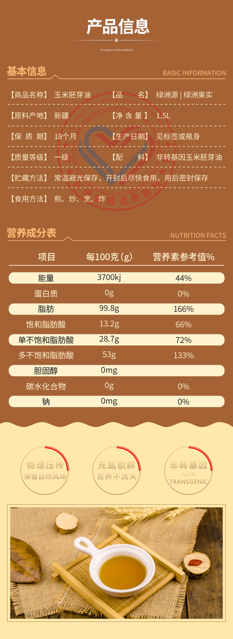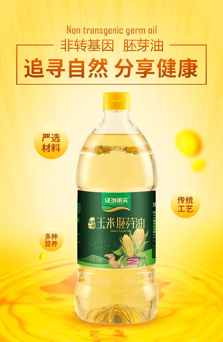 绿洲果实·一级玉米胚芽油 1.5L 植物甾醇含量较高 烟点高